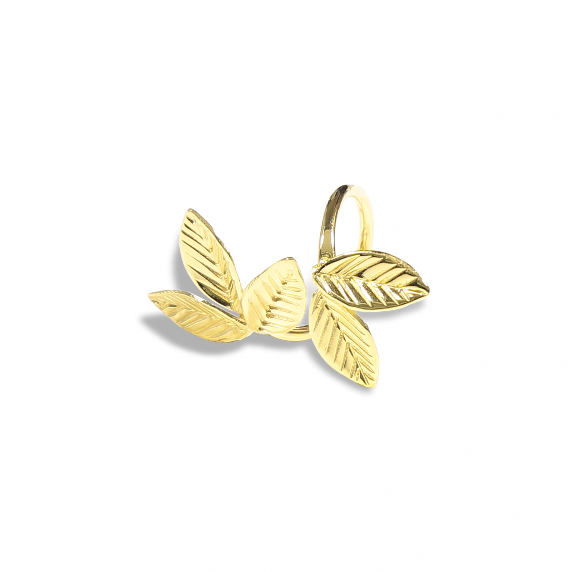 Brinco de argola dourado com três folhas texturizadas