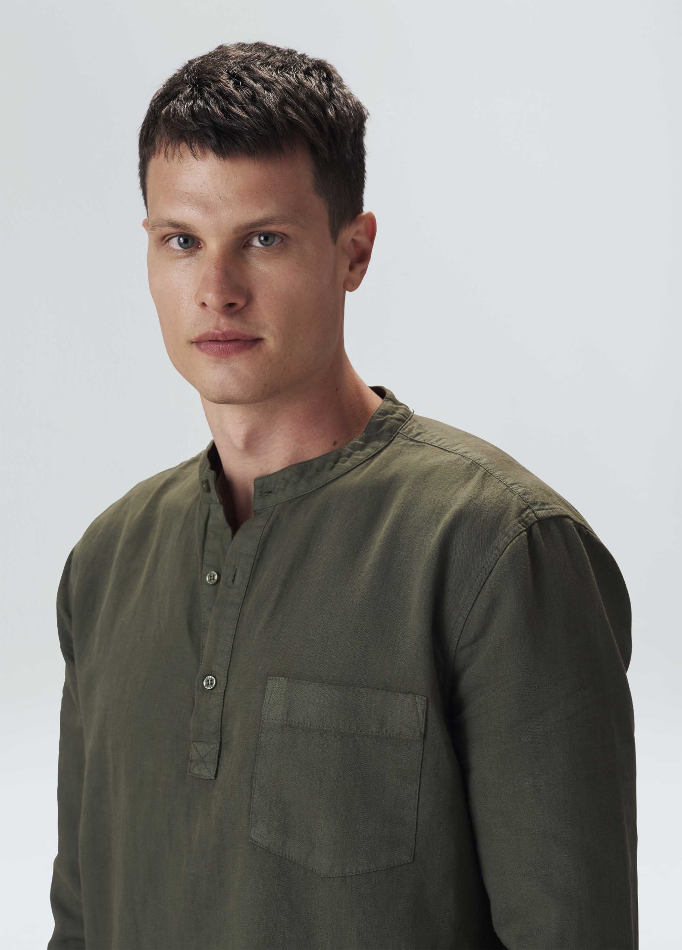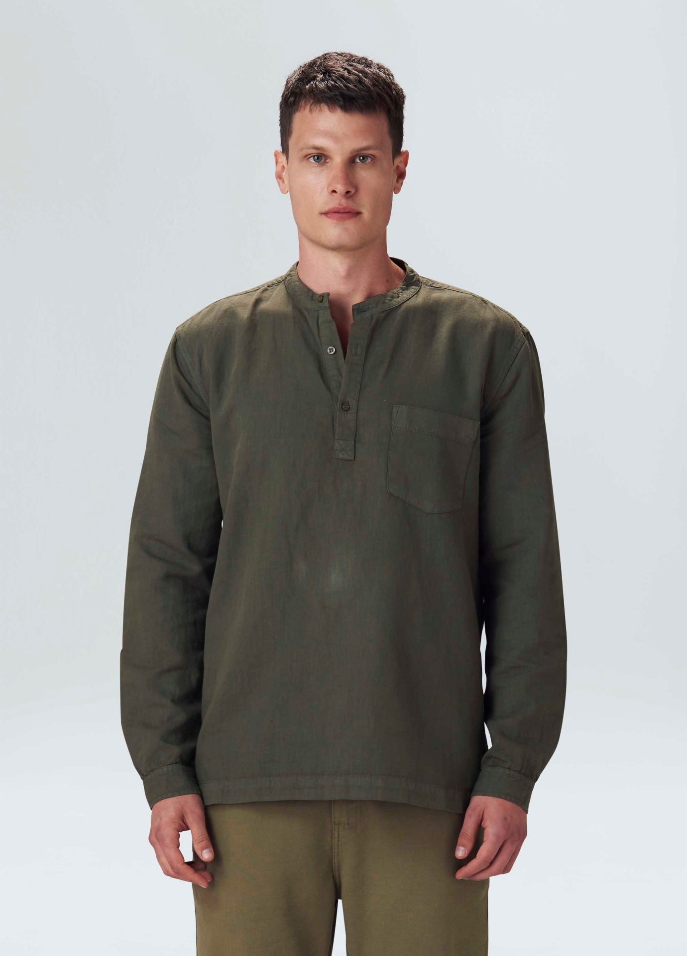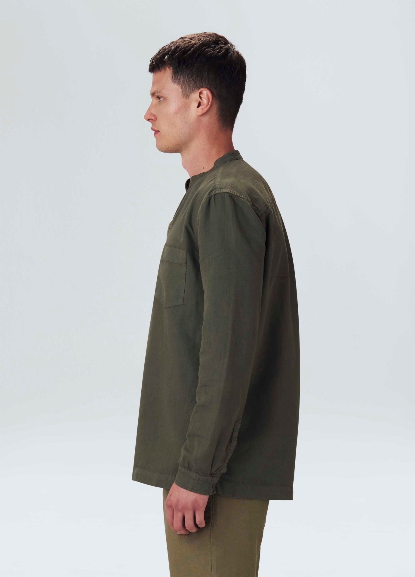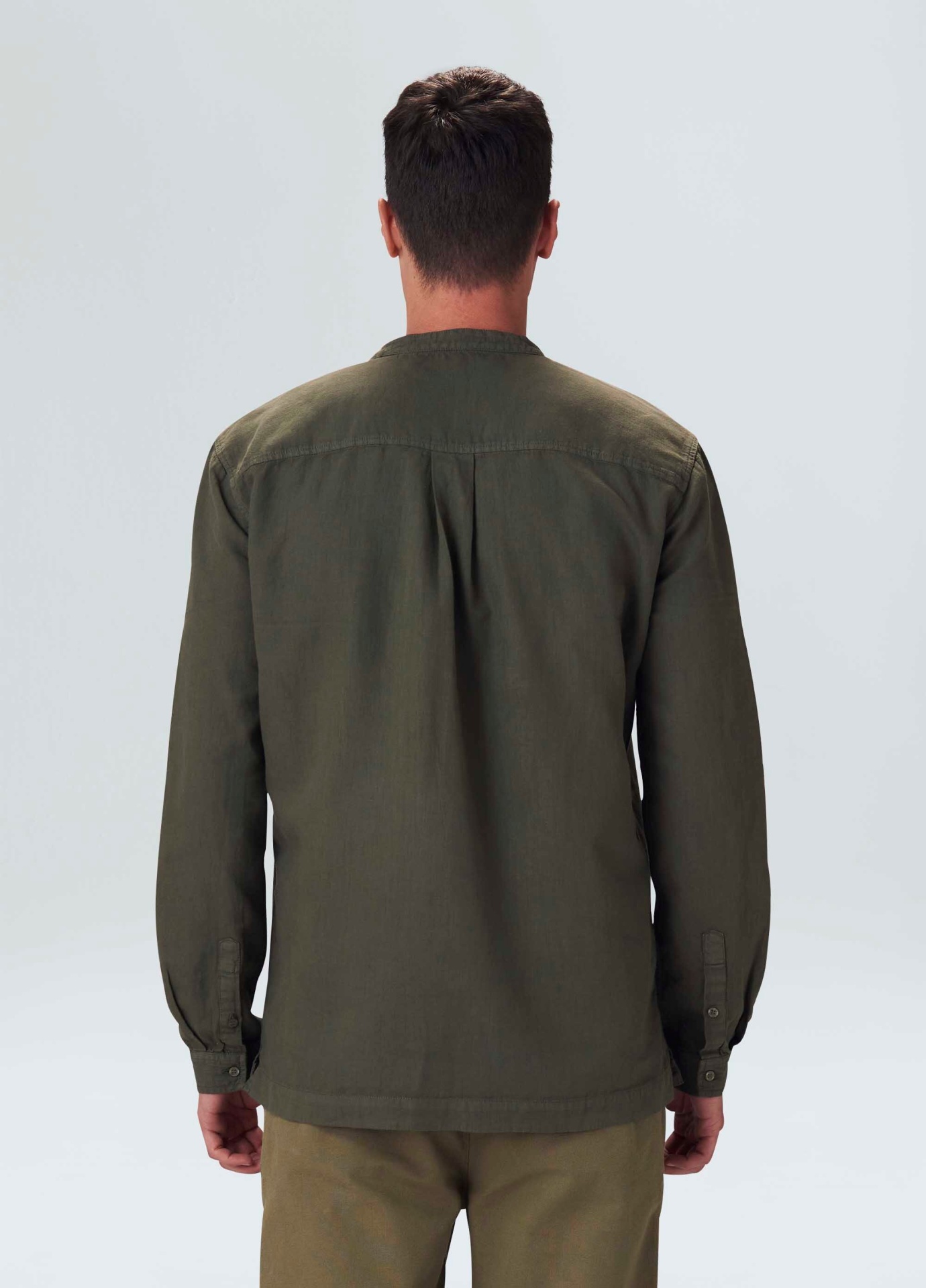 Bata manga longa em tecido de algodão certificado com canhâmo. O cultivo da fibra de cânhamo dispensa o uso de agrotóxicos devido à resistência da planta às pragas naturais e assim evita a contaminação das reservas de água do nosso planeta. Além de contribuir para a redução em até 90% das emissões de CO2 e 83% do consumo de água em comparação com o algodâo tradicional.
