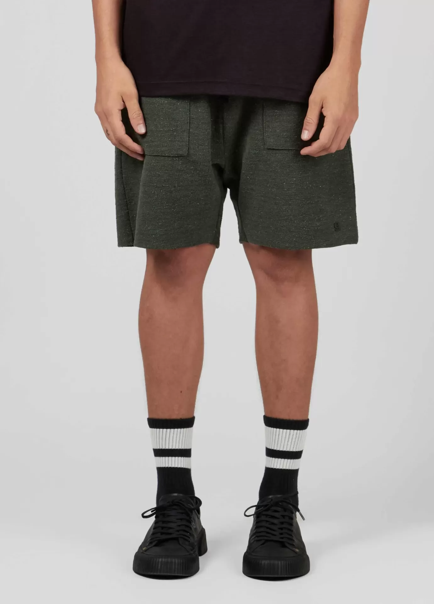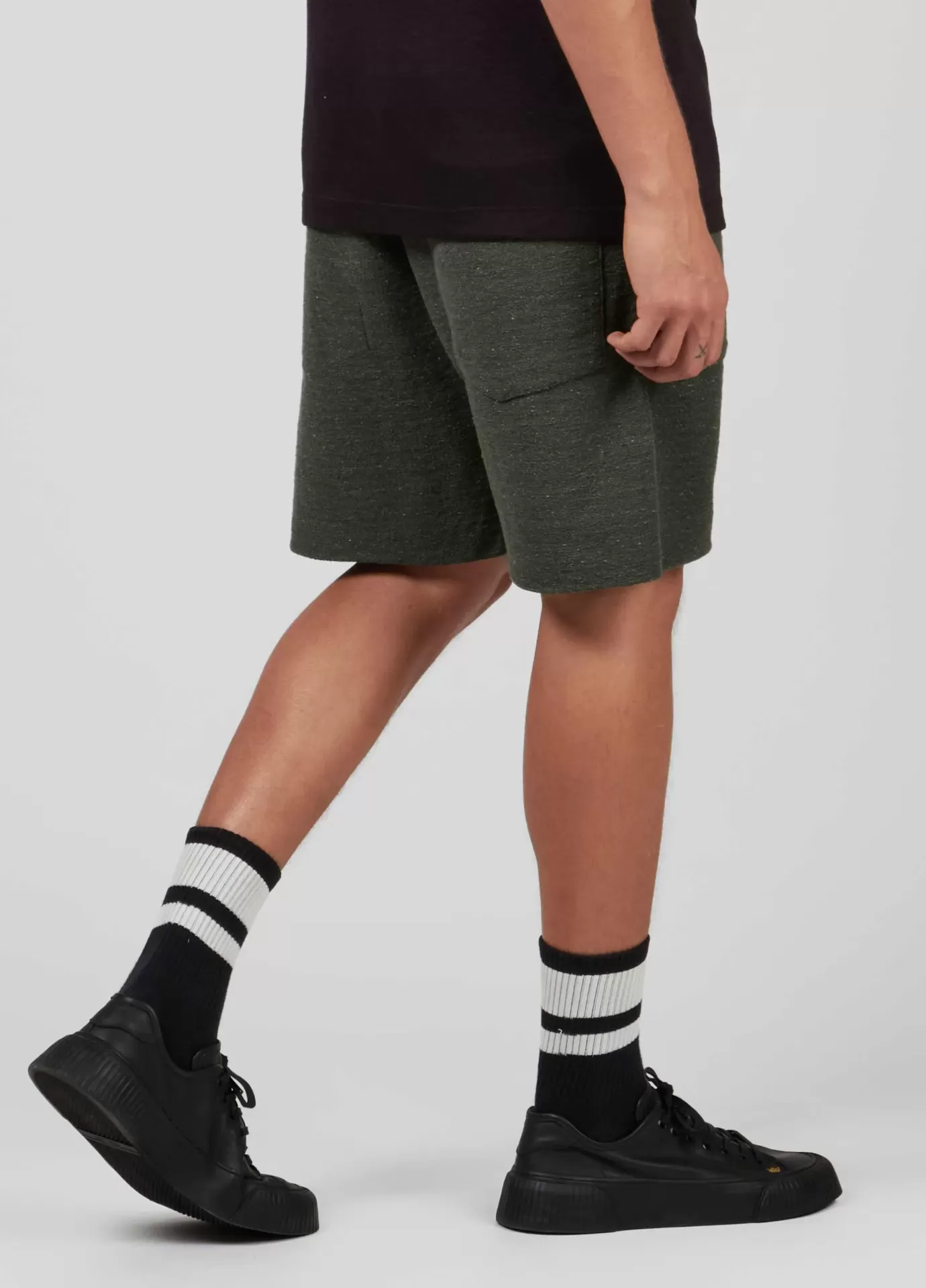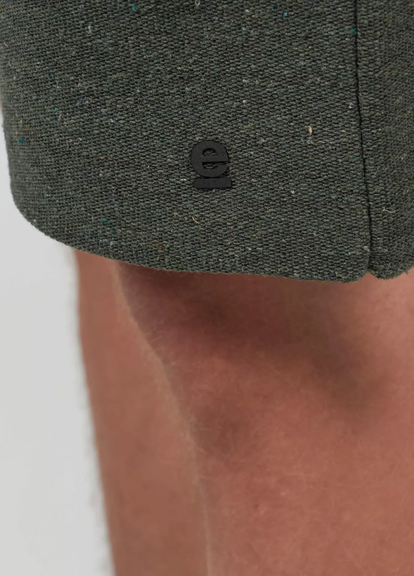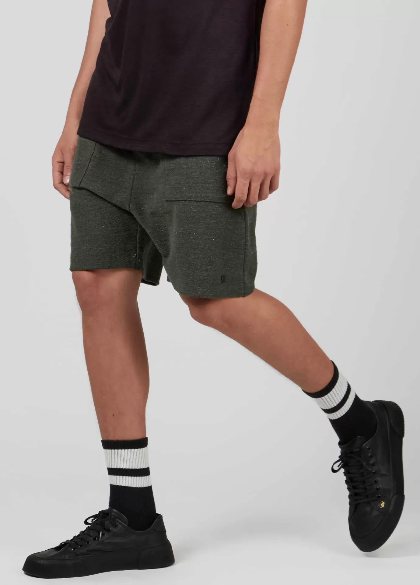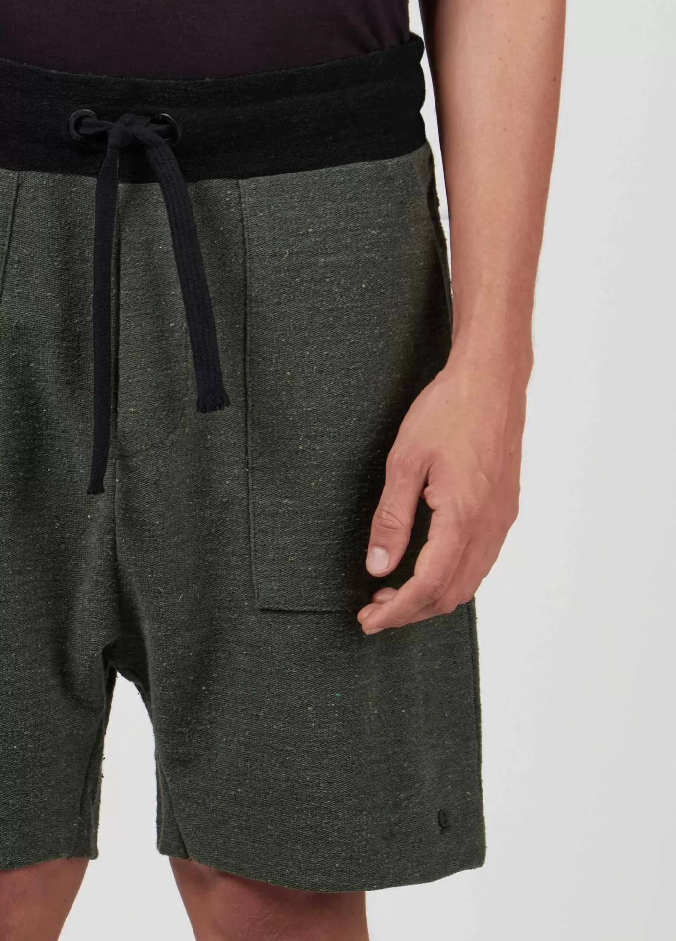 Bermuda double face em malha mais encorpada E-fabrics de algodão com algodão reciclado, proveniente da sobra de resíduos têxteis. Essa peça promove a economia circular. Ao usar o algodão reciclado em suas coleções a Osklen evita que 7,5 mil quilos de lixo têxtil sejam descartados por ano.