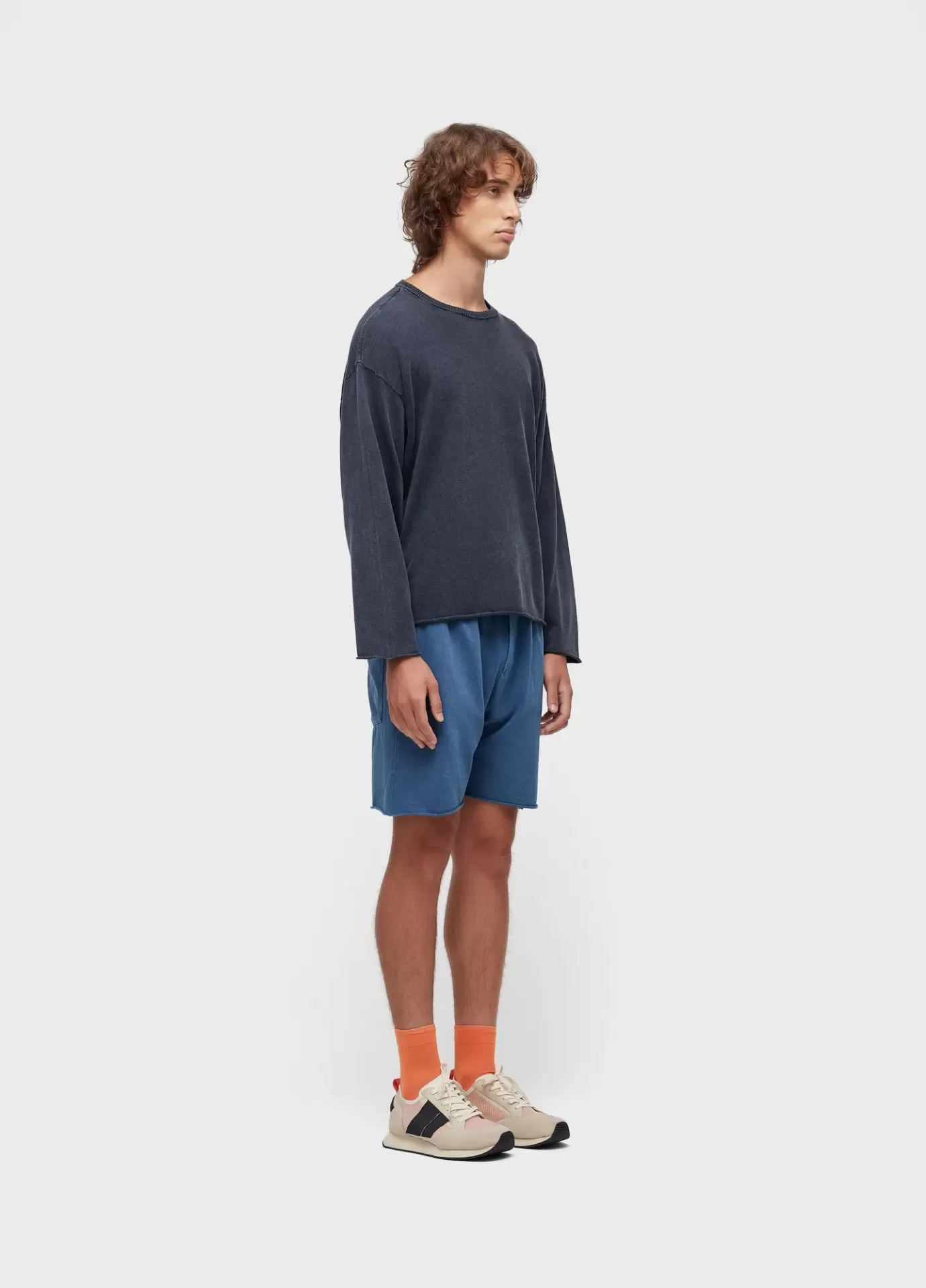Bermuda masculina em moletom 100% algodão. Produzida com algodão nacional certificado que segue critérios minuciosos de redução dos impactos ambientais e sociais, seu processo produtivo utiliza energia renovável, reduz o consumo de água em relação aos processos tradicionais e fomenta as cadeias produtivas brasileiras. Bandeira Regenerate Life.
