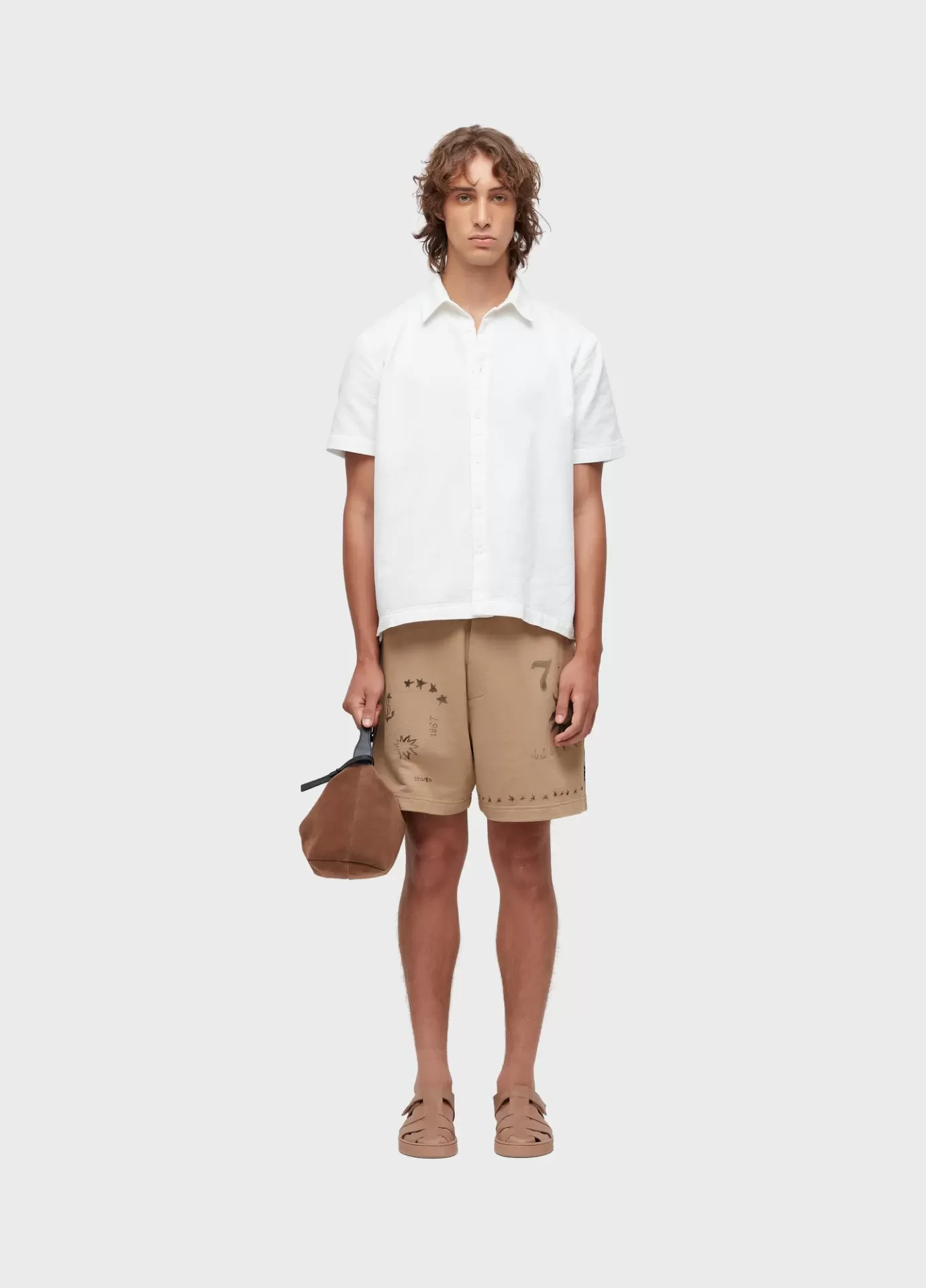 Bermuda masculina em moletom sarjado com estampa exclusiva Osklen. A peça foi produzi