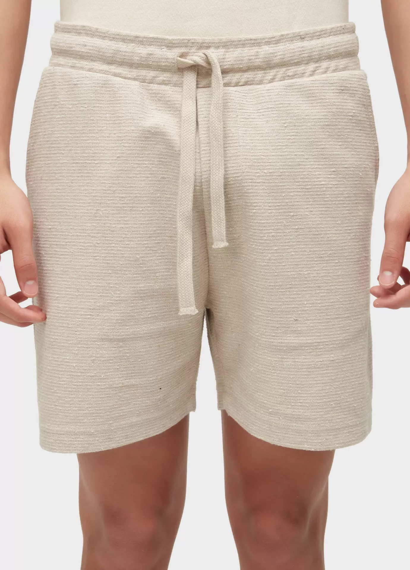 Bermuda masculina com tecido de fibras recicladas, com aparencia mais rustica. O teci
