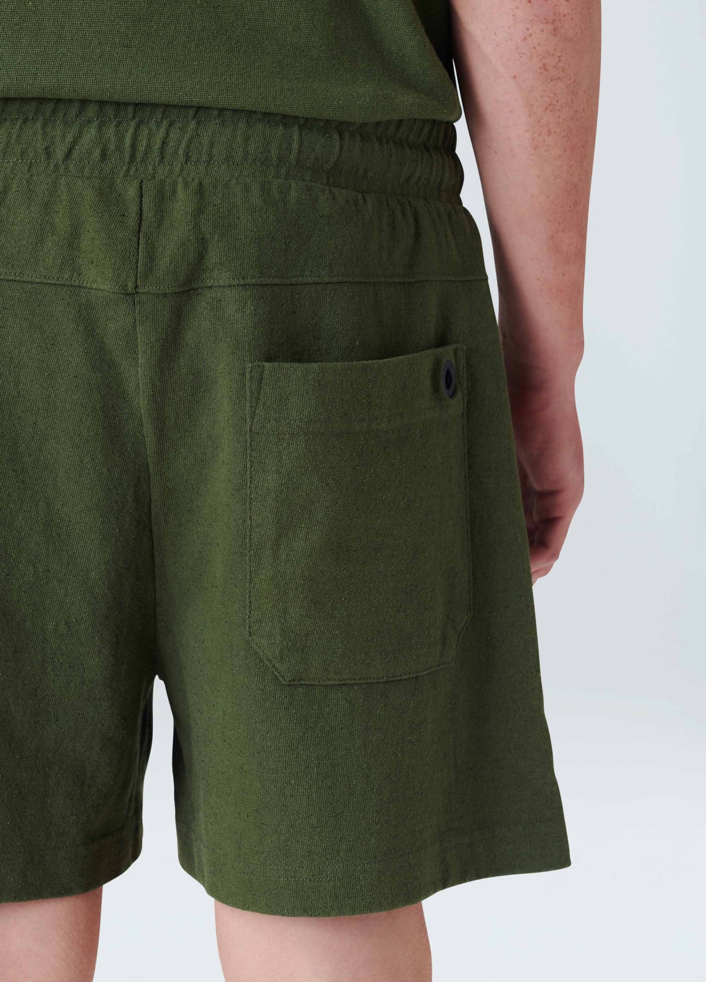 descriçãoBermuda masculina, E-Fabrics. Peça produzida com o reaproveitamento de resíd