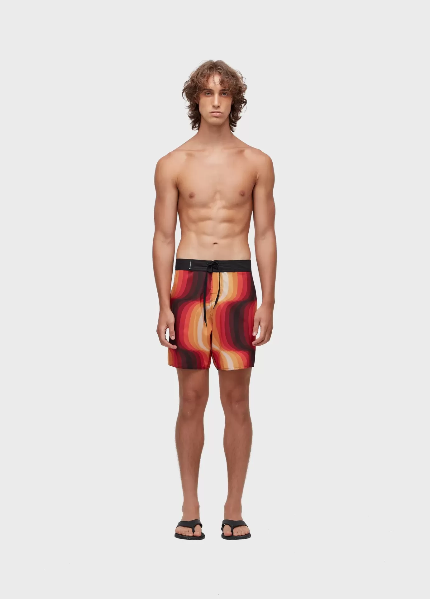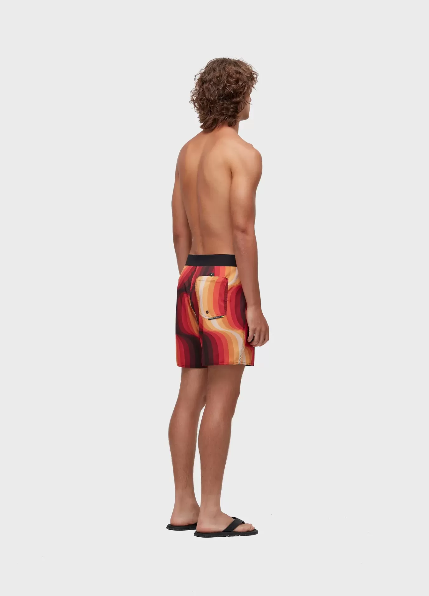 Bermuda surf masculina em tecido exclusivo Aquaone Flex - Tecido produzido a partir do reaproveitamento de garrafas PET - • Tecido Flexível - Garante conforto e liberdade de movimento, • Material de secagem rápida. • Estampa exclusiva Rings• Modelagem Retro com lateral 18". • Made in Rio.