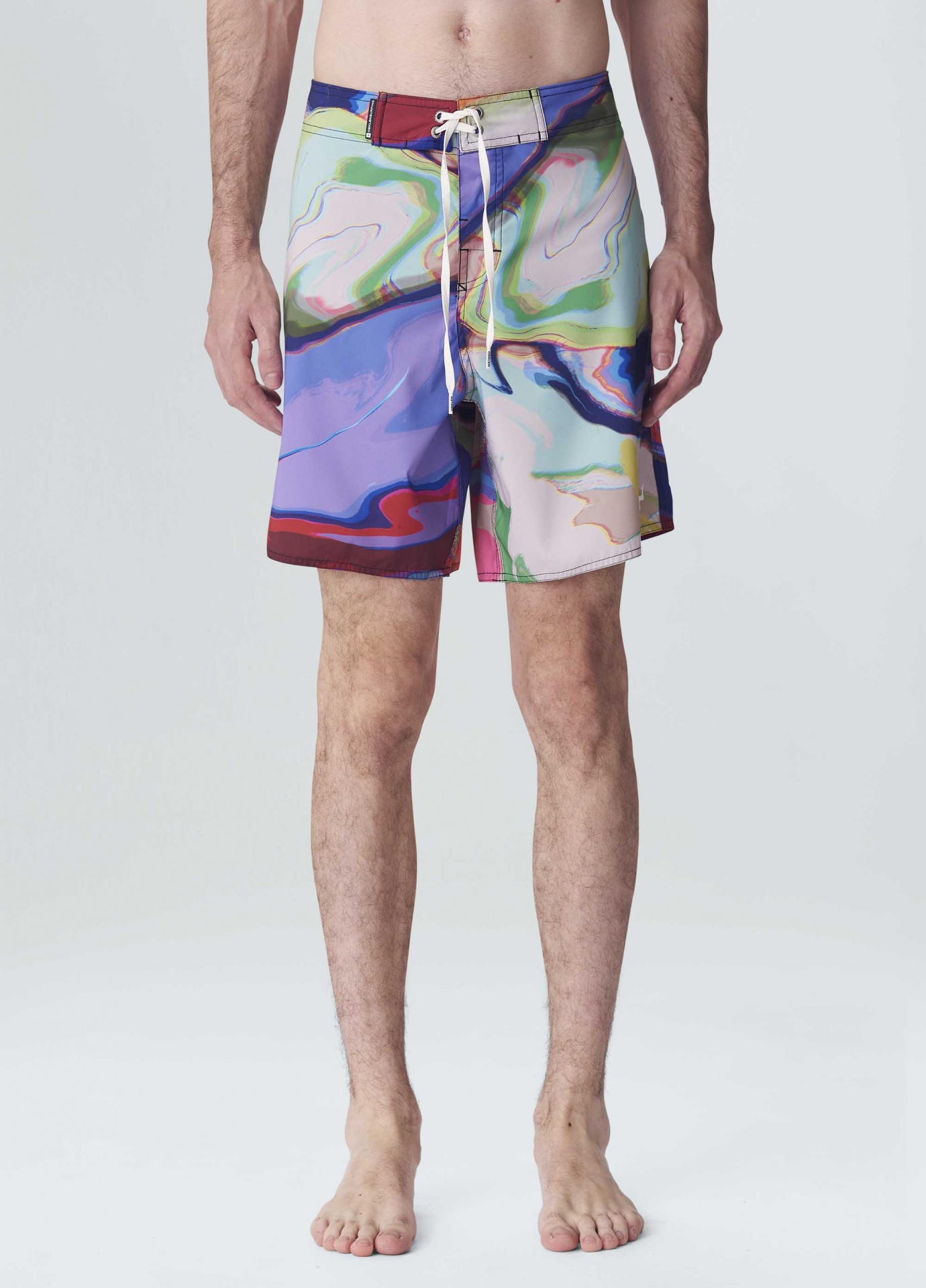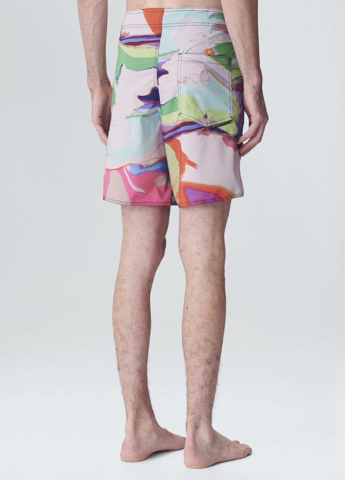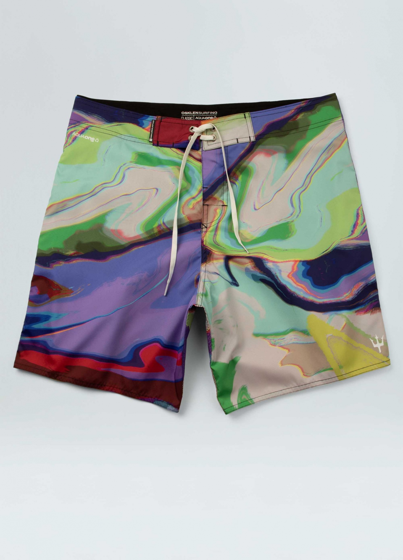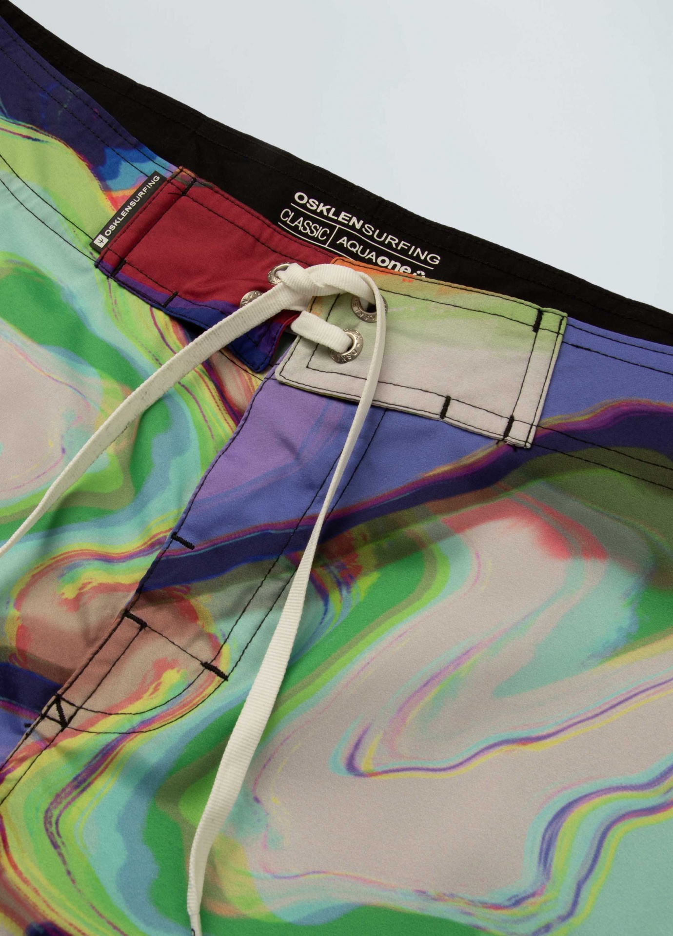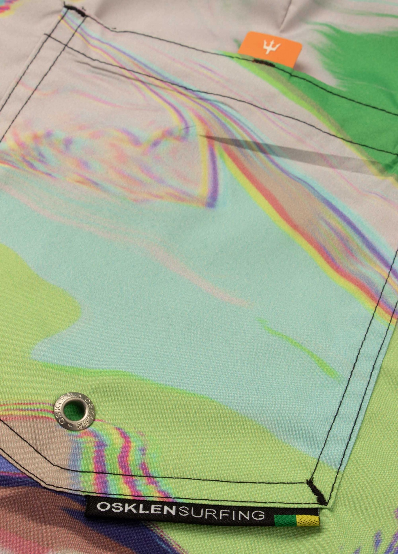 Bermuda surf modelagem clássica em tecido exclusivo Aquaone. A linha Aquaone é confeccionada a partir de garrafas PET descartadas no meio ambiente, que são reaproveitadas e transformadas em tecidos. O tecido leve e de secagem rápida, favorece o uso em situações de performance e lifestyle em ambientes aquáticos. Estampa exclusiva Osklen.