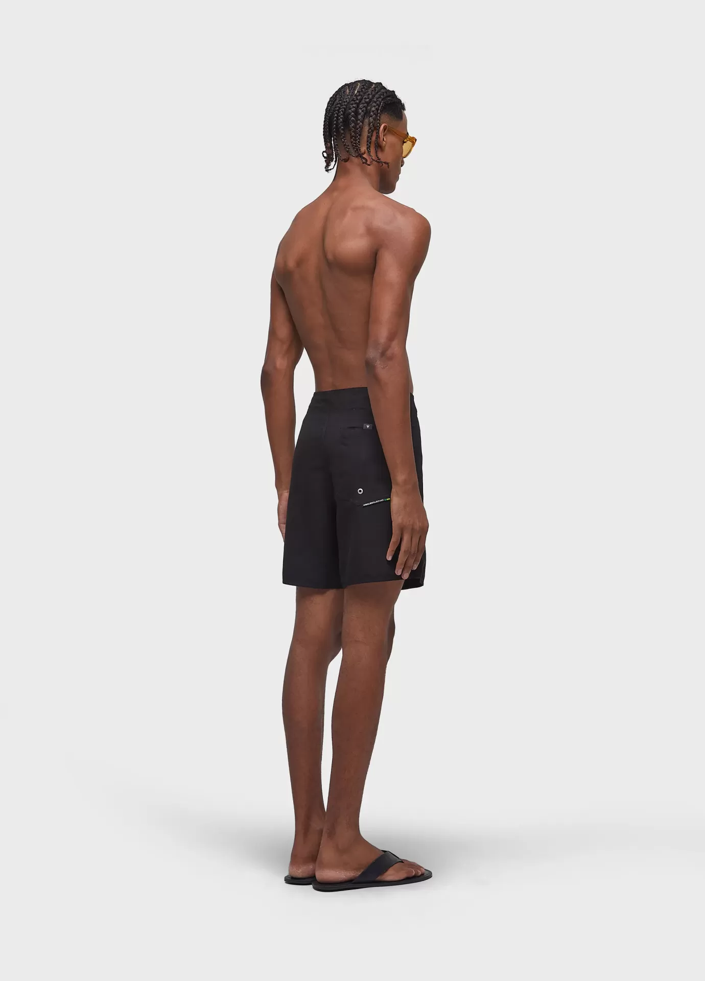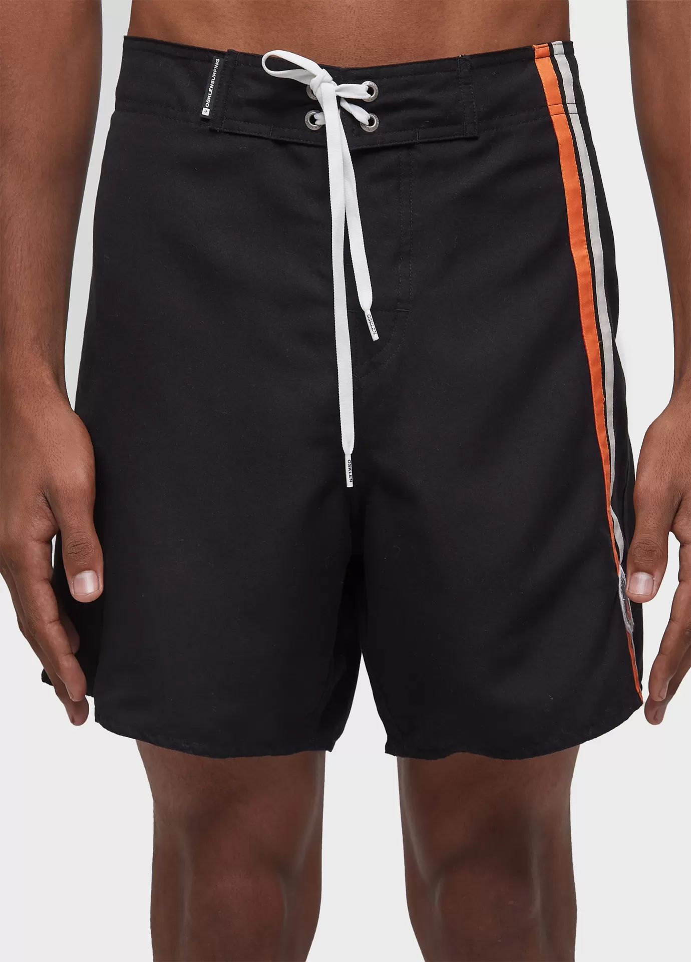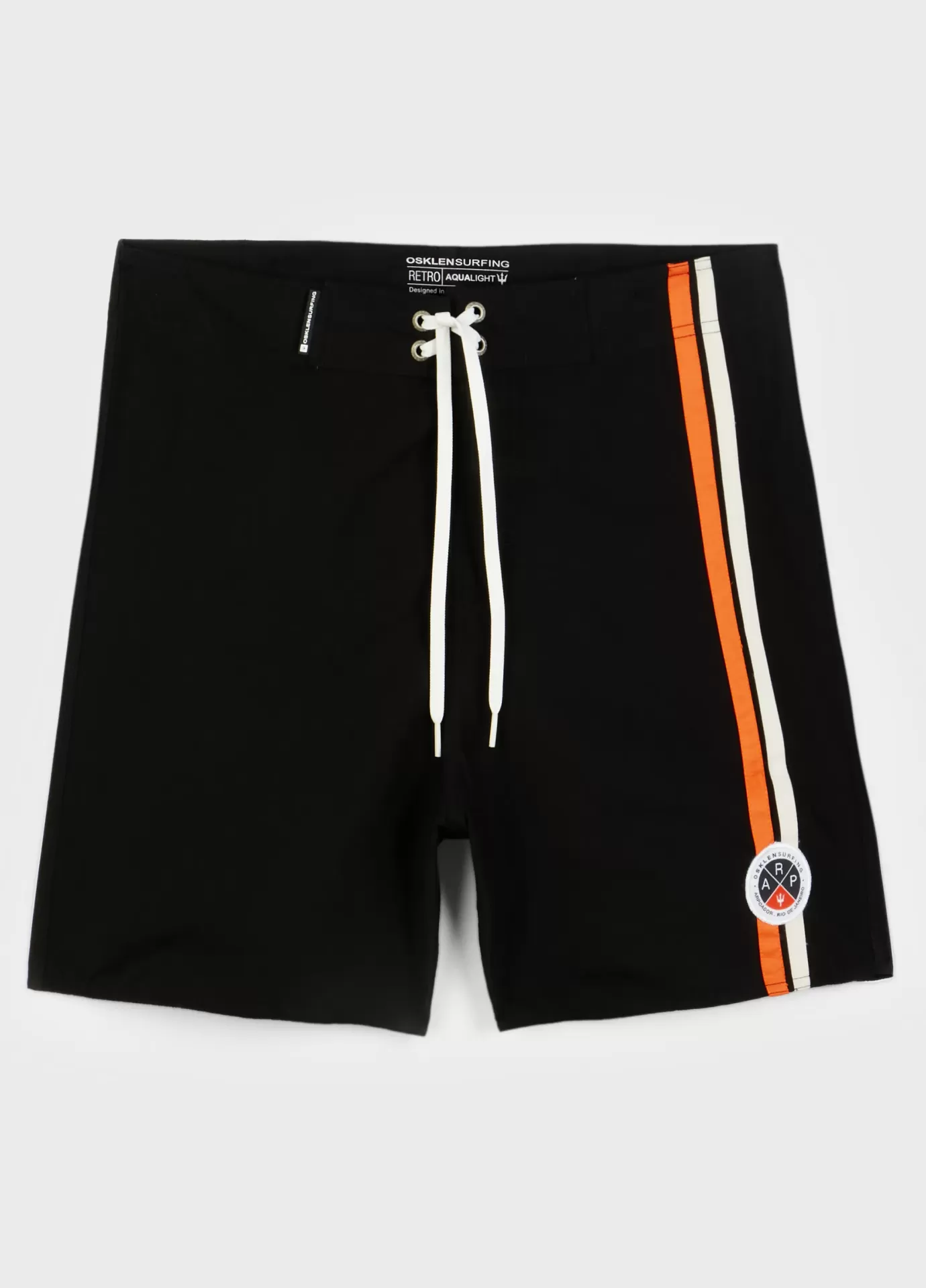 Bermuda surf lisa com modelagem clássica em tecido aqualight com fita pb de algodão aplicada nas laterais. tecido leve e de secagem rápida, que favorece o uso em situações de performance e lifestyle em ambientes aquáticos.