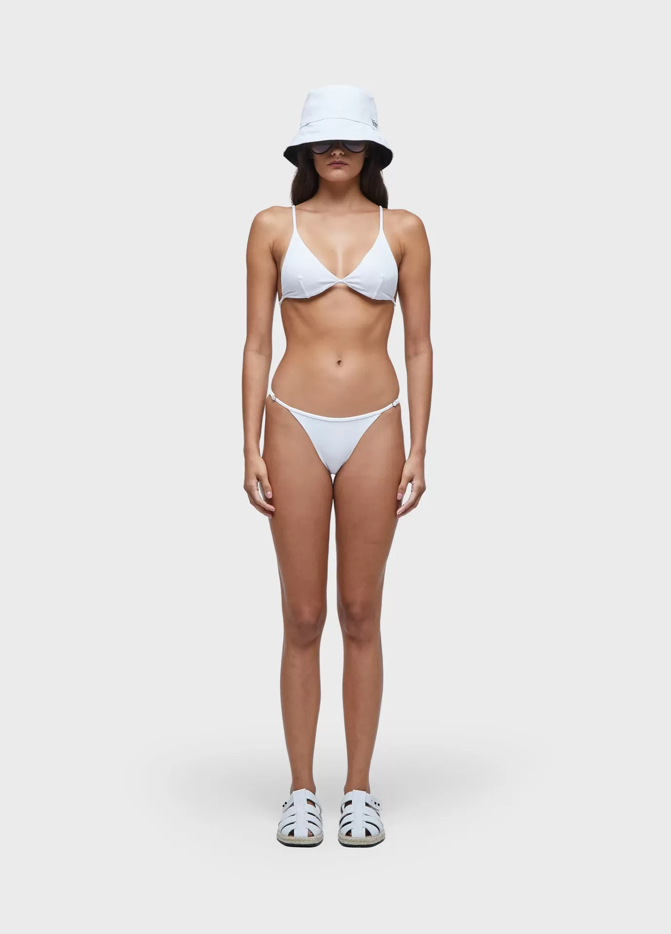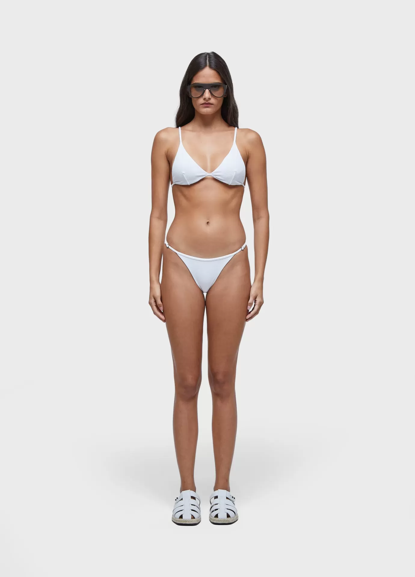 Top triângulo fixo e calcinha modelagem tanga com viés. tanto o rolotê da calcinha co