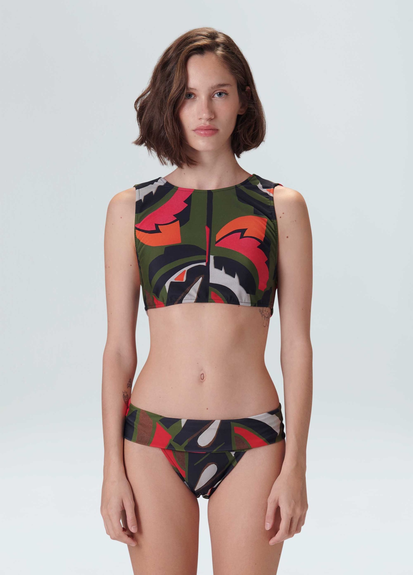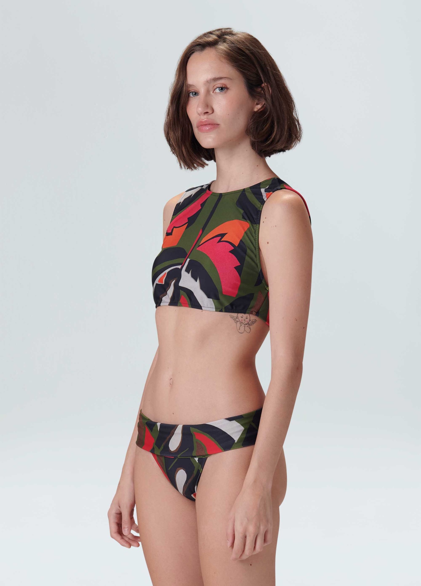 Biquini com top modelo cropped e calcinha hot pants. o top possui alças grossas e costas abertas. estampa exclusiva da osklen. a estampa pode sofrer alteração, dependendo do corte do tecido. forro em malha elástica leve.