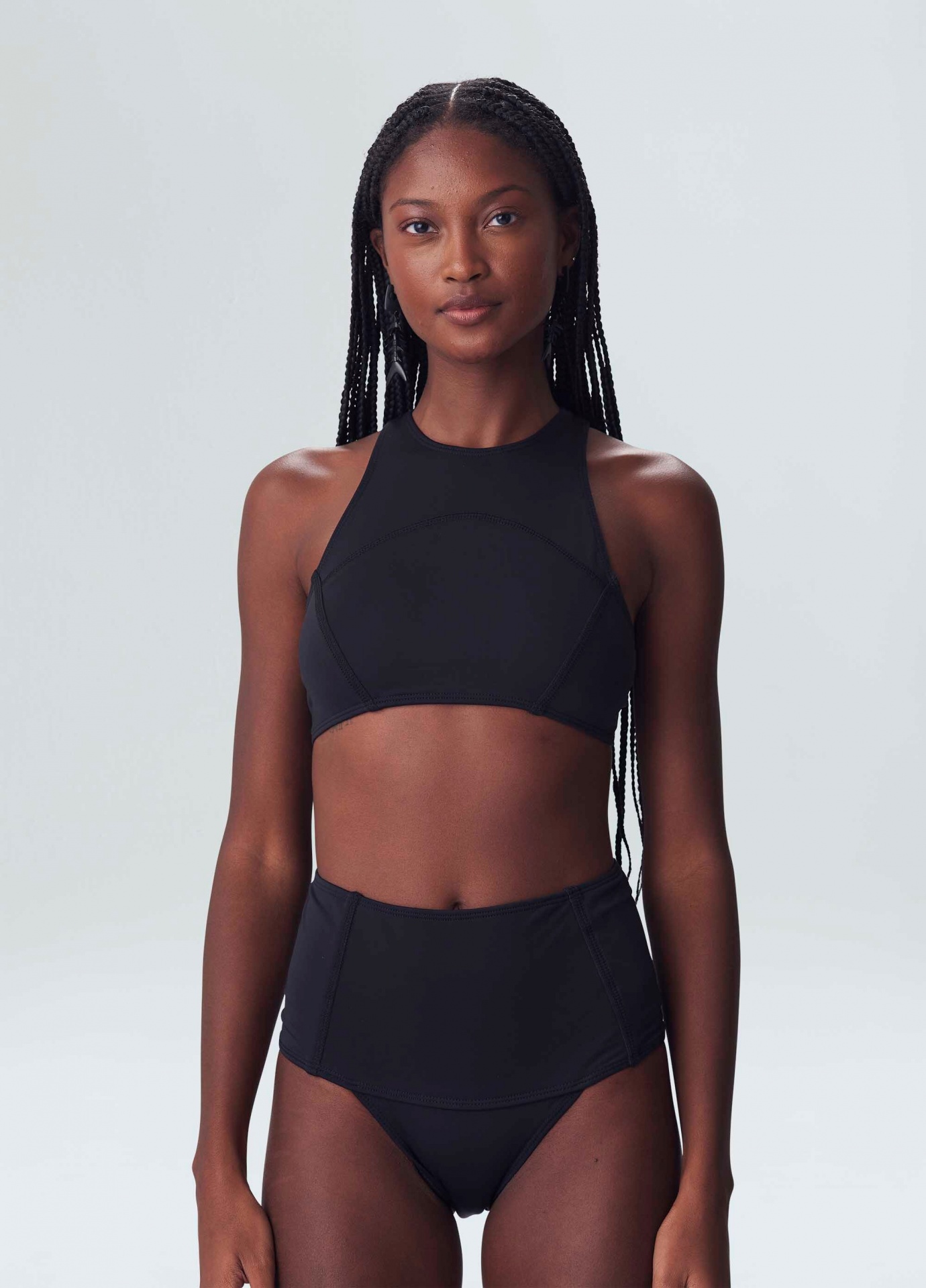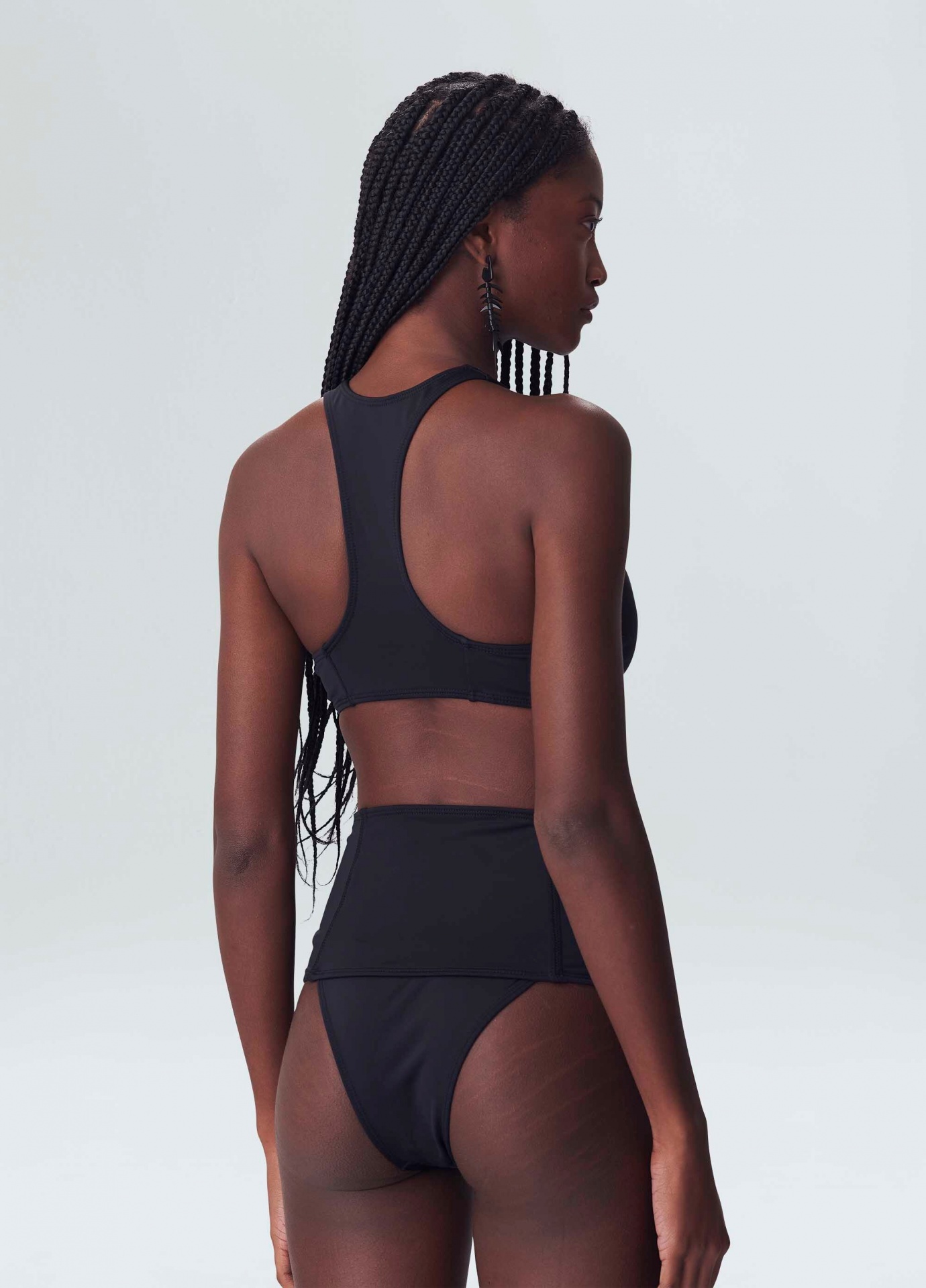 Biquini top frente ampla e costas nadador e calcinha com maxi pala aplicada. Desenvolvido em malha elástica fosca. Forro em malha elástica leve.