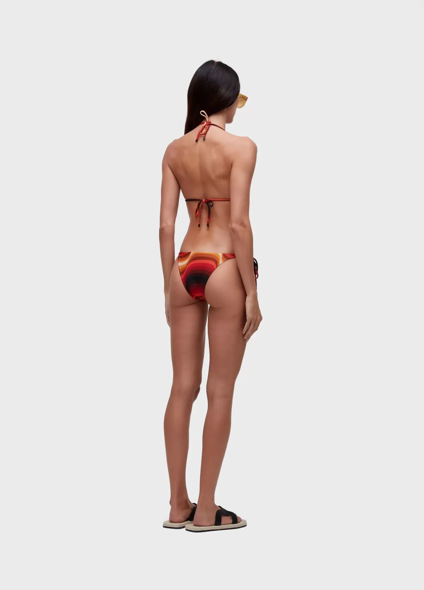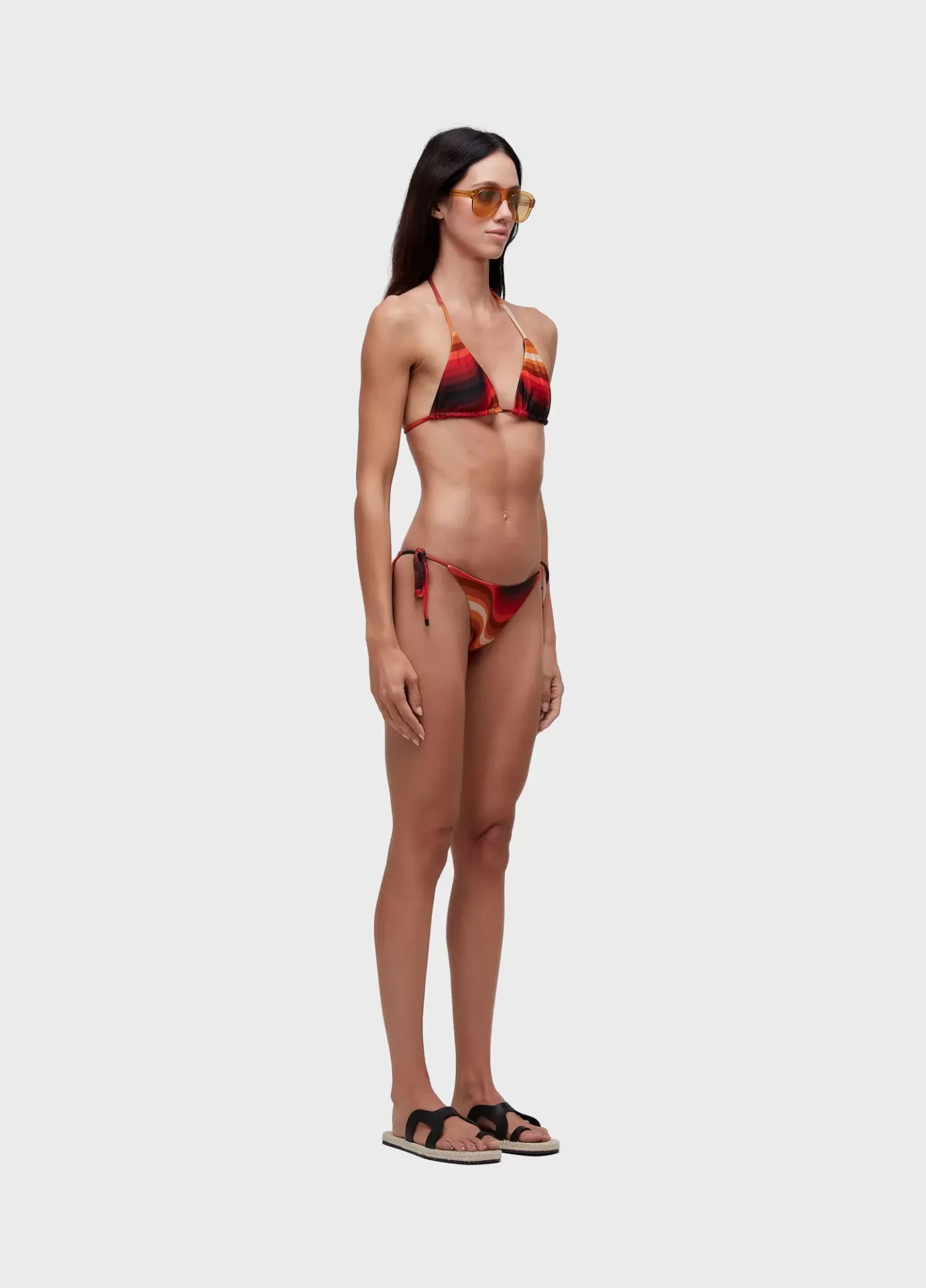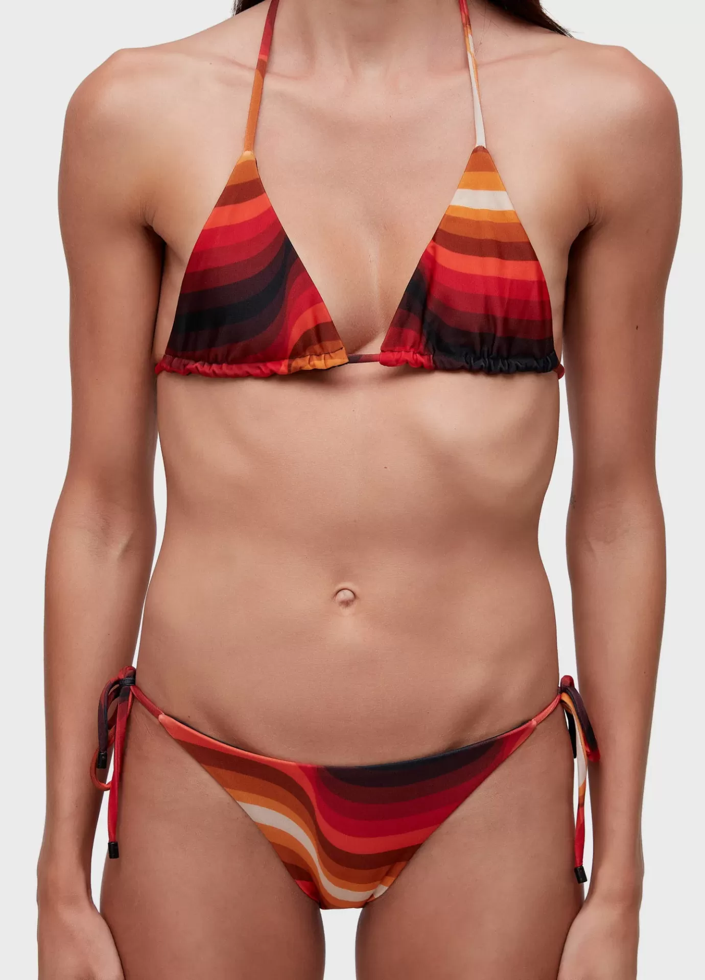 Biquíni desenvolvido na estampa Ipanema com top com curtininha e calcinha de lacinho. Rolotês ajustáveis. Estampa exclusiva da Osklen. A estampa pode sofrer alteração, dependendo do corte do tecido. Forro em malha elástica leve.