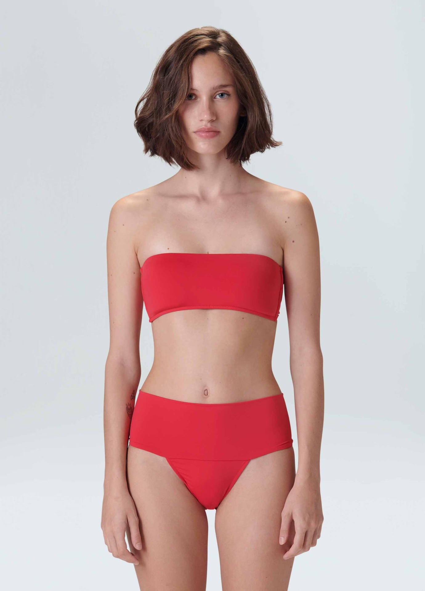 descrição Biquíni modelo tomara que caia e calcinha de pala dobrável. Desenvolvido em malha elástica leve dupla de poliamida biodegradável. Banderia Regenerate life. A poliamida biodegradável não possui componentes tóxicos e é isenta de metais pesados comprovados por teste conforme método/norma ASTM E1963 – Standard Guide for Conducting Terrestrial Plant Toxicity Tests. O processo da a fabricação do fio é feita em um ciclo fechado de água, sendo 100% tradada e reutilizada. Além disso, após o uso excessivo do produto e quando for descartado, se decompõem no aterro sanitário em média em 3 anos, enquanto a Poliamida Tradicional leva em torno de 50 anos, comprovado pela norma ASTM D5511 – Standard Test Method for Determining Anaerobic Biodegradation of Plastic Materials Under High-Solids Anaerobic-Digestion Conditions.
