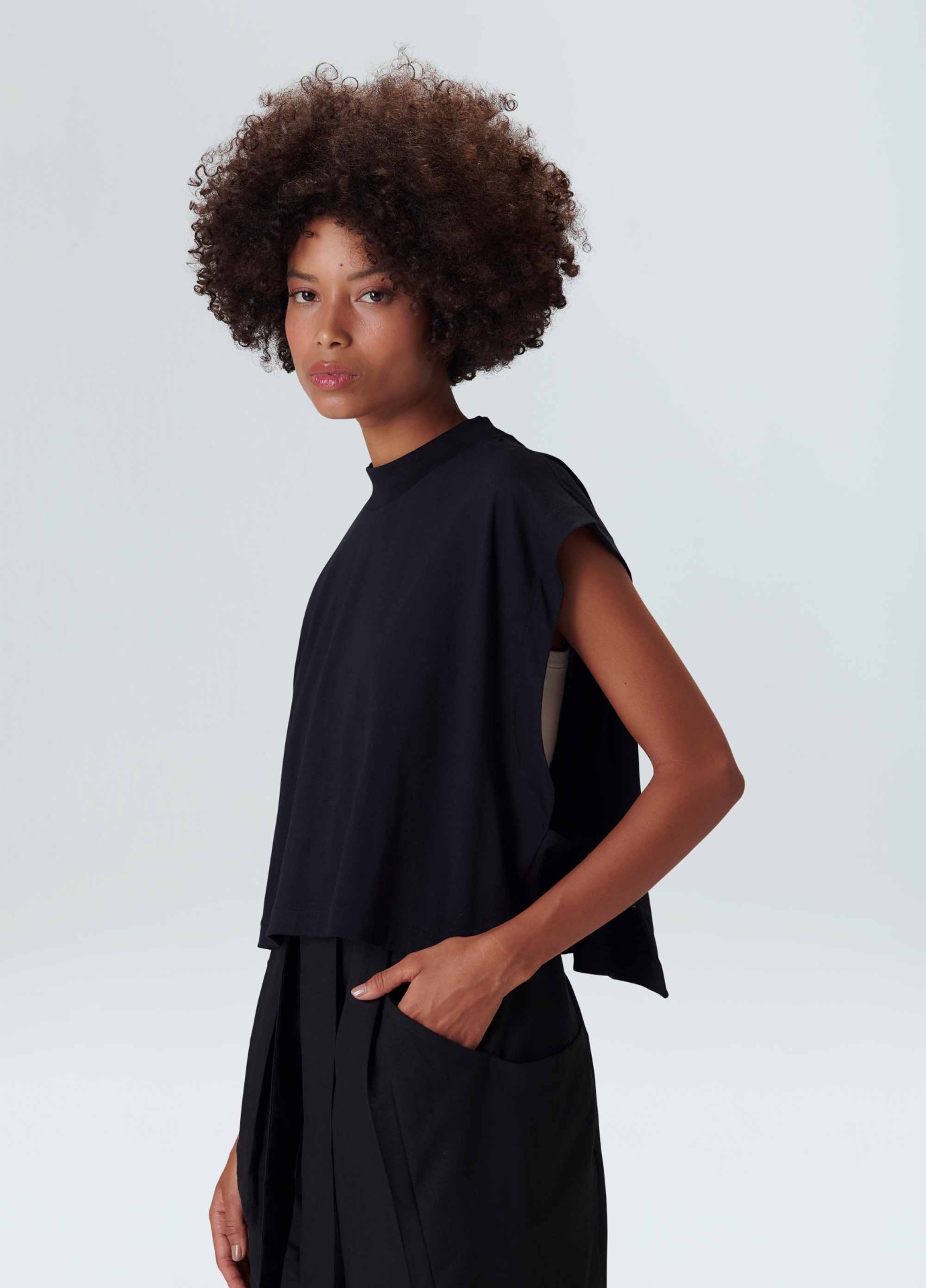 descrição Essa peça é composta por duas blusas separadas feitas de malha: uma regata e um colete, ambas de comprimento curto. A regata tem decote nadador, alças finas e caimento justo no corpo. O colete tem degolo bem fechado e modelagem reta com tacos laterais. Essa é uma peça Regenerate Life, pois foi produzida com algodão nacional certificado seguindo critérios minuciosos de redução dos impactos ambientais e sociais durante seu cultivo. Seu processo produtivo utiliza energia renovável, reduz o consumo de água e fomenta as cadeias produtivas brasileiras. Além disso, o colete foi feito através da técnica de tingimento Eco Dye, cujo processo reduz em aproximadamente 50% o consumo de água e energia elétrica, em comparação aos tingimentos tradicionais. Seu processo de lavagem é feito com amaciante natural, produzido a partir de resíduos do beneficiamento do grão de arroz, que tem como subproduto sua casca que é rica em óleo, possibilitando uma alternativa sustentável ao amaciante têxtil químico e contribuindo para a diminuição dos impactos ambientais.