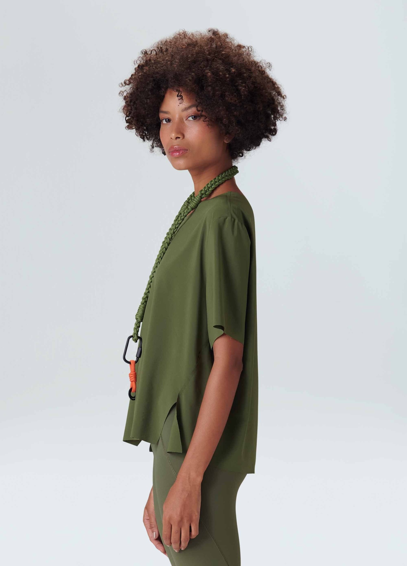 Blusa em tecido levíssimo, com toque acetinado e tecnologia Iron Free: a roupa desamassa sozinha durante o uso tornando este produto perfeito para qualquer momento do dia.