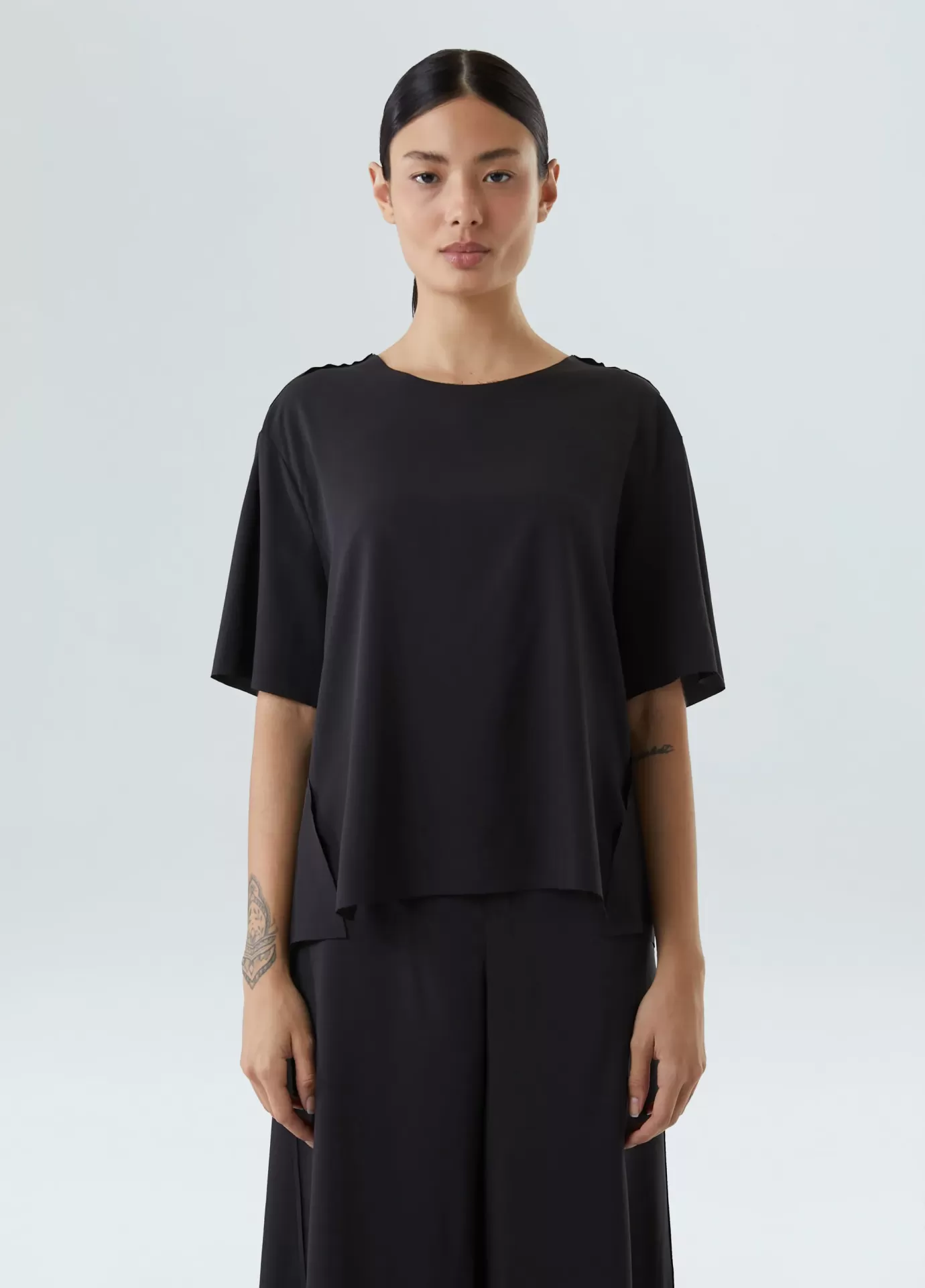Blusa feminina t-shirt, de manga curta e acabamento a fio em superlight. tecido levíssimo, com toque acetinado e tecnologia iron free: a roupa desamassa sozinha durante o uso tornando este produto perfeito para qualquer momento do dia.