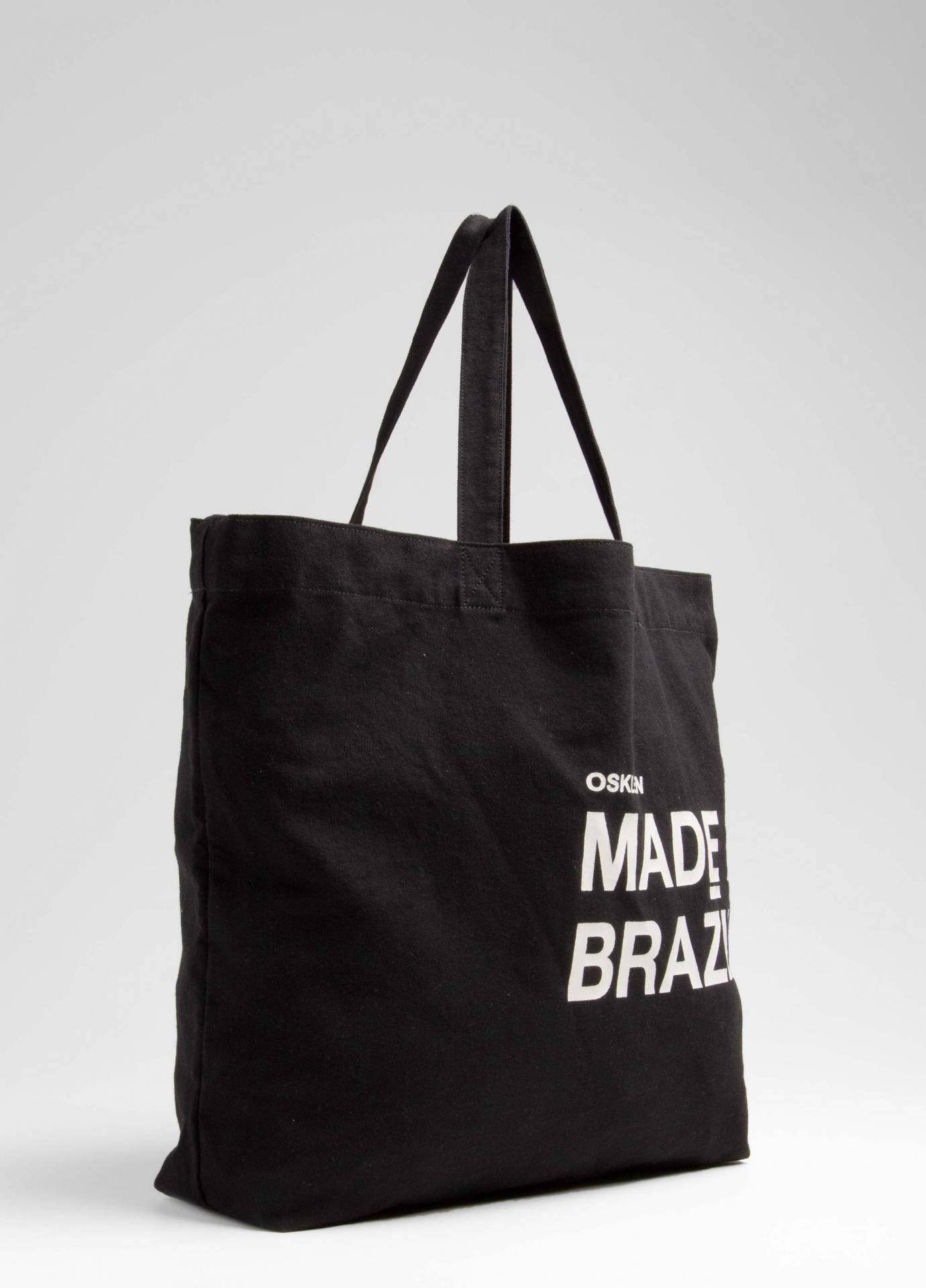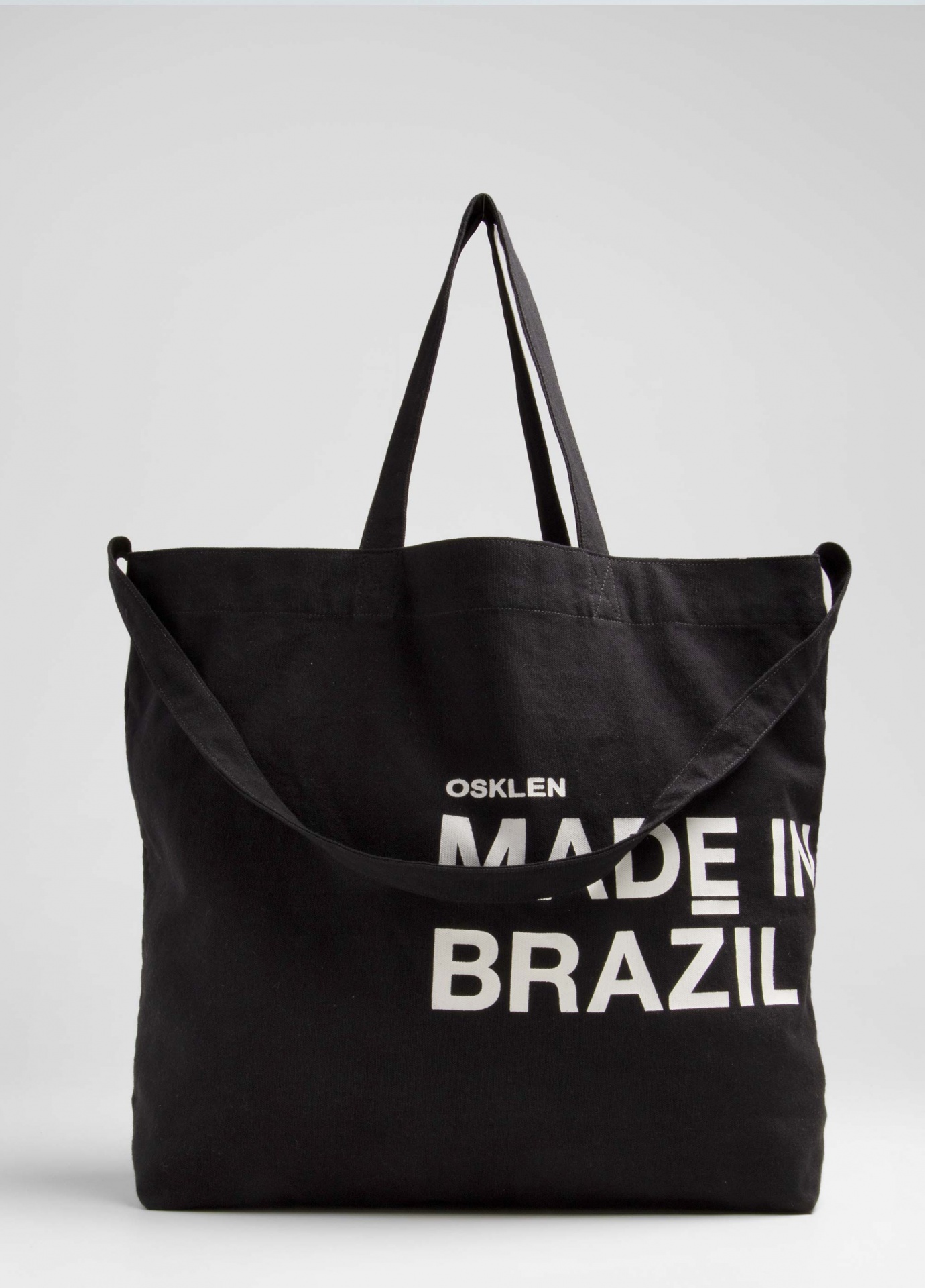 Bolsa Unissex modelo tote, estampa Osklen Made in Brazil da parte da frente. Feita em lona sustentável de algodão reciclado. Ao usar algodão reciclado em suas coleções a Osklen evita que cerca de 7,5 toneladas de resíduos têxteis sejam descartados por ano. Produto Redesign Waste. Possui duas alças sendo uma de mão e outra mais comprida que pode ser usada no ombro ou transpassada. Bolso interno também em lona sustentável com assinatura Osklen E.