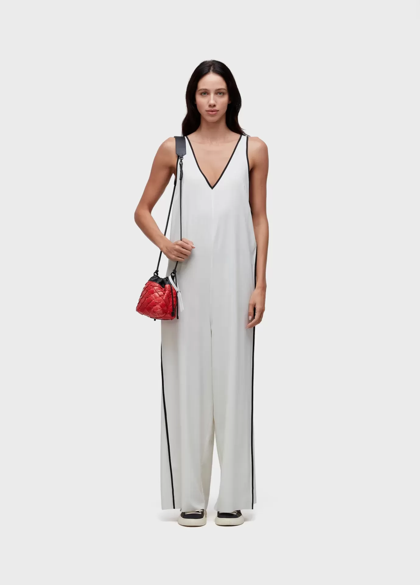 Bolsa em formato de saquinho, feita em couro de pirarucu e couro bovino, alça regulável em couro bovino, forro de sarja 100% algodão. produto regenerete life pois a pele do peixe pirarucu usada pela Osklen atende às normas rigorosas de manejo sustentável e protegem a espécie do risco de extinção, além da própria floresta já que não envolve desmatamento.