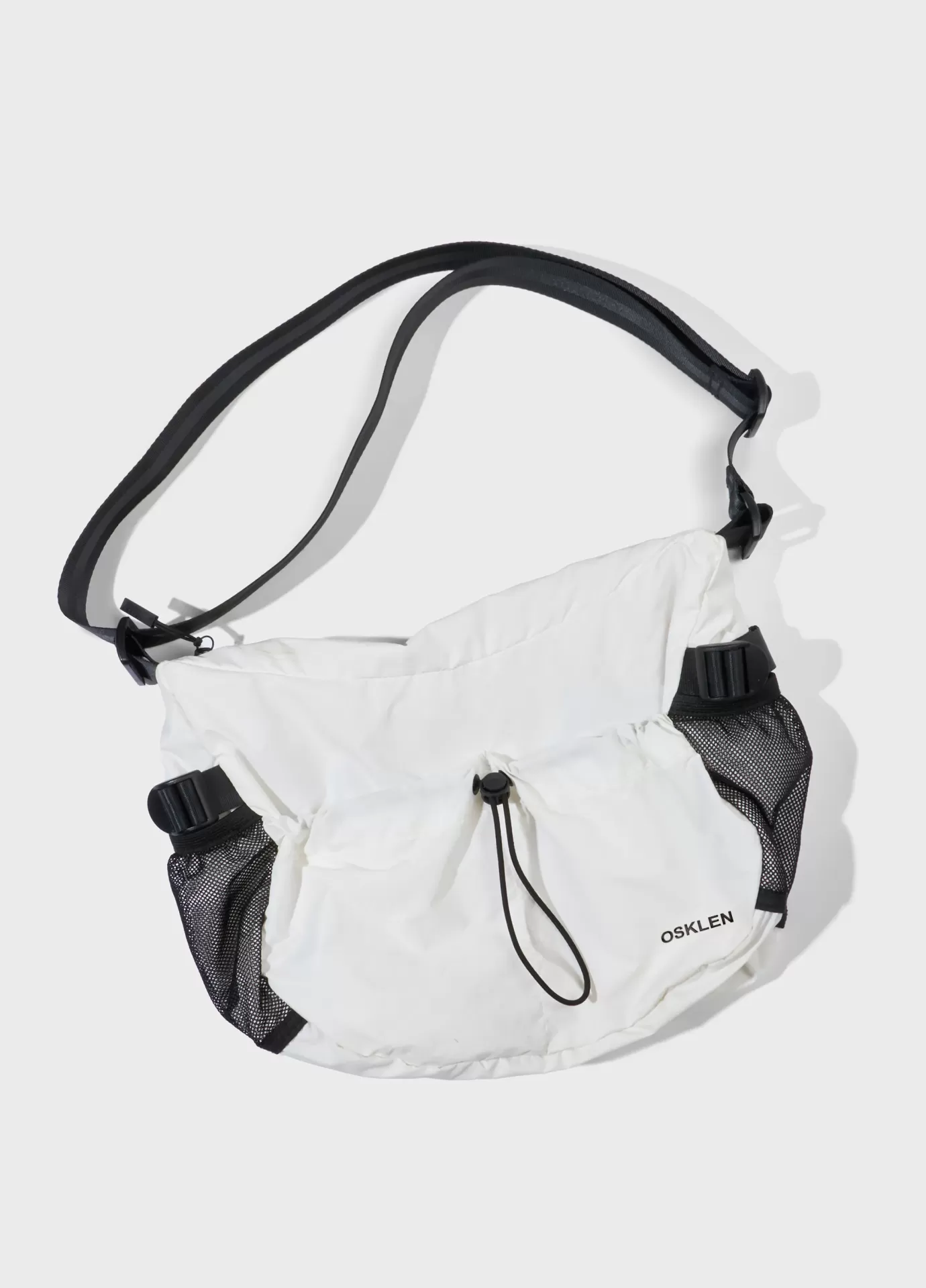 Bolsa em nylon 100% poliamida. modelo tamanho médio e despojado, ideal para o dia dia. possui fechamento em zíper, bolso frontal e bolsos laterais com tela esportiva. alça de fita regulável e compartimentos internos estratégicos. o produto se inspira em antigo modelo de bolsa split da osklen, e renova propondo novos materiais.