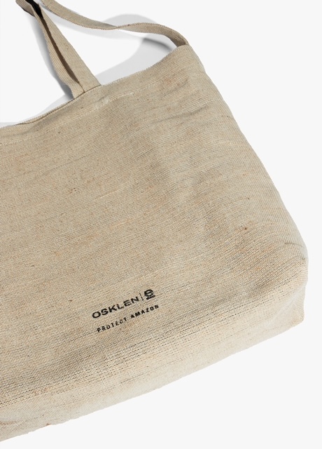 Bolsa Unissex, modelo tote com silk de assinatura de sustentabilidade do material, localizado na parte frontal da peça. Feita em Juta da Amazônia, produto Respect Our People e Regenerete Life, a Juta é cultivada nas calhas do rio, evitando queimadas e desmatamento no local do seu cultivo, contribuindo assim, para a conservação ambiental. Não utiliza agrotóxicos, herbicidas ou fungicidas. Uma bolsa Osklen feita com juta chega a reduzir em 83% o uso de água. Possui duas alças, sendo uma de mão e outra de ombro.