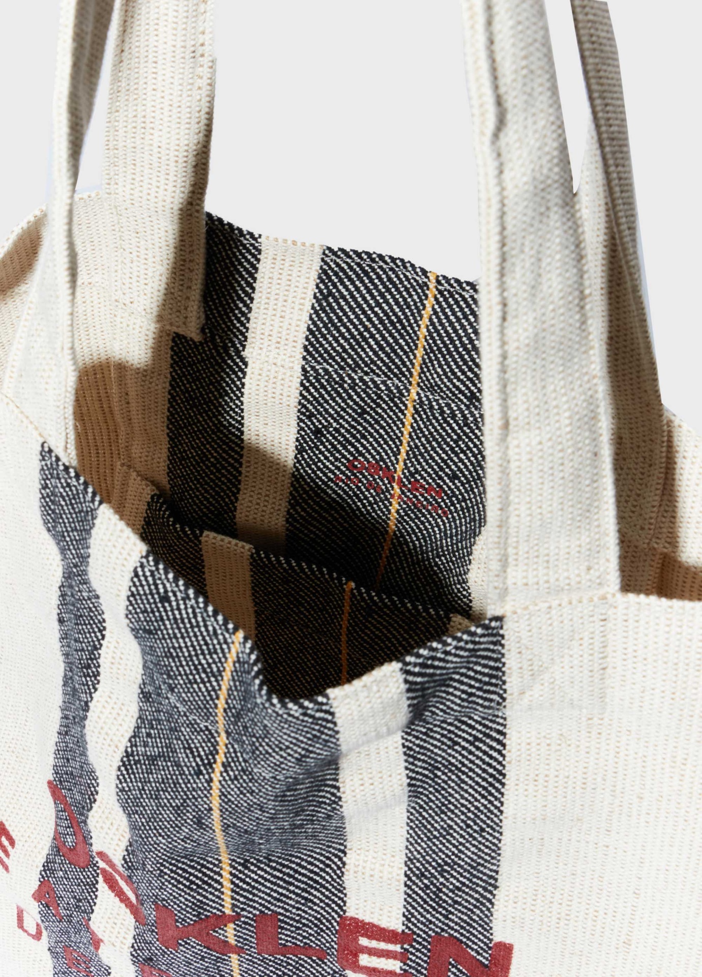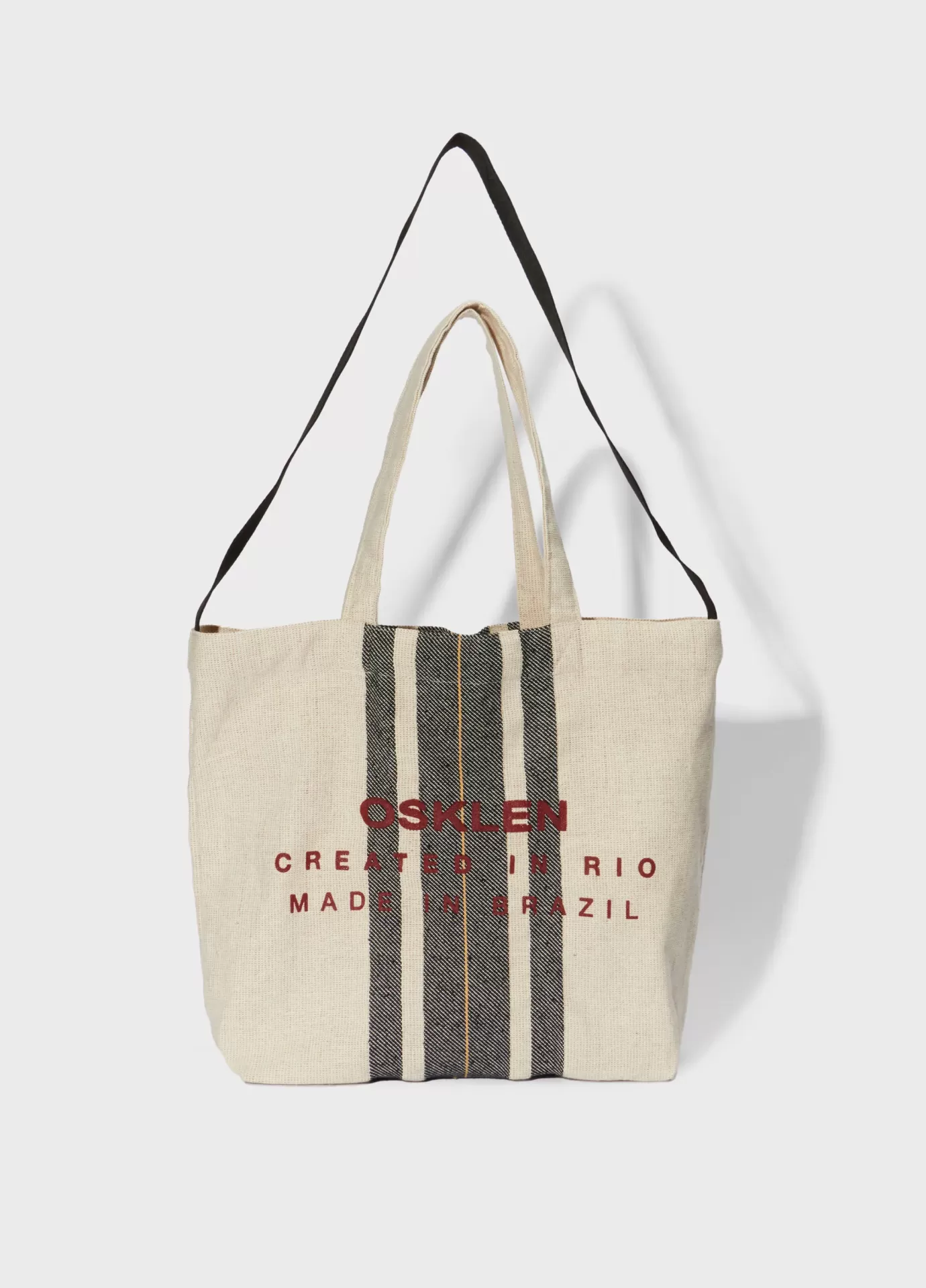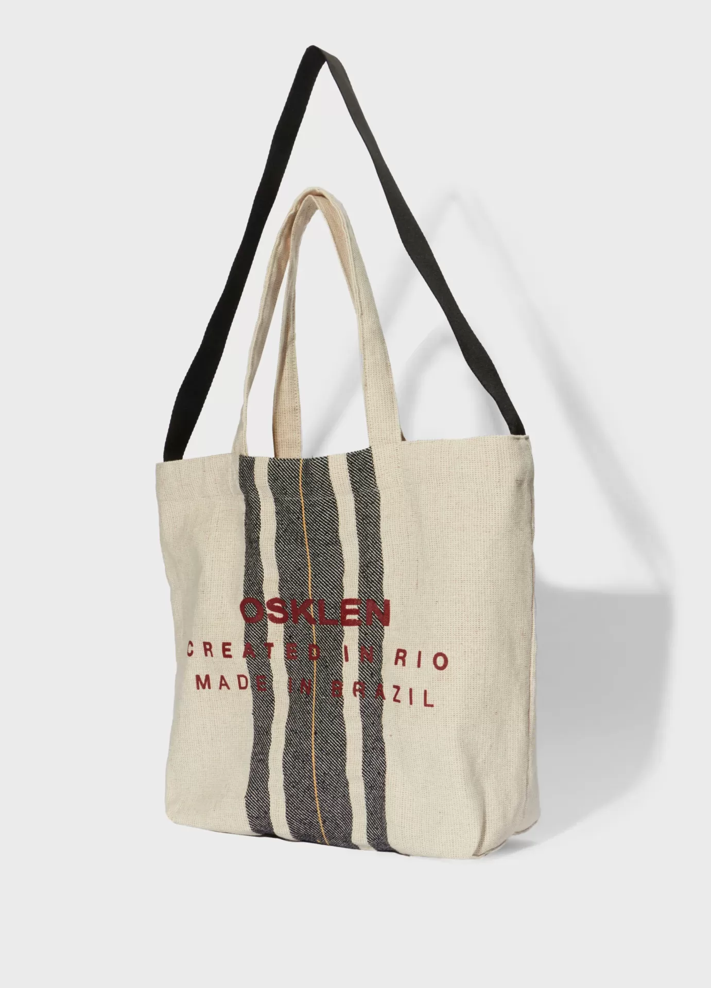 Bolsa tote 68% algodão 32% juta, com alça longa em fita esportiva. bolsa de tamanho grande com assinatura institucioinal e estampa exclusiva osklen