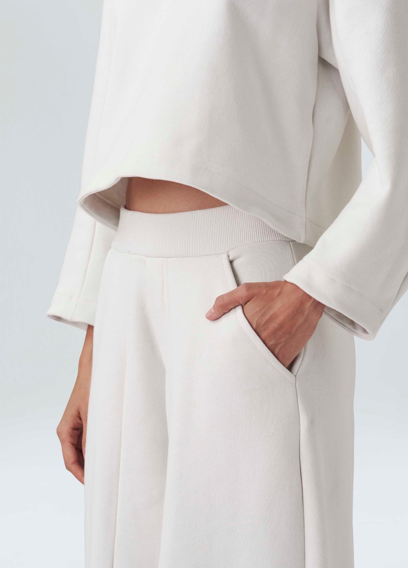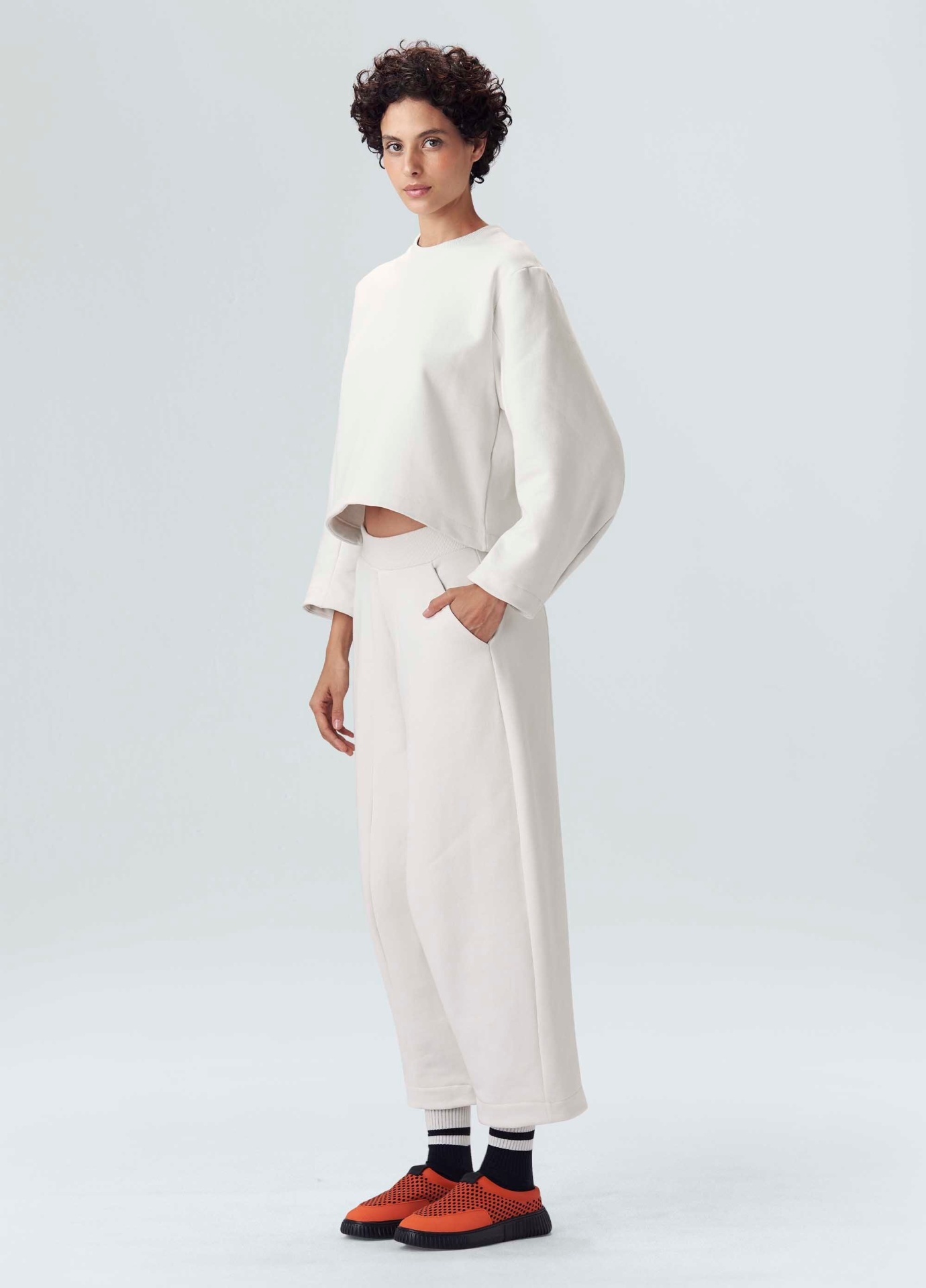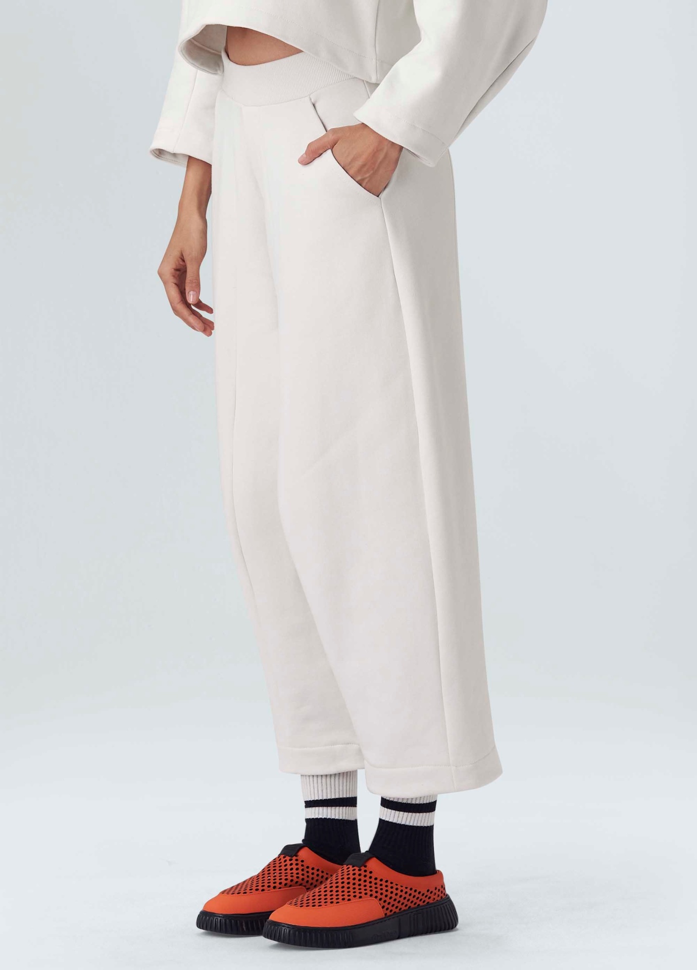 Calça feminina feita em moletom felpado. Com cós alto e bolsos faca. Sua modelagem é ergonômica, sendo levemente abaolada nos joelhos. O caimento é reto ao corpo e as barras não são amplas. Essa é uma peça Regenerate Life, pois foi desenvolvida com algodão orgânico, matéria-prima natural que dispensa a utilização de agrotóxicos em sua produção. Além de contribuir para a preservação do solo, esse método de cultivo reduz o consumo de água, energia e emissão de gases, gerando menor impacto socioambiental e fomentando a sustentabilidade na cadeia produtiva. Composição: 90% algodão 10% não determinada.