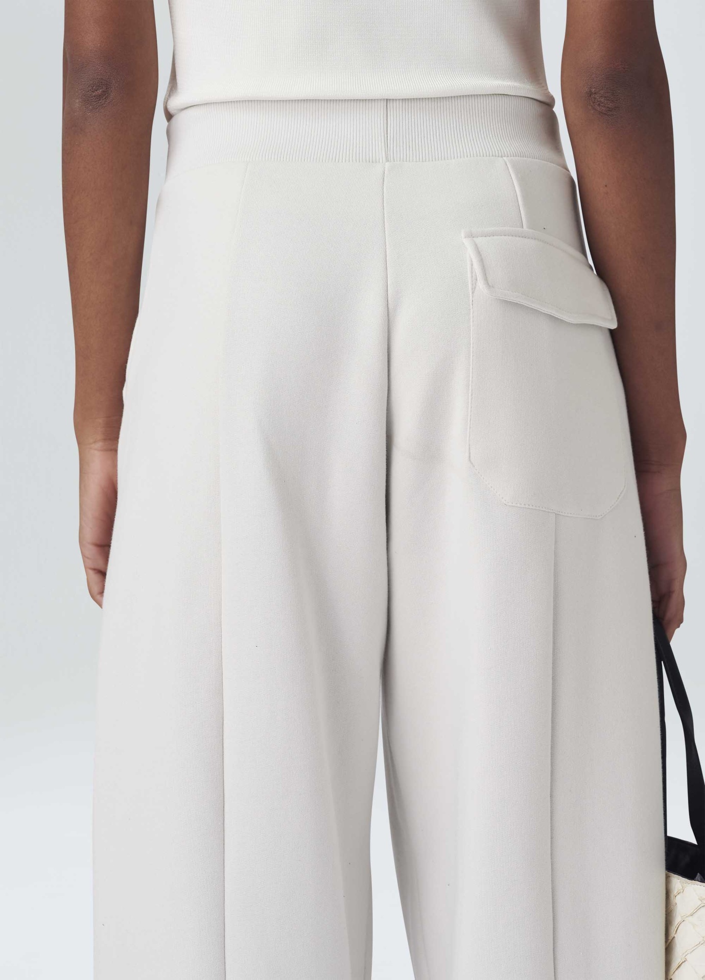descriçãoCalça feminina feita em malhão de algodão. A peça tem cós de elástico e um t