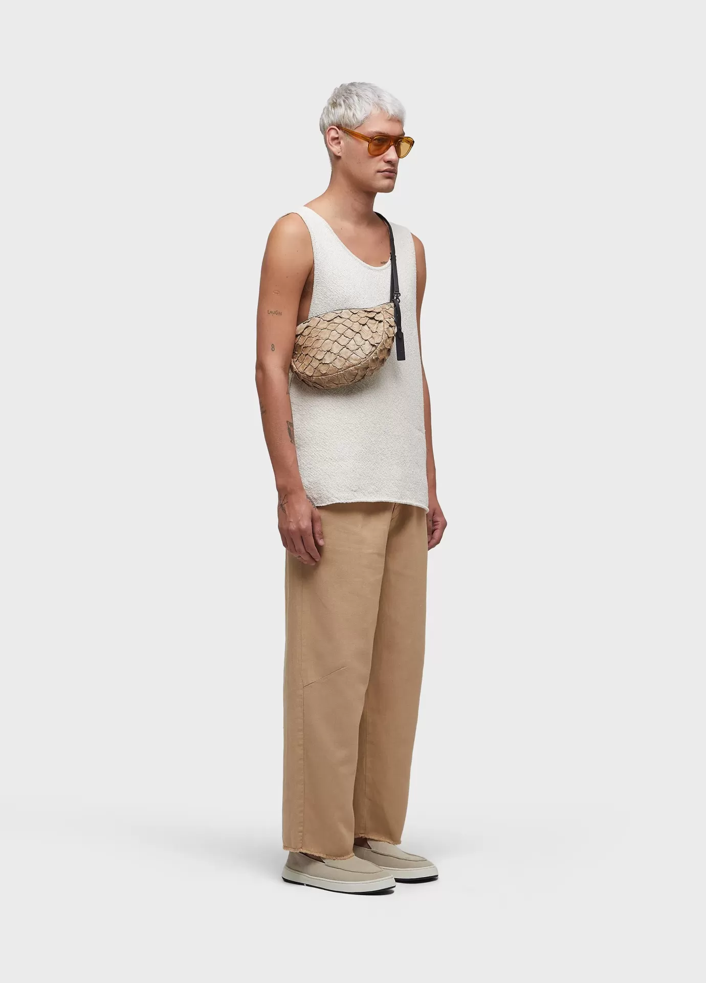Calça de alfaiataria com modelagem over, com silk com arte exclusiva osklen; feita em