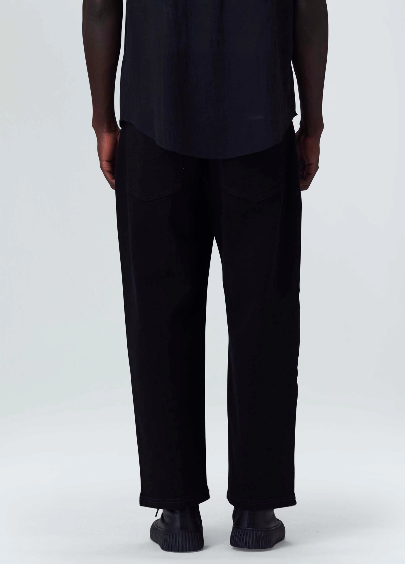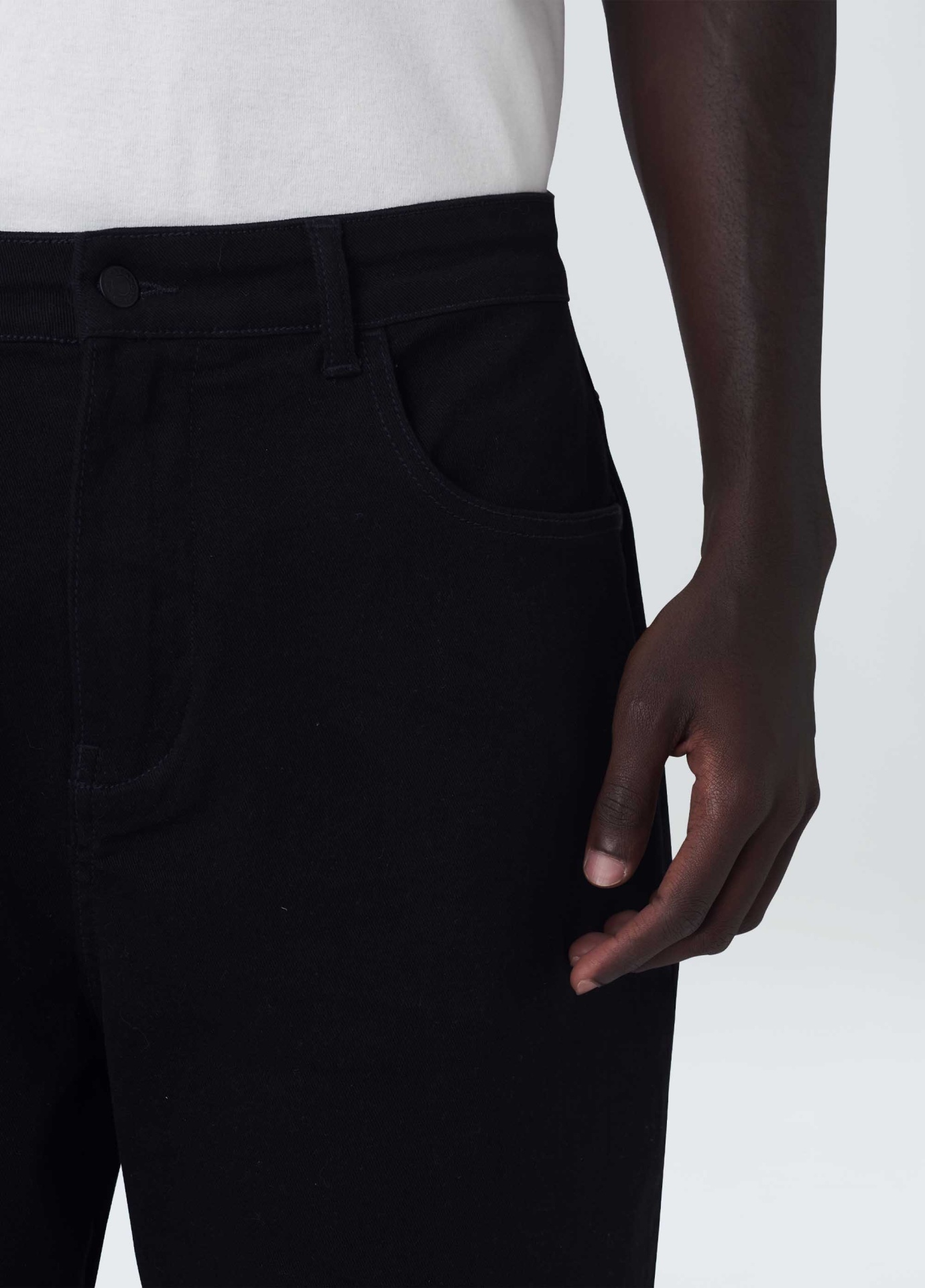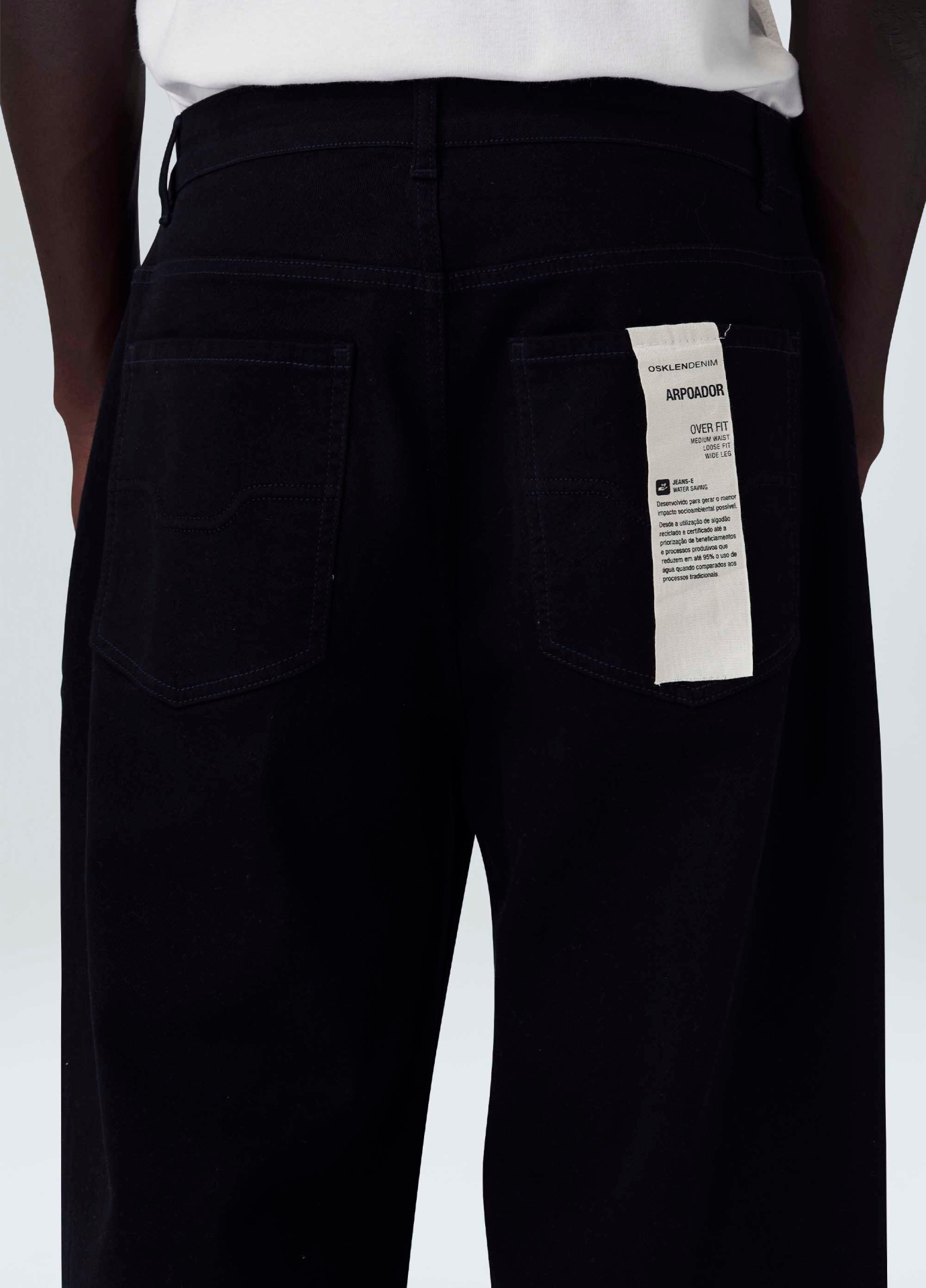 Calça jeans-e masculina em modelagem Arpoador, modelagem over, ampla em relação ao corpo. Em algodão reciclado certificado com elastano para dar mais comforto. Desenvolvida por meio de processos sustentáveis, com matéria-prima reciclada fabricada com técnicas que economizam até 95% de água nos processos de tingimento e acabamento, contribuindo para a redução da emissão de CO2.