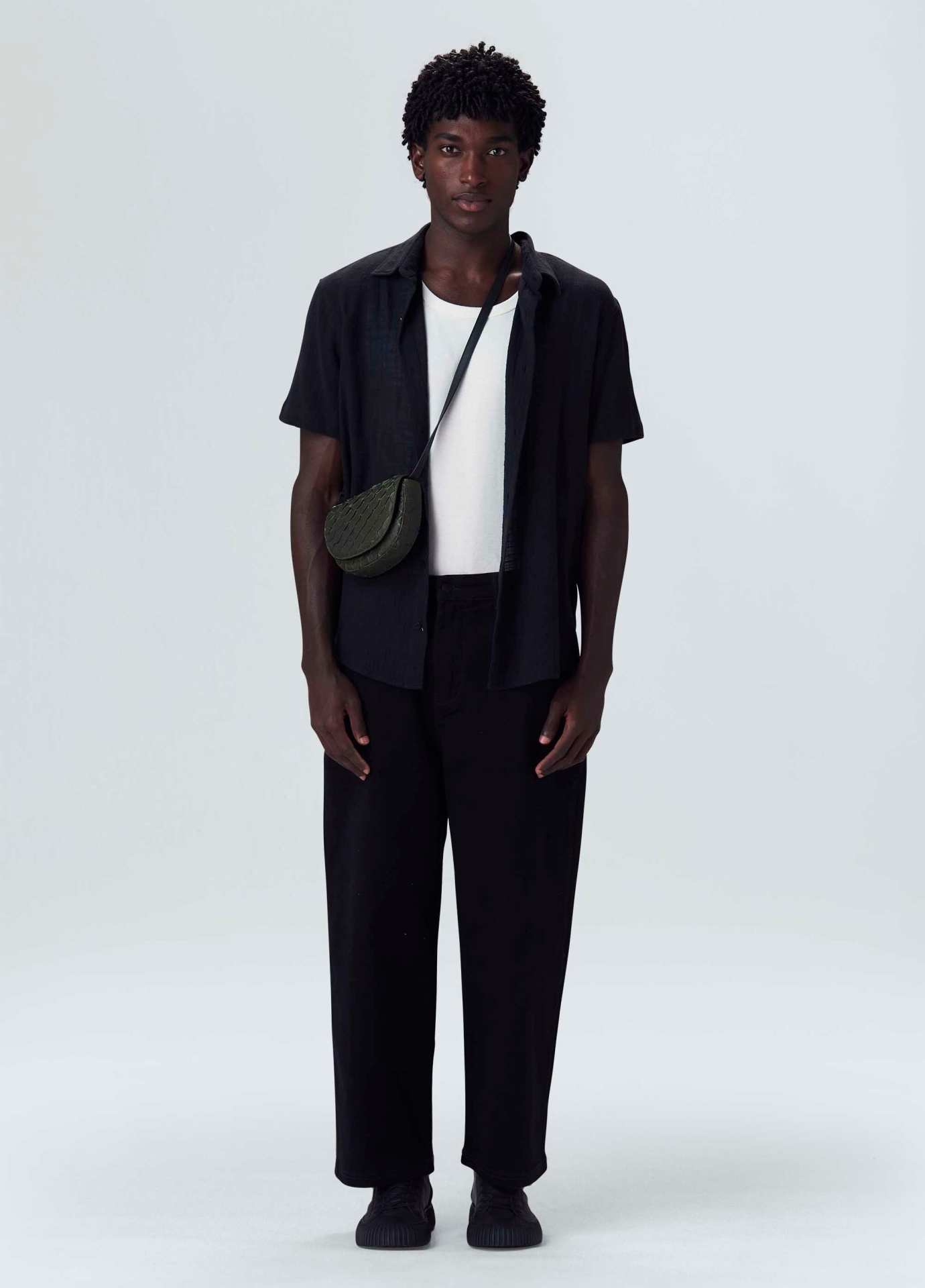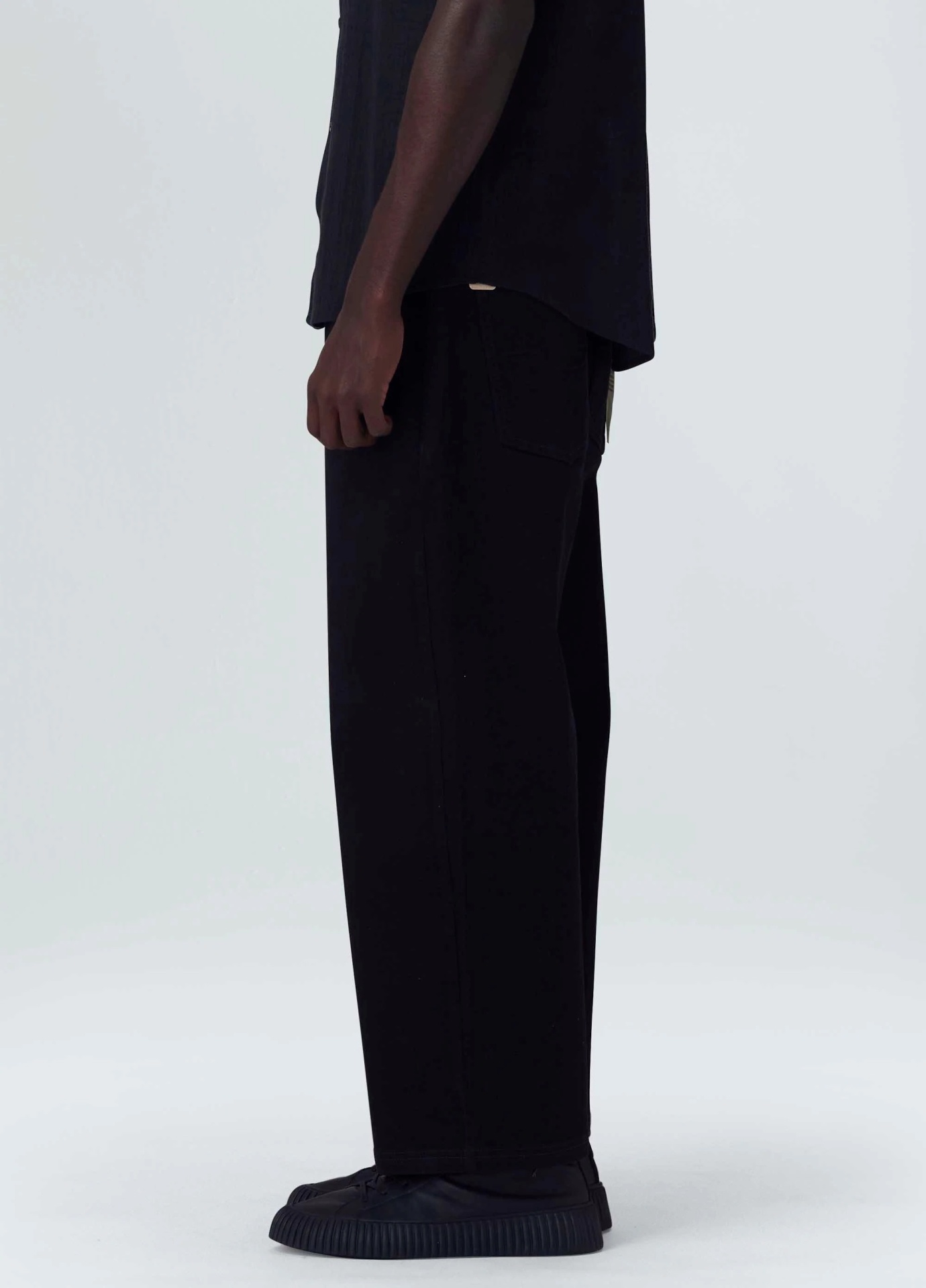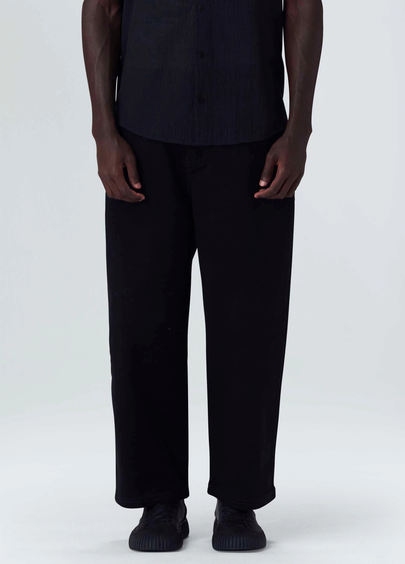 Calça jeans-e masculina em modelagem Arpoador, modelagem over, ampla em relação ao corpo. Em algodão reciclado certificado com elastano para dar mais comforto. Desenvolvida por meio de processos sustentáveis, com matéria-prima reciclada fabricada com técnicas que economizam até 95% de água nos processos de tingimento e acabamento, contribuindo para a redução da emissão de CO2.
