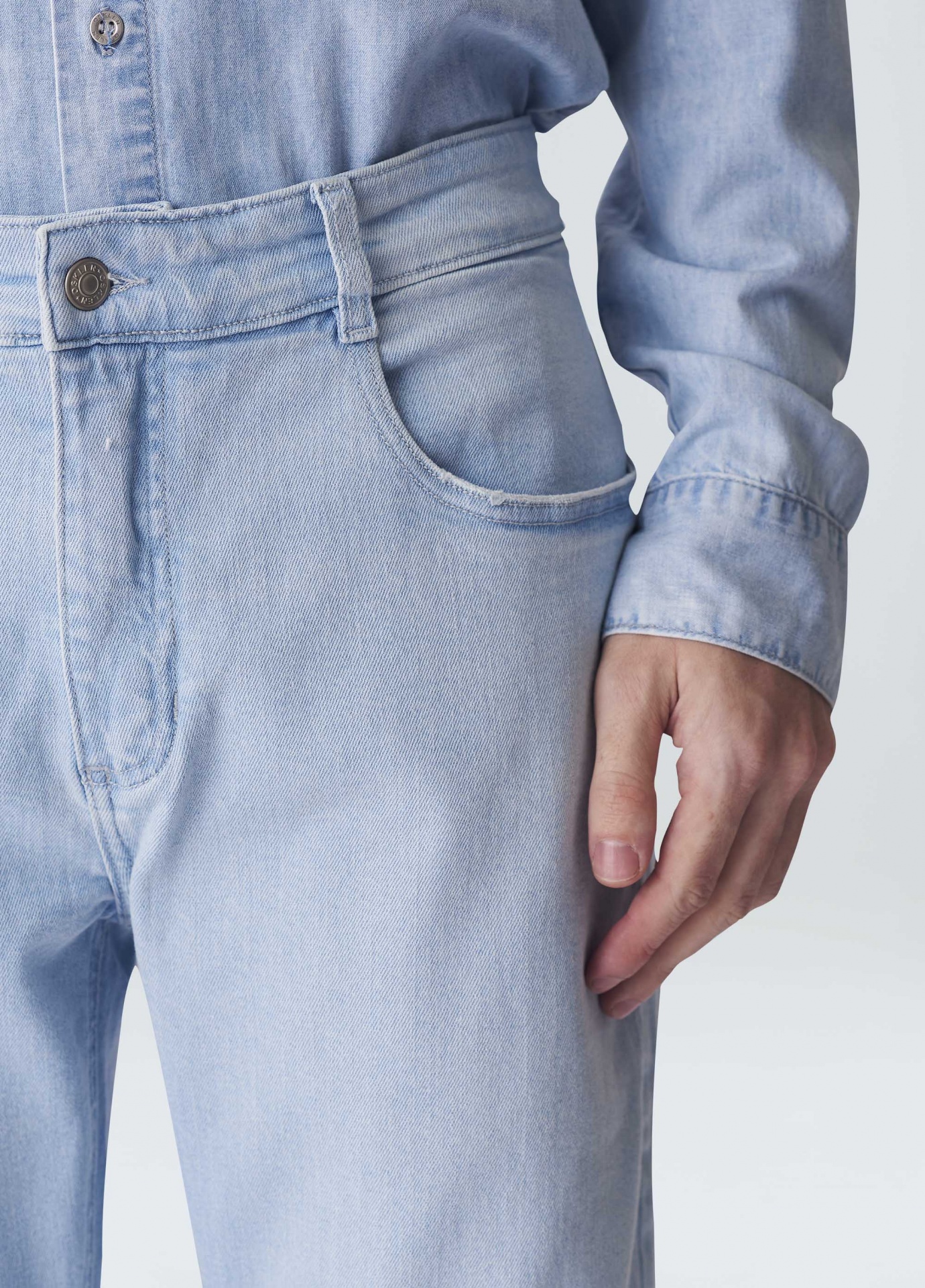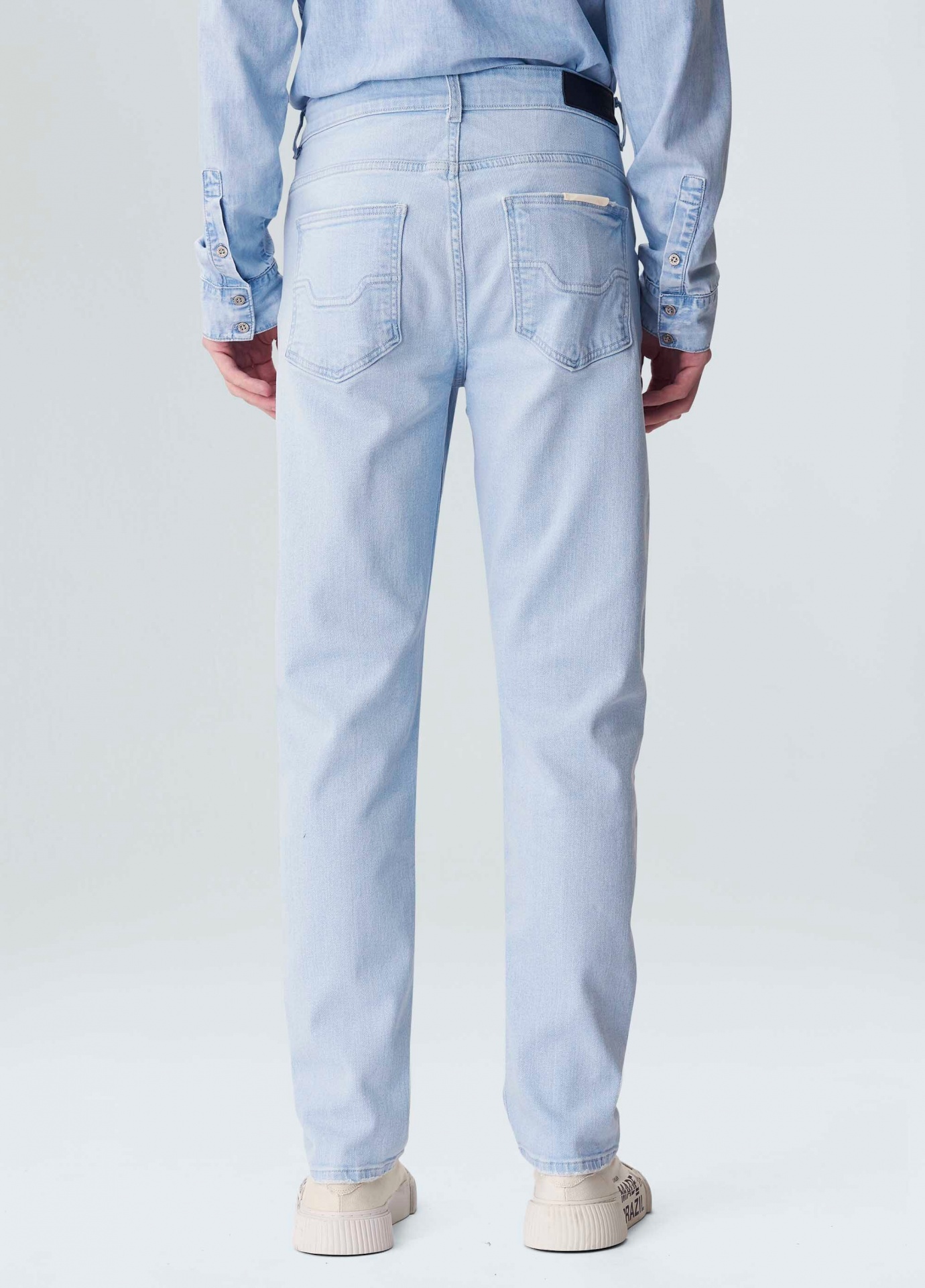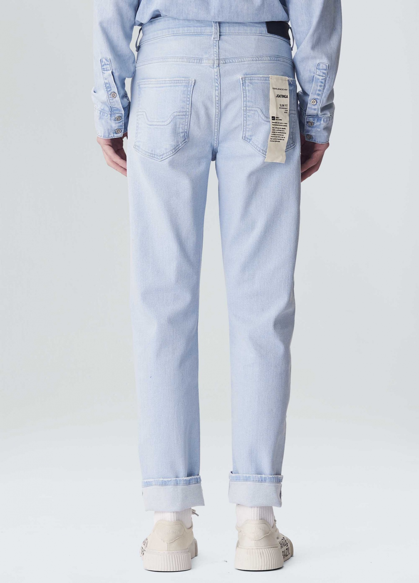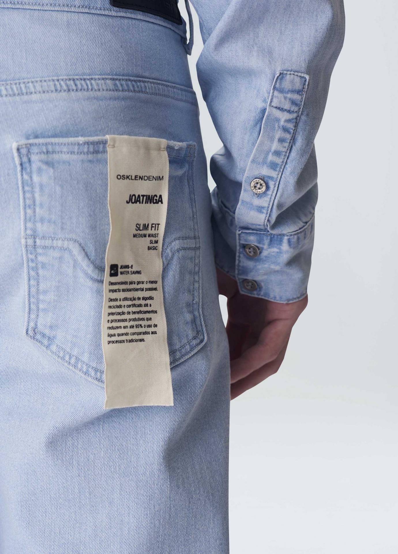 Calça jeans masculina em modelagem Joatinga, modelagem slim, ajustada ao corpo. Em algodão certificado com elastano para dar mais comforto. Lavagem azul Clara, peça tinturada e amaciada. Essa peça foi produzida com algodão nacional certificado seguindo critérios minuciosos de redução dos impactos ambientais e sociais durante seu cultivo. Seu processo produtivo utiliza energia renovável, reduz o consumo de água e fomenta as cadeias produtivas brasileiras.
