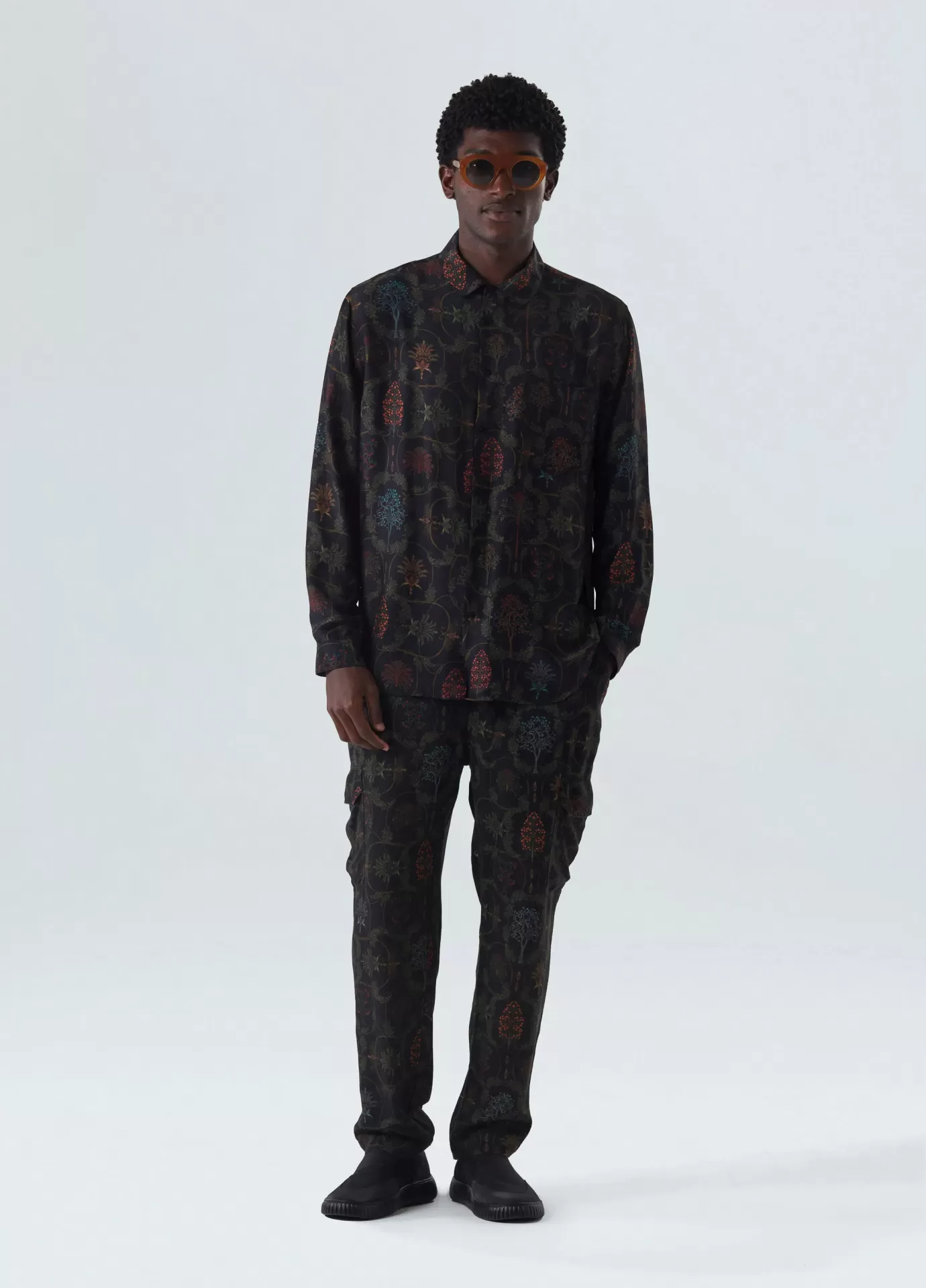 descriçãoCalça masculina. feita a partir de um e-fabric de fibras recicladas e algodã