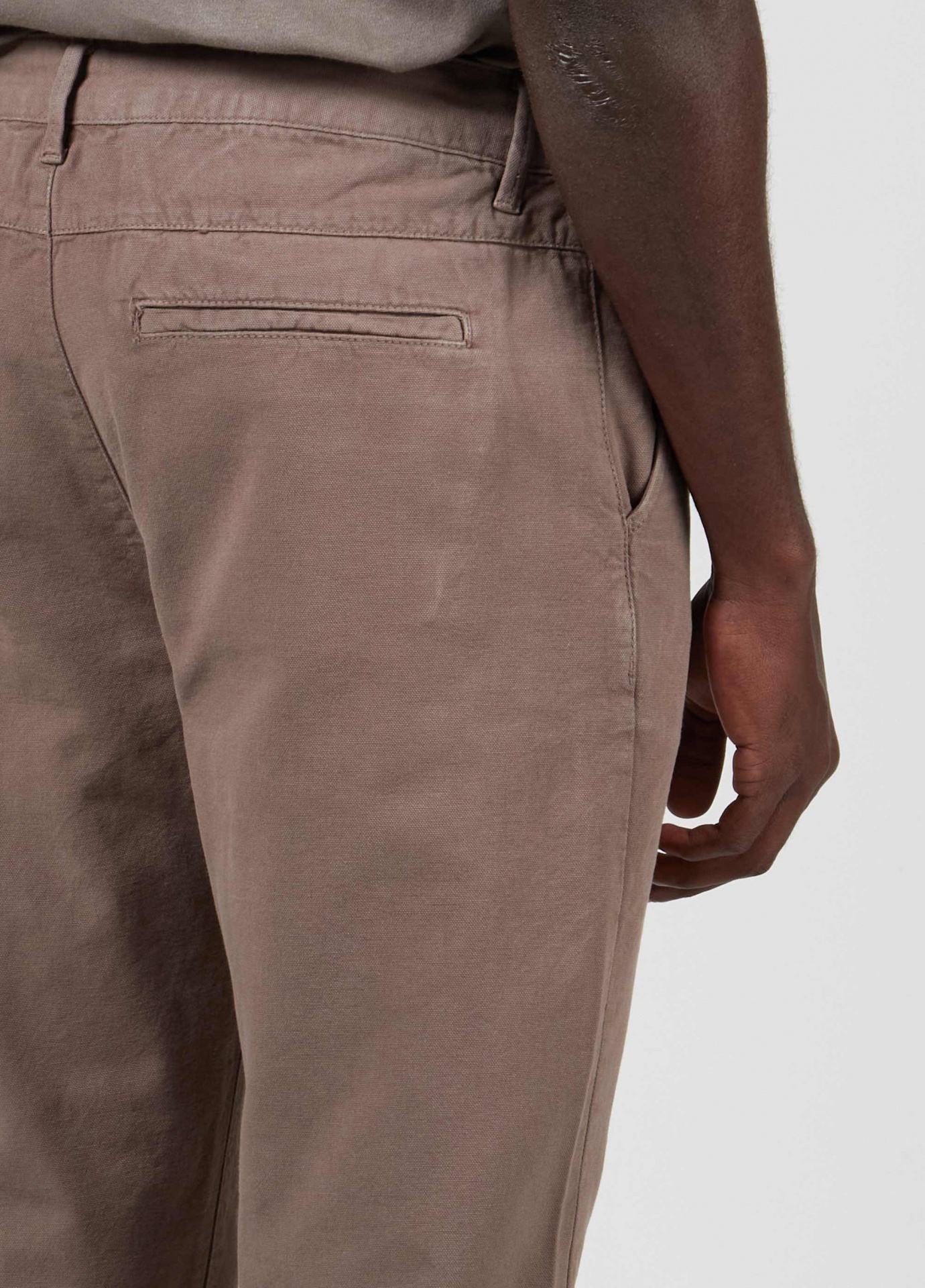 Parte da linha E-basics. Cós de Alfaiataria com tecido E-fabrics de algodão reciclado, evitando o descarte de resíduos no meio ambiente. Peça lavada e amaciada.