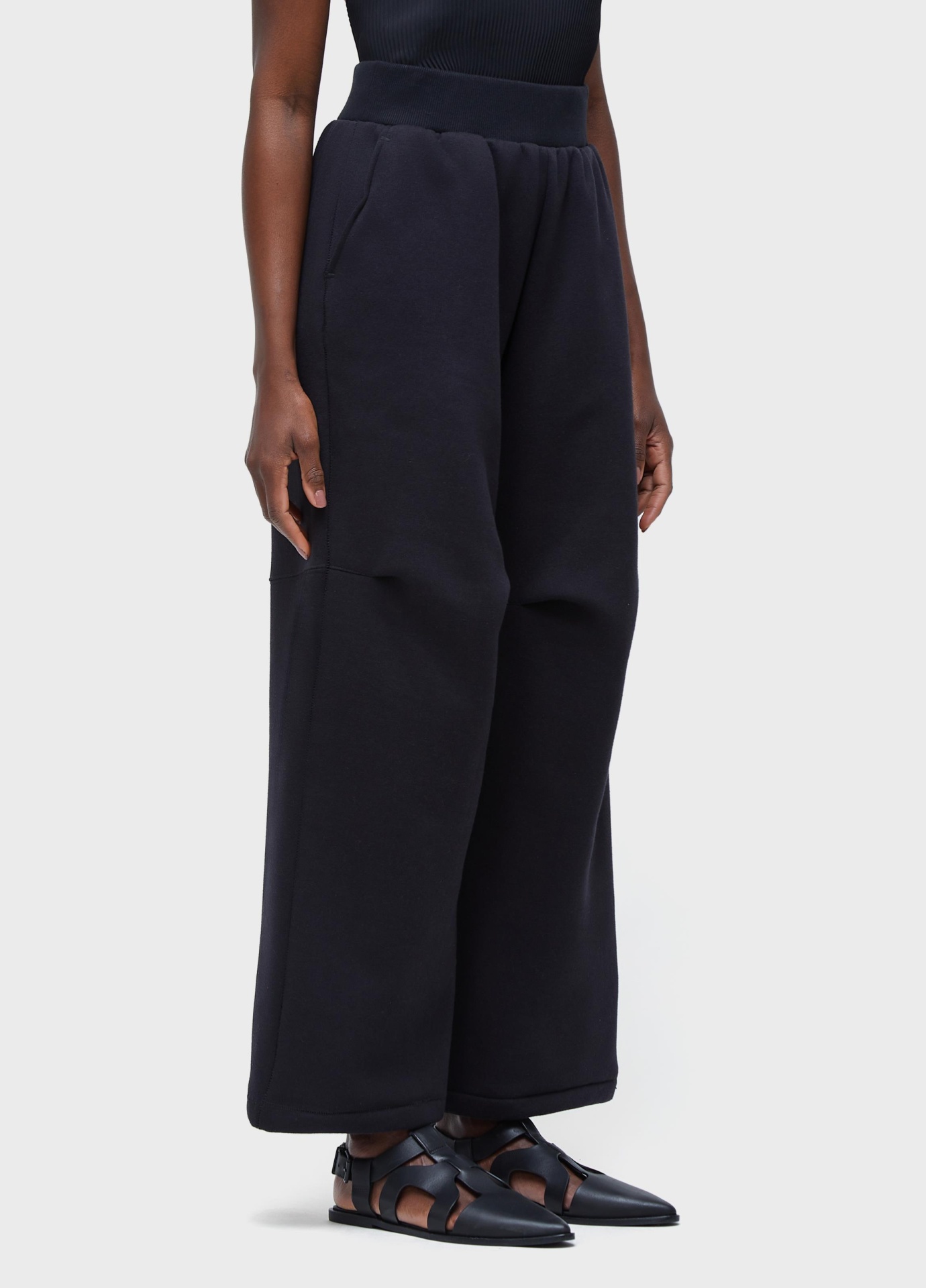 Calça de moletom, modelagem ampla; cós com elastico embutido; joelho projetado; peça