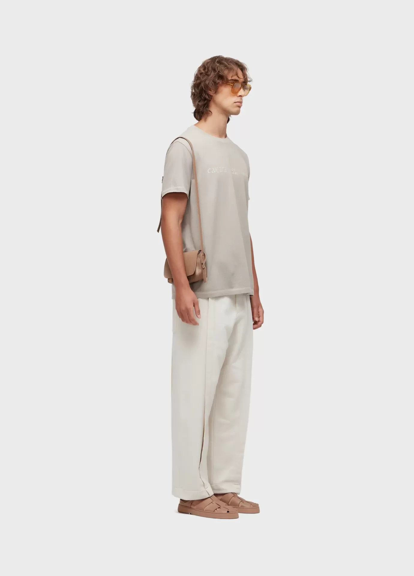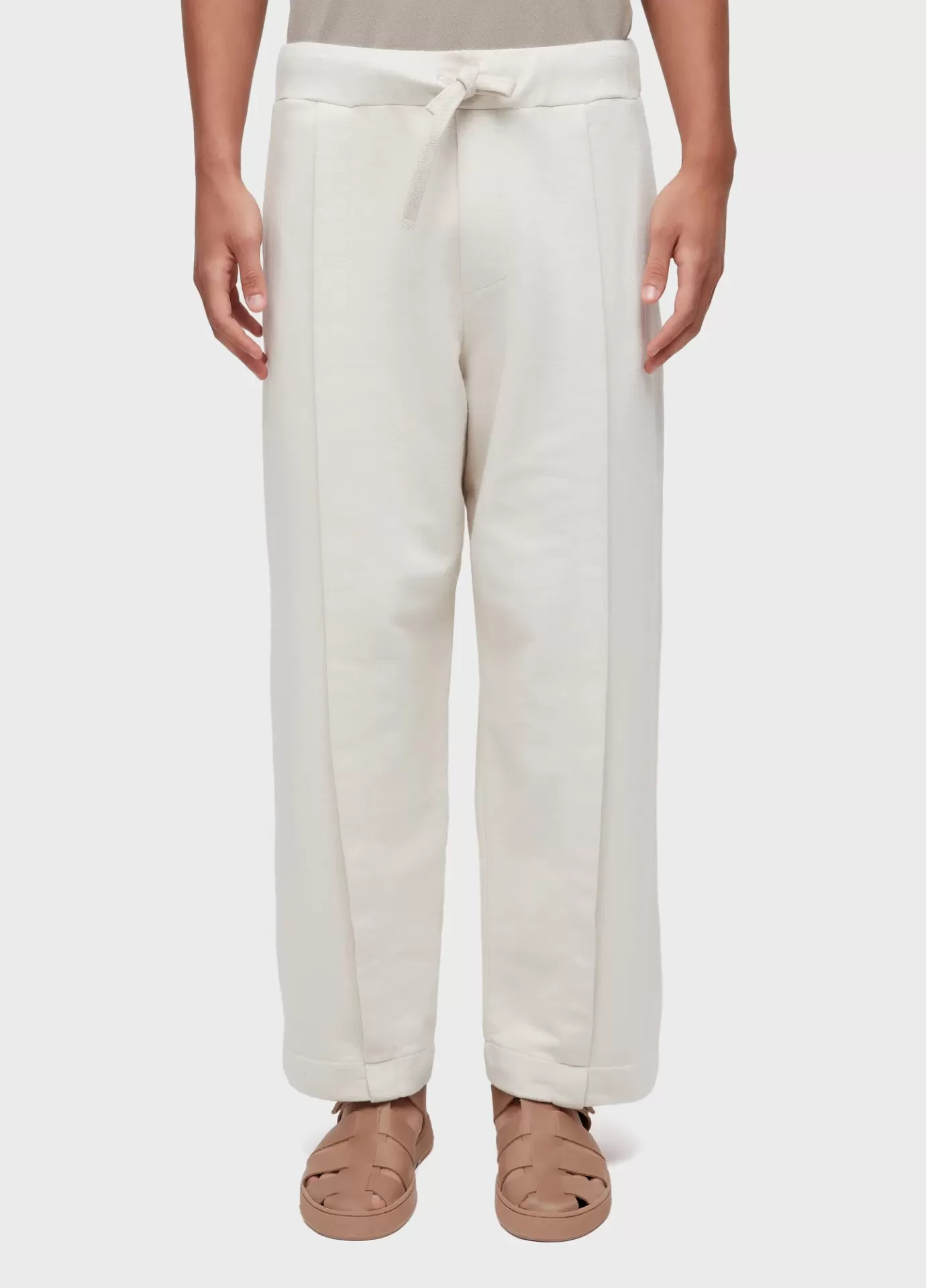 Calça masculina em modelagem over com pregas frente e costas, feita em moletom sarjad