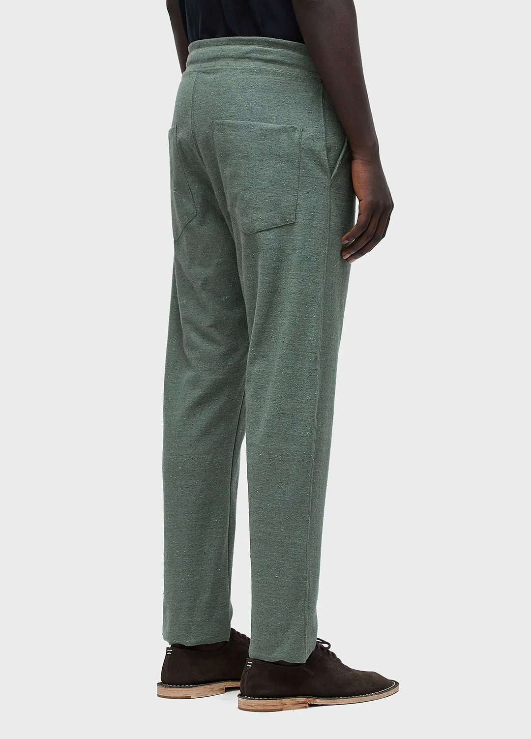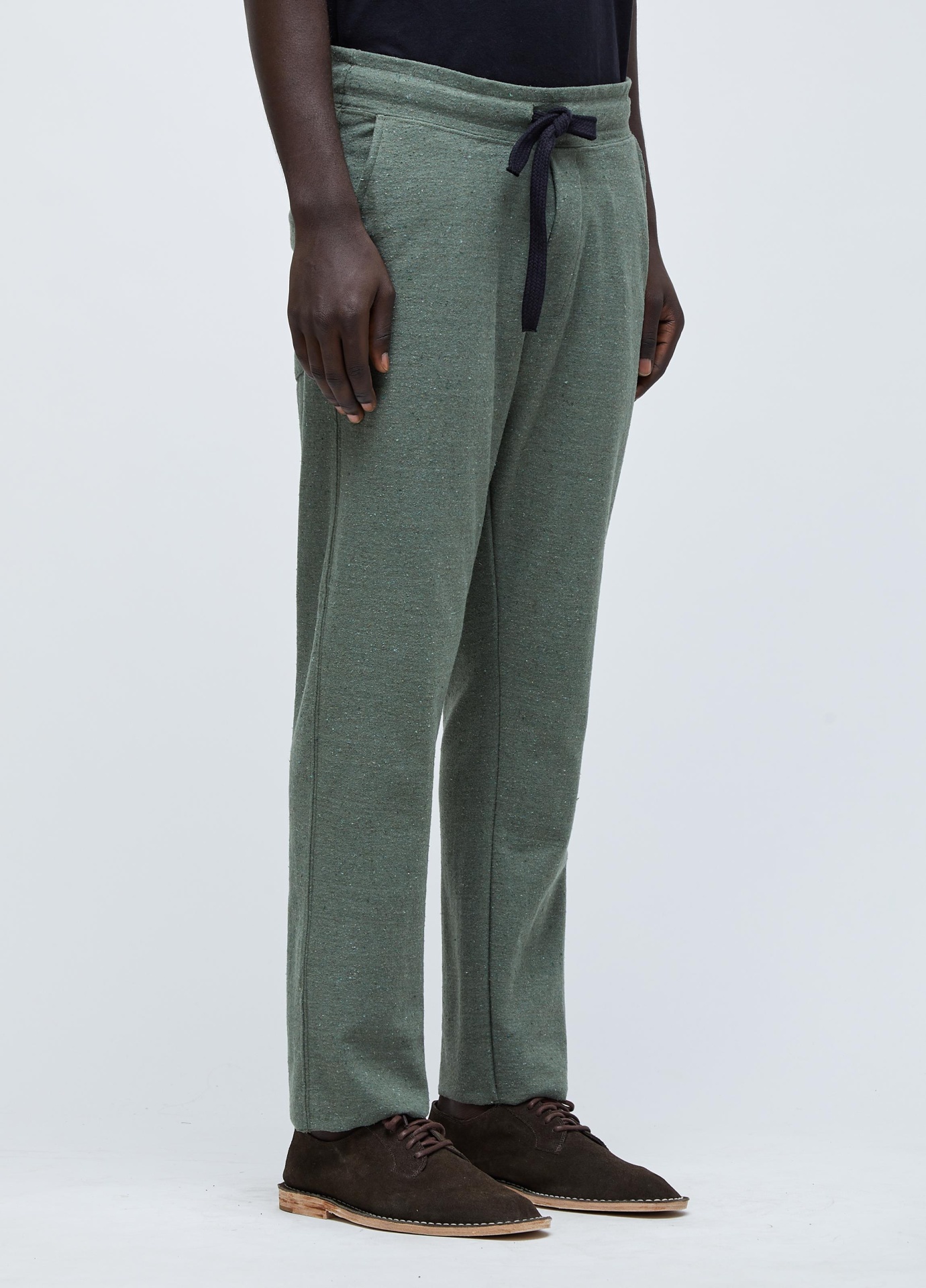Calça e-basics em malhão rústico e-fabrics com algodão reciclado, proveniente da sobr
