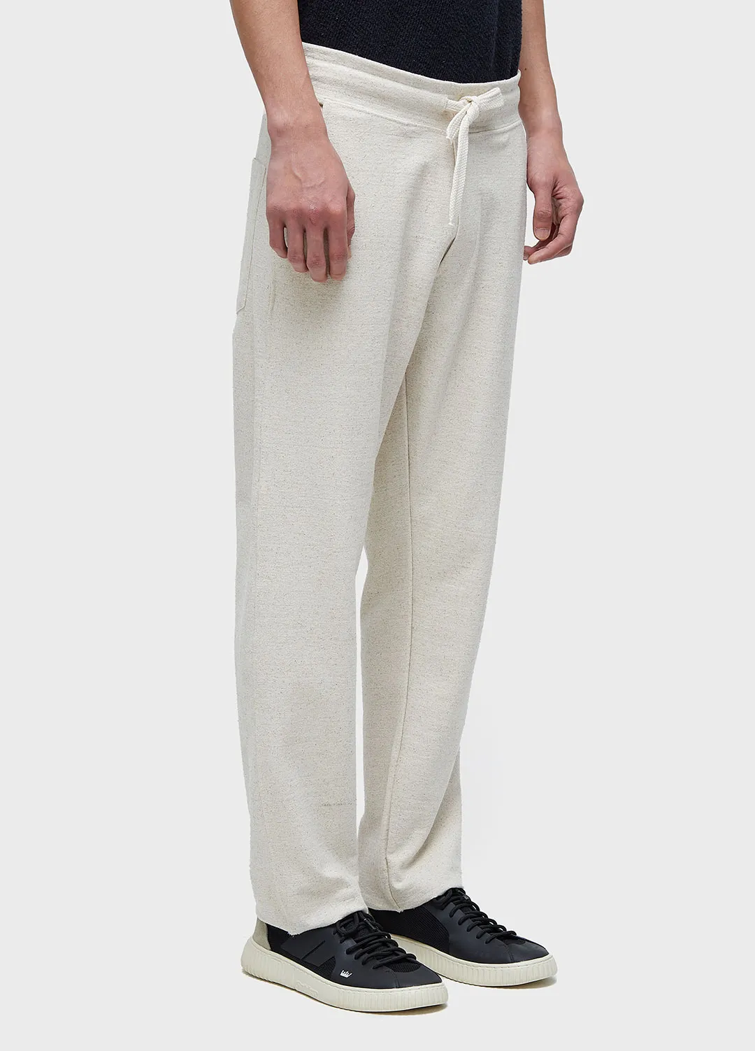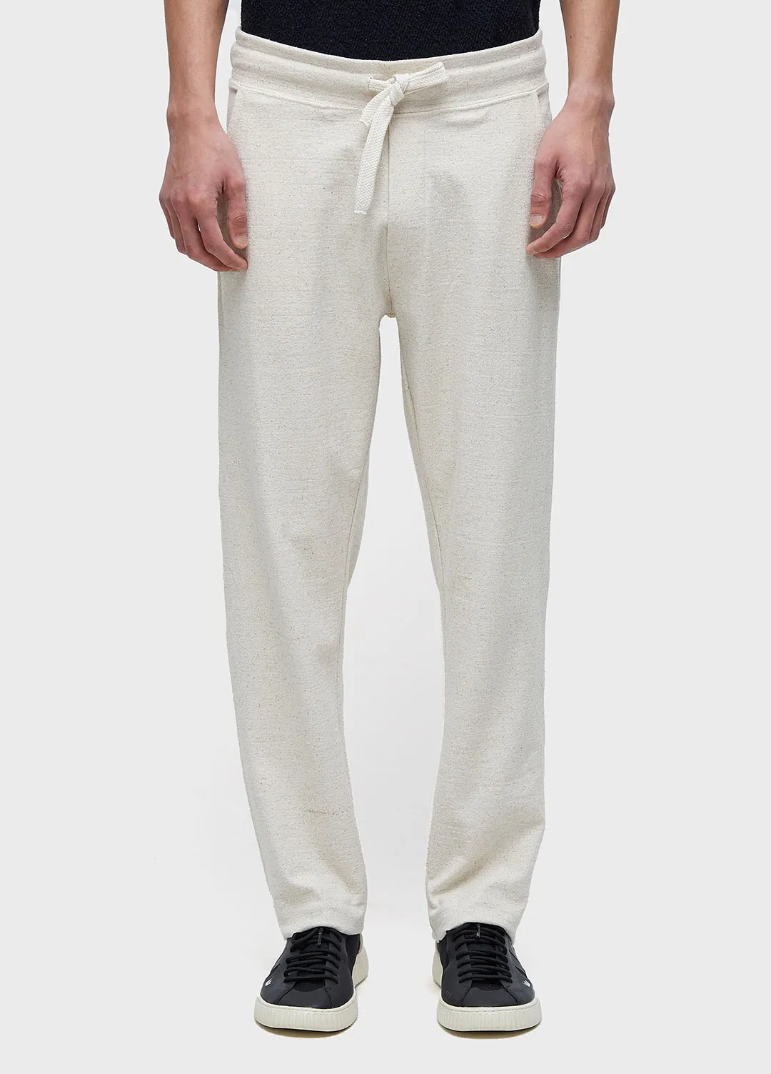 Calça e-basics em malhão rústico e-fabrics com algodão reciclado, proveniente da sobr