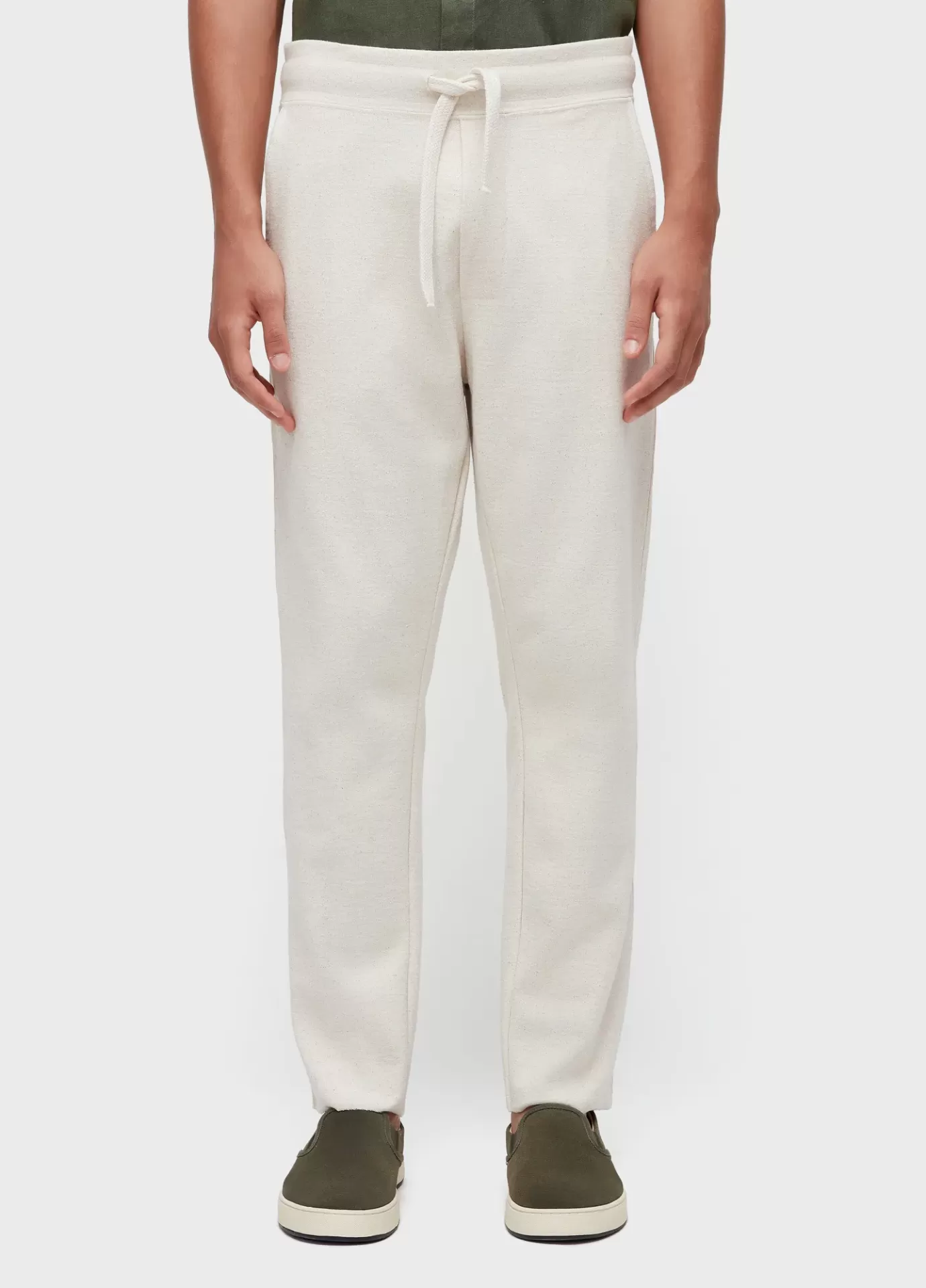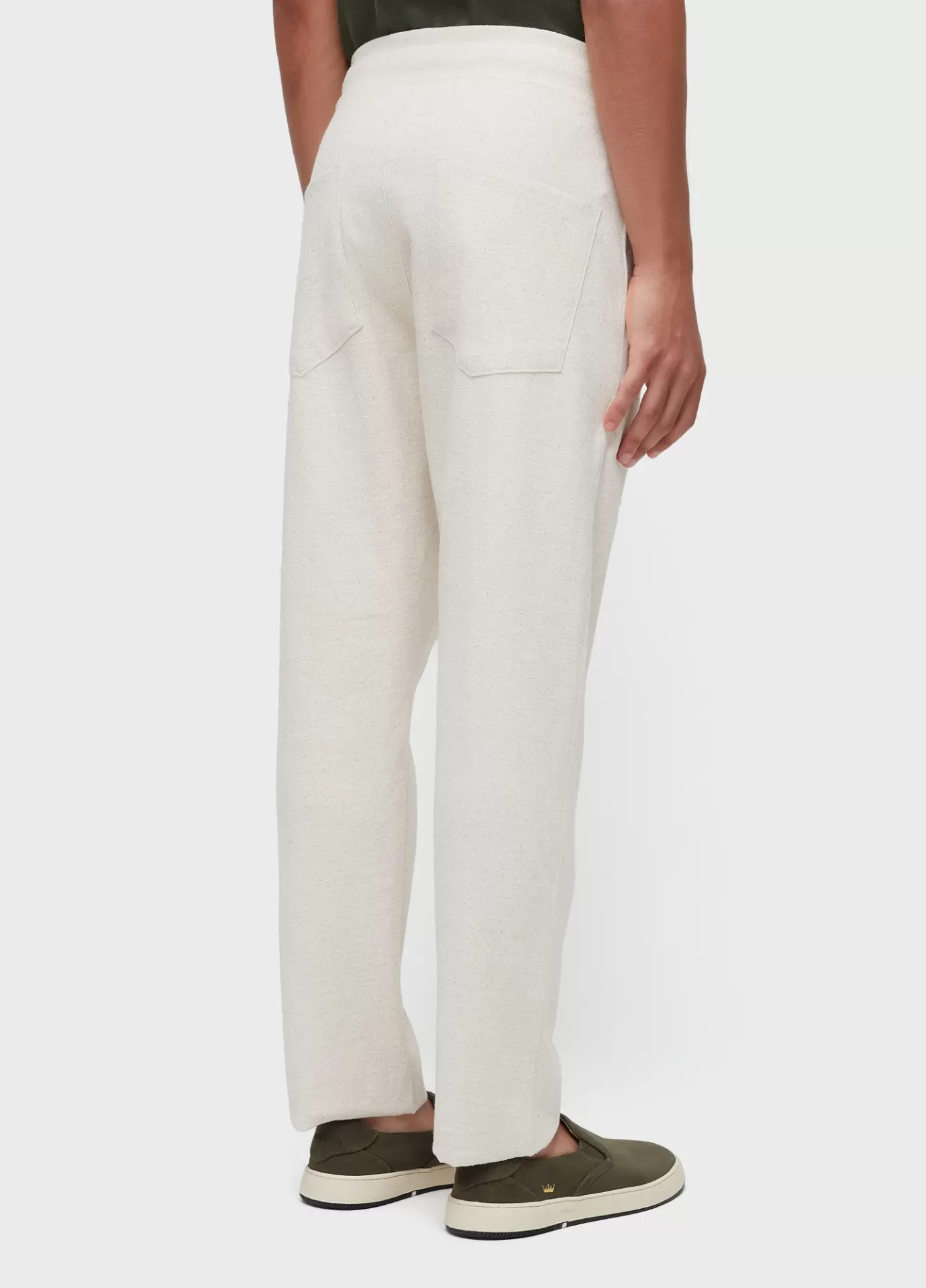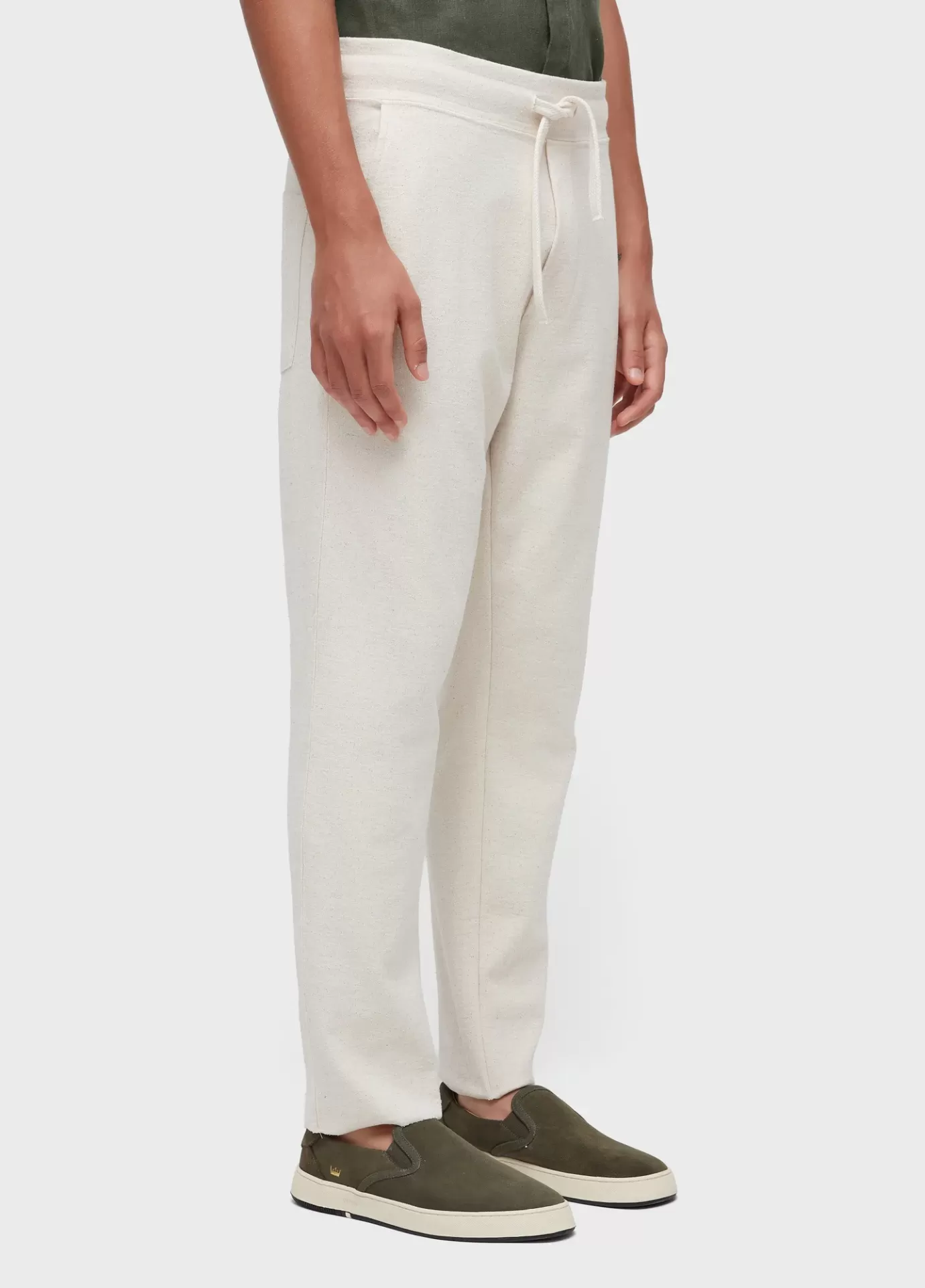 Calça e-basics em malhão rústico e-fabrics com algodão reciclado, proveniente da sobr