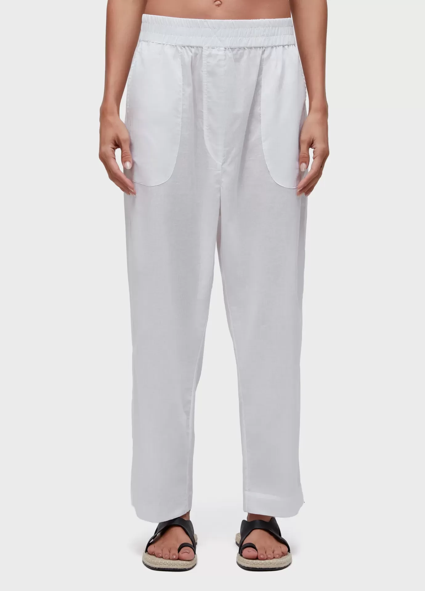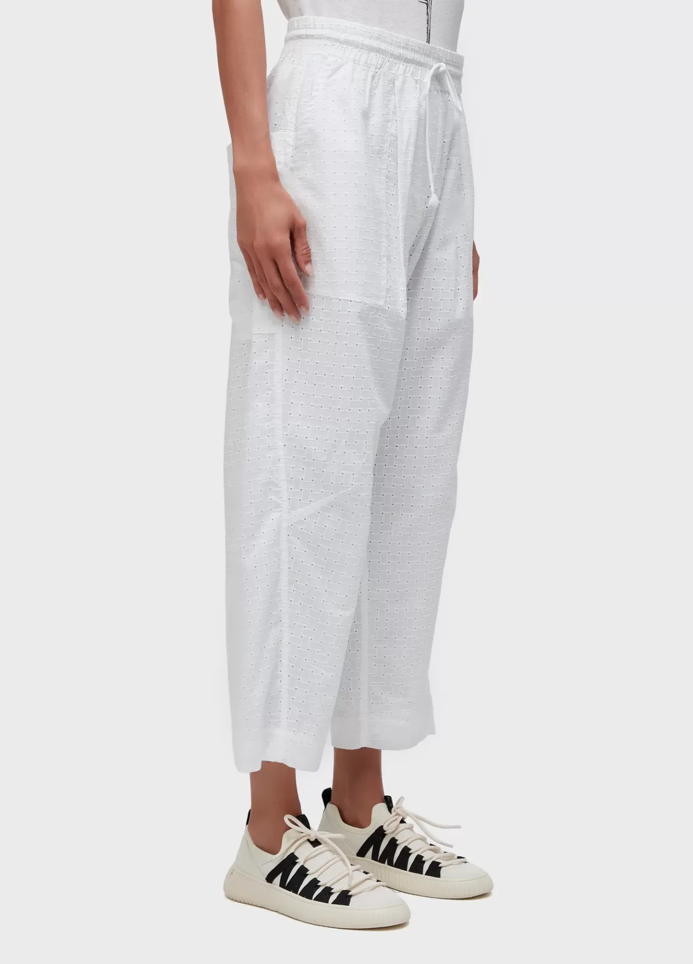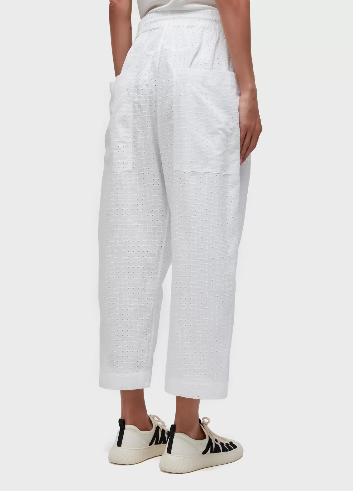 Calca. Feminino. Laise bordado ingles 100% algodao. Reta, cos de elastico com rolote