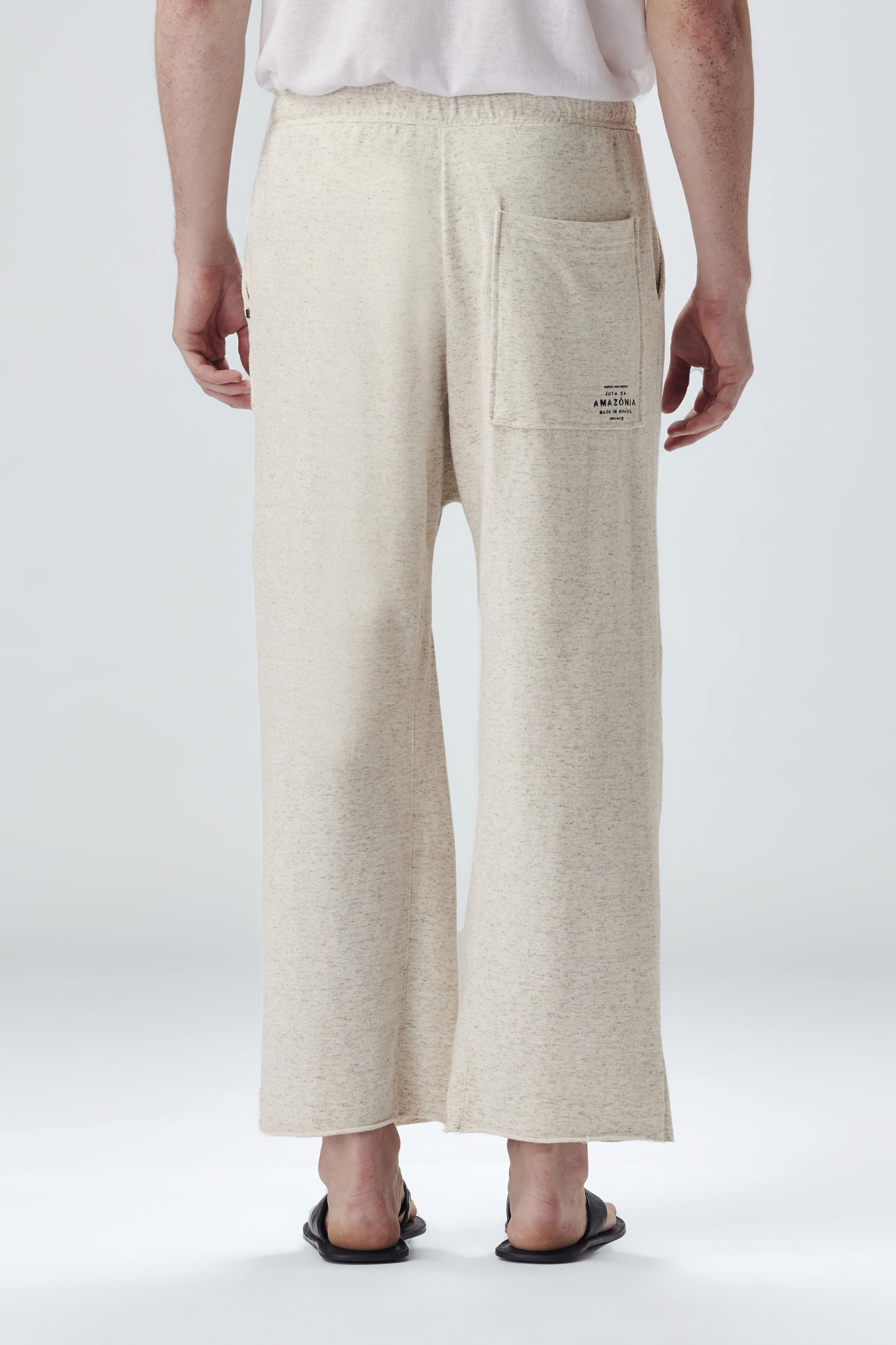 Calça masculina, e-fabric, juta da amazônia. peça produzida com juta, uma fibra vegetal e orgânica cultivada na amazônia, sua produção gera renda para milhares de agricultores e ribeirinhos, é também lavada com o mamaciante natural andiroba oil, nativa da amazônia, sua produção contribui para a valorização da biodiversidade brasileira, proteção da floresta e fomenta o trabalho de pessoas da região da ilha do marajó. bandeira respect our people.