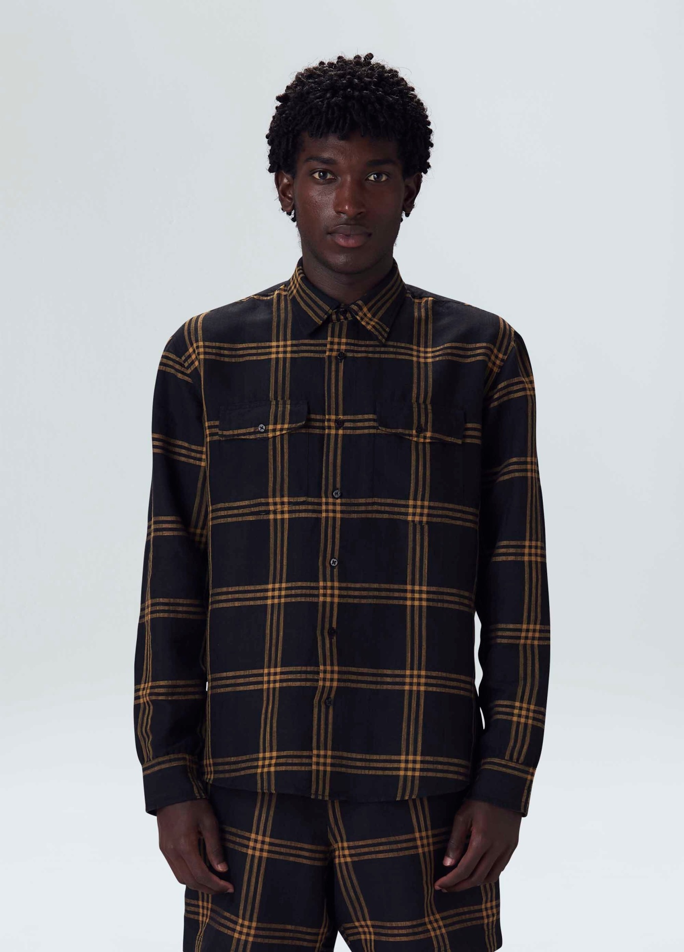 descriçãoCamisa manga longa com modelagem over, em fio tinto xadrez exclusivo Osklen.