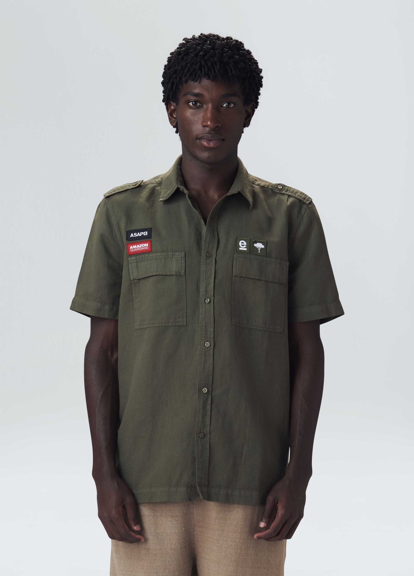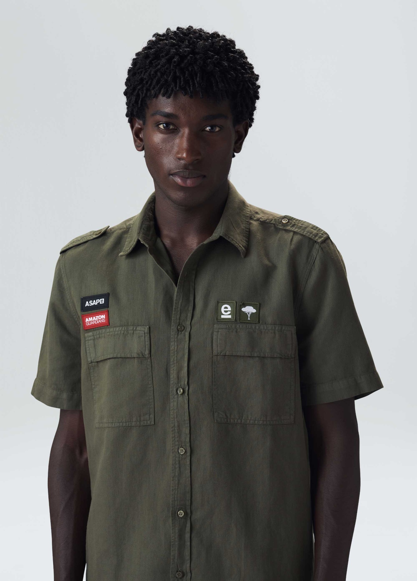 Camisa manga curta, modelagem casual em tecido de algodão certificado com canhâmo. O cultivo da fibra de cânhamo dispensa o uso de agrotóxicos devido à resistência da planta às pragas naturais e assim evita a contaminação das reservas de água do nosso planeta. Além de contribuir para a redução em até 90% das emissões de CO2 e 83% do consumo de água em comparação com o algodâo tradicional.