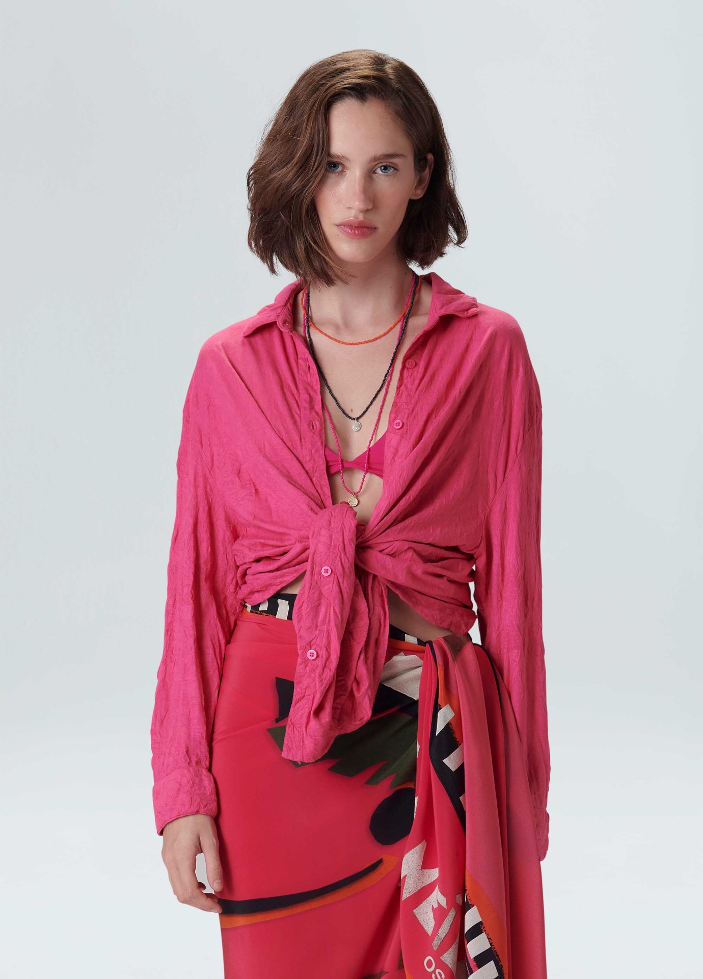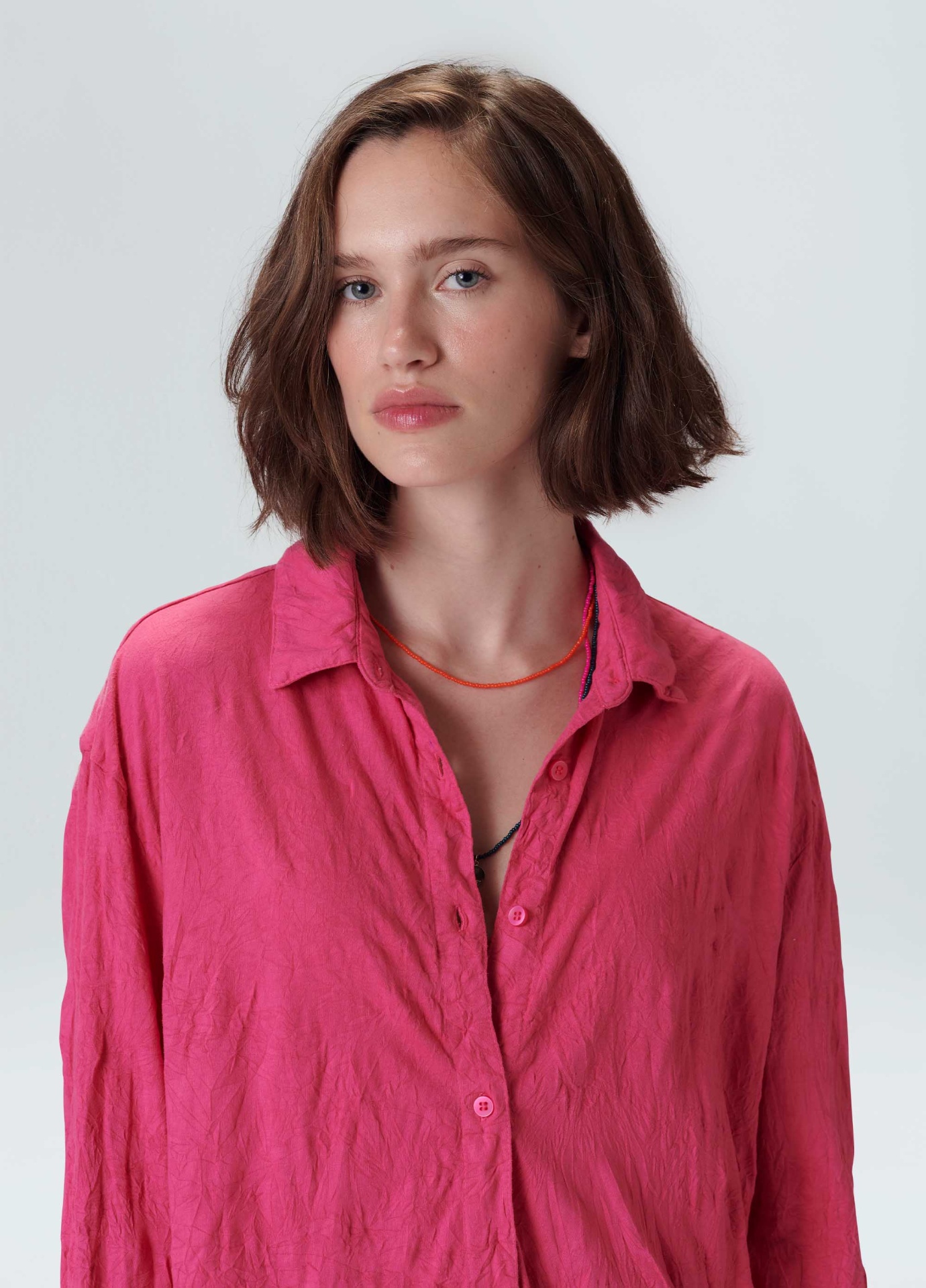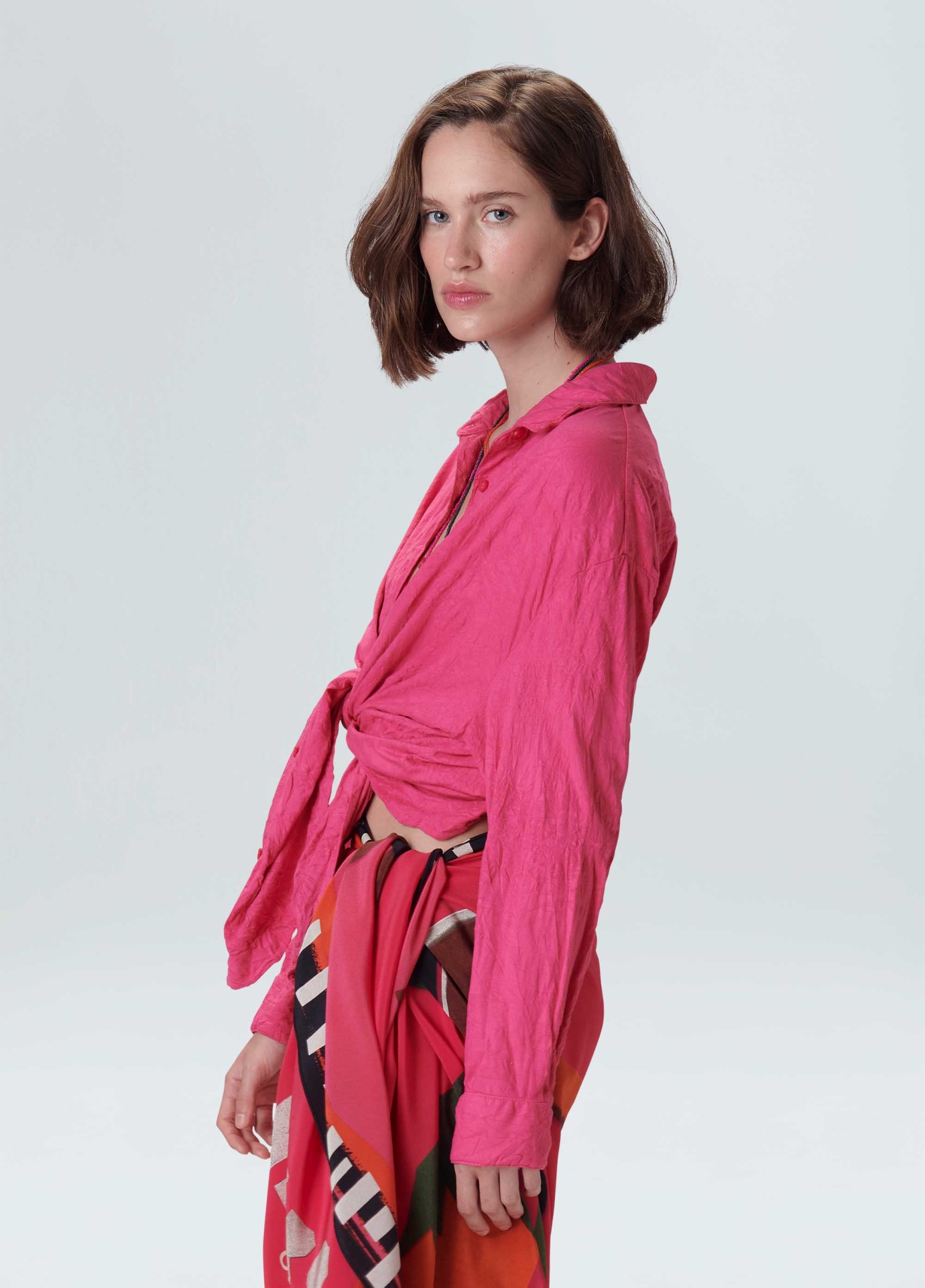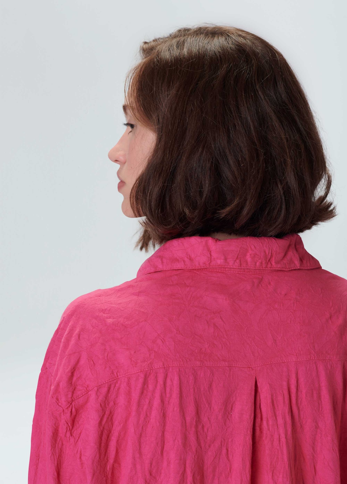 Camisa feminina feita em malha de algodão. A peça possui fechamento de botões no centro frente, gola e punho de camisaria e modelagem ampla. A camisa é resinada amassada e vem em um saquinho de malha para guardar a peça enrolada em formato de nó, mantendo sua característica amassada. Não passar a peça. Essa é uma peça Regenerate Life, pois foi produzida com algodão nacional certificado seguindo critérios minuciosos de redução dos impactos ambientais e sociais durante seu cultivo. Seu processo produtivo utiliza energia renovável, reduz o consumo de água e fomenta as cadeias produtivas brasileiras.