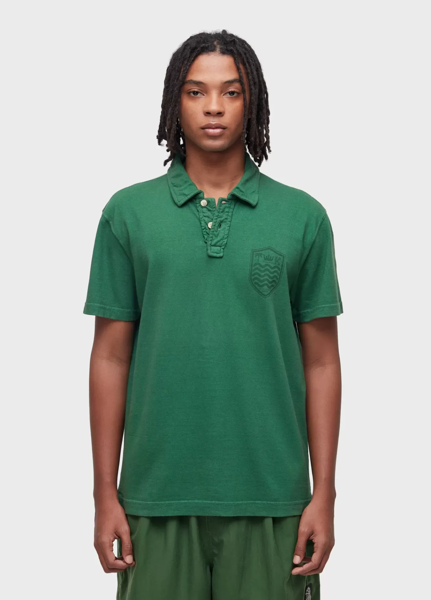 Polo masculina com assinatura brasão osklen no peito. feita em matéria-prima 100% alg