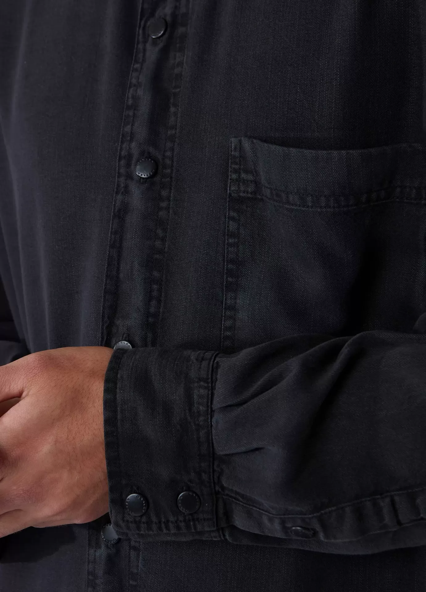 descriçãoCamisa manga longa, com modelagem over, peça feita em liocel e a partir