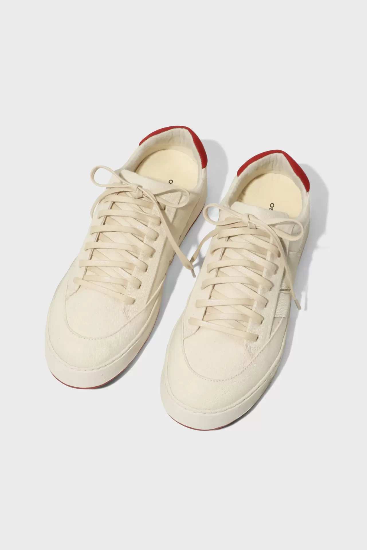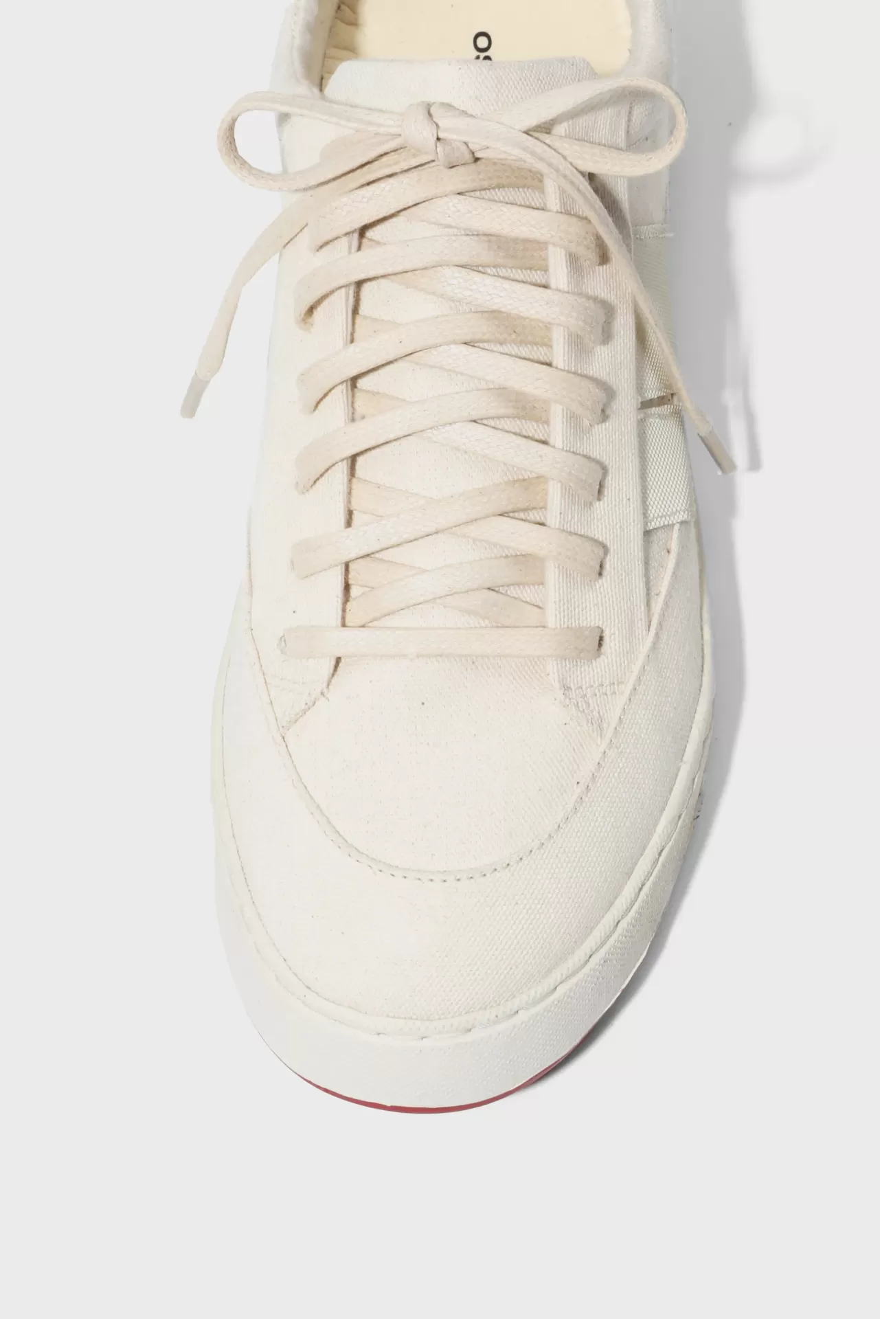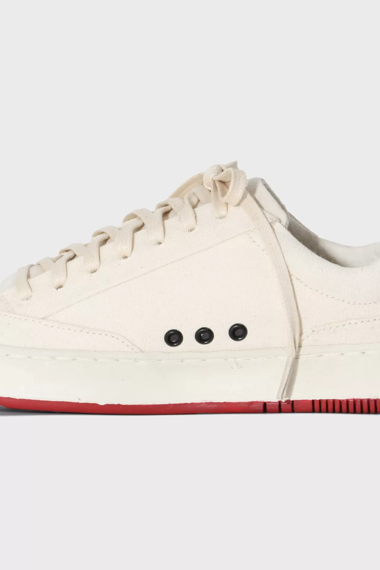 Tênis em lona de algodão reciclado. assinatura lateral em borracha texturizada feita
