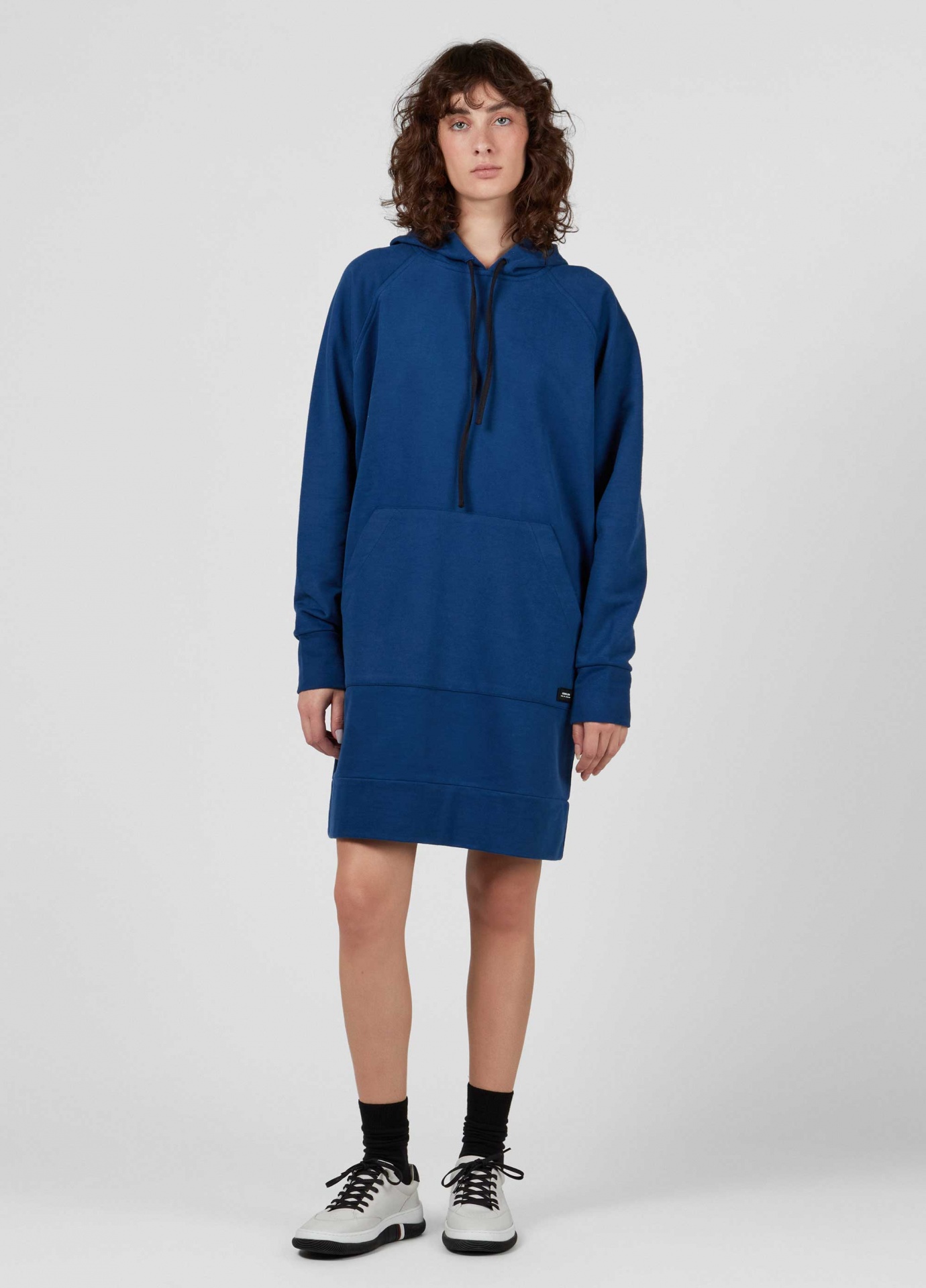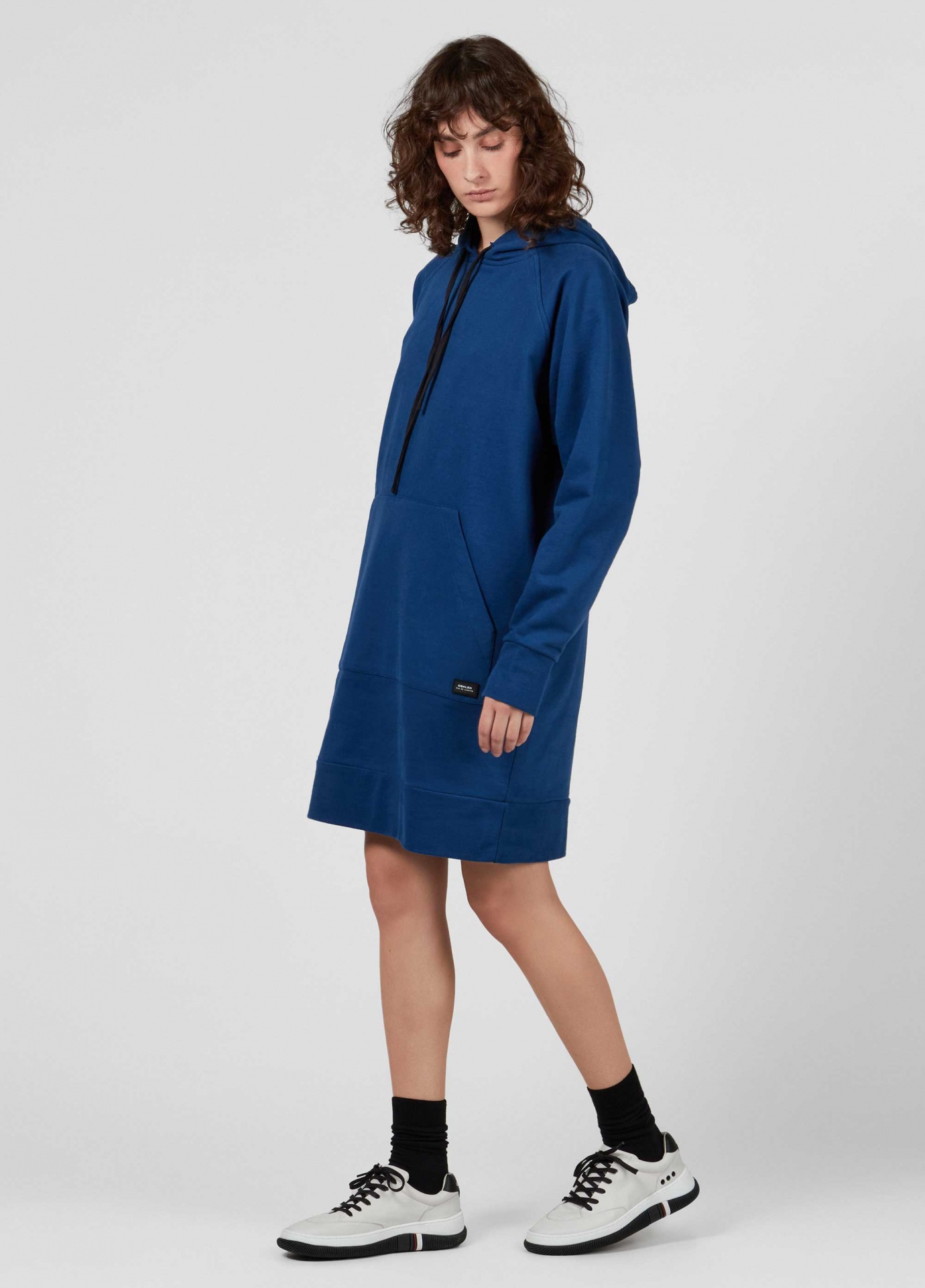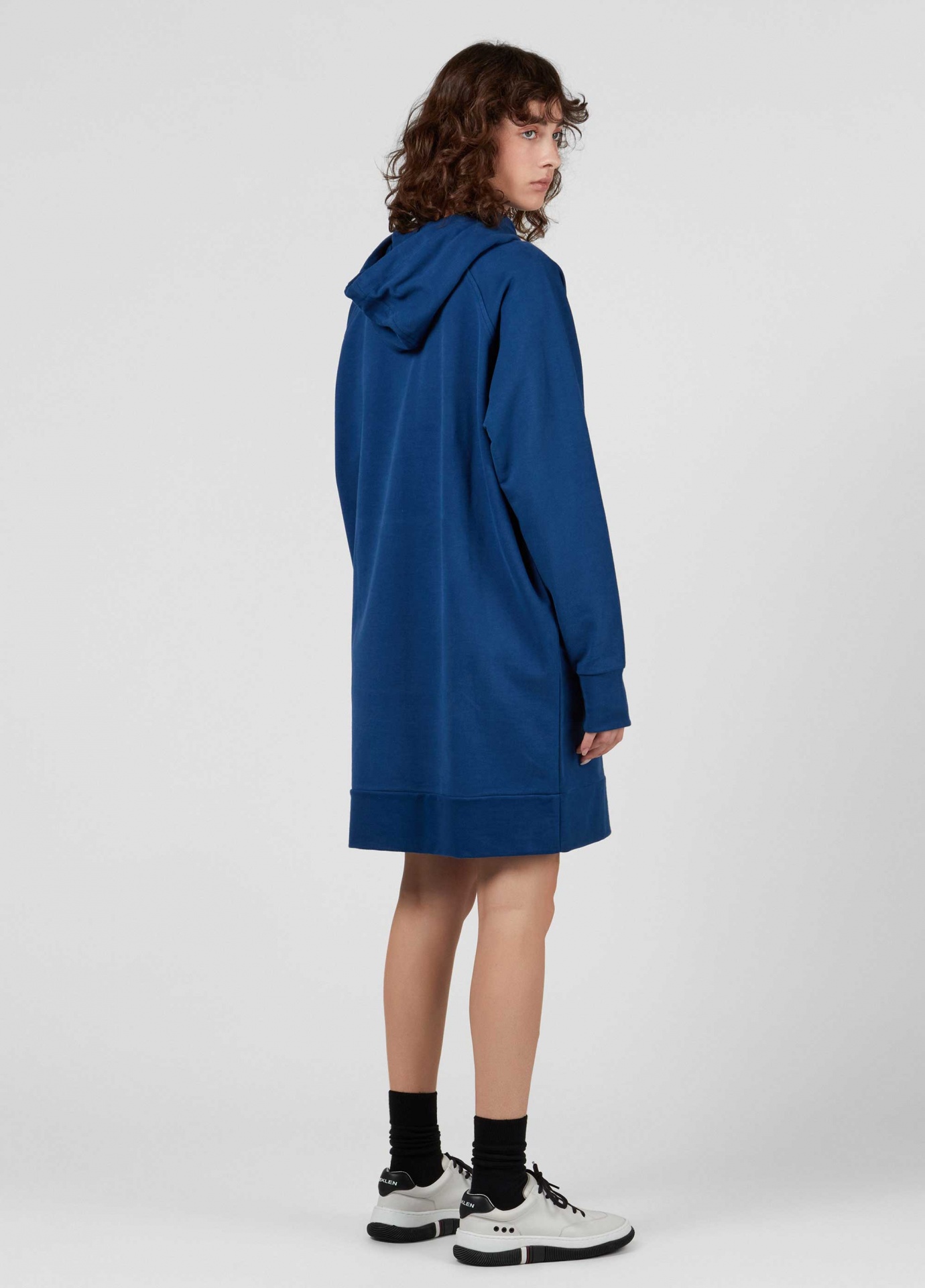Vestido curto feito em moletom de algodão. A peça tem mangas longas com recortes raglan, capuz com cadarço e bolso canguru. Seu caimento é ligeiramente over. A peça tem uma etiqueta de assinatura externa. Composição: 100% algodão.