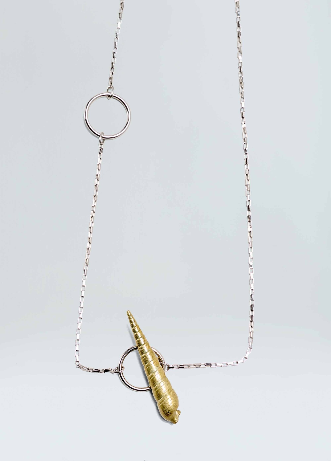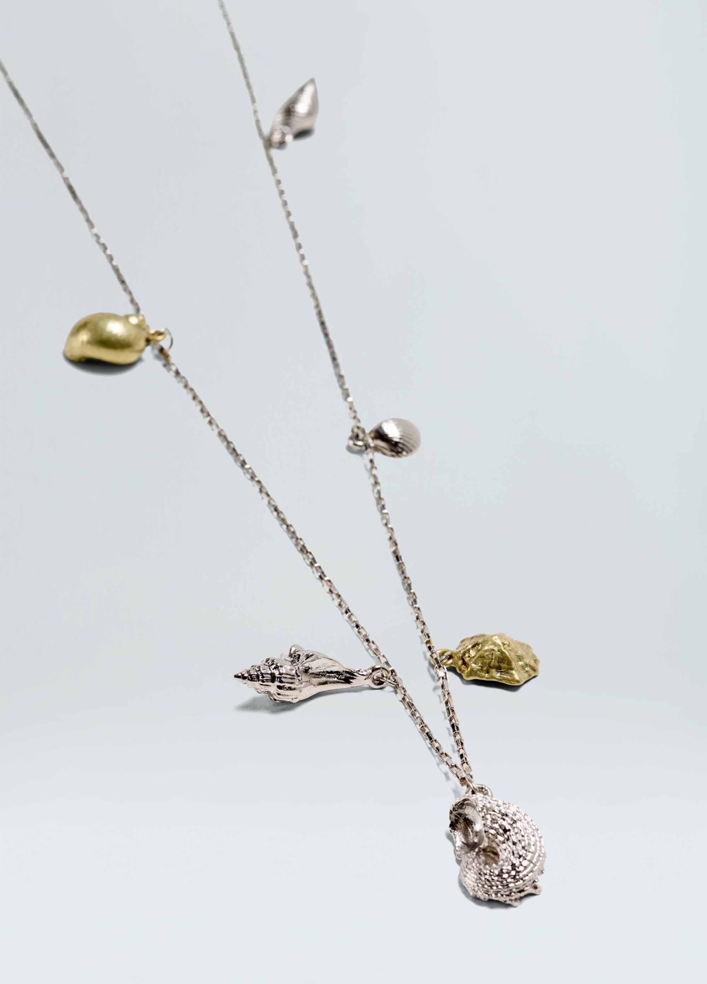 Colar 100% metal com pingentes de conchas em banho ouro velho e prata. Moldes das conchas feitos a partir de conchar reais de diferentes formatos e tamanhos.
