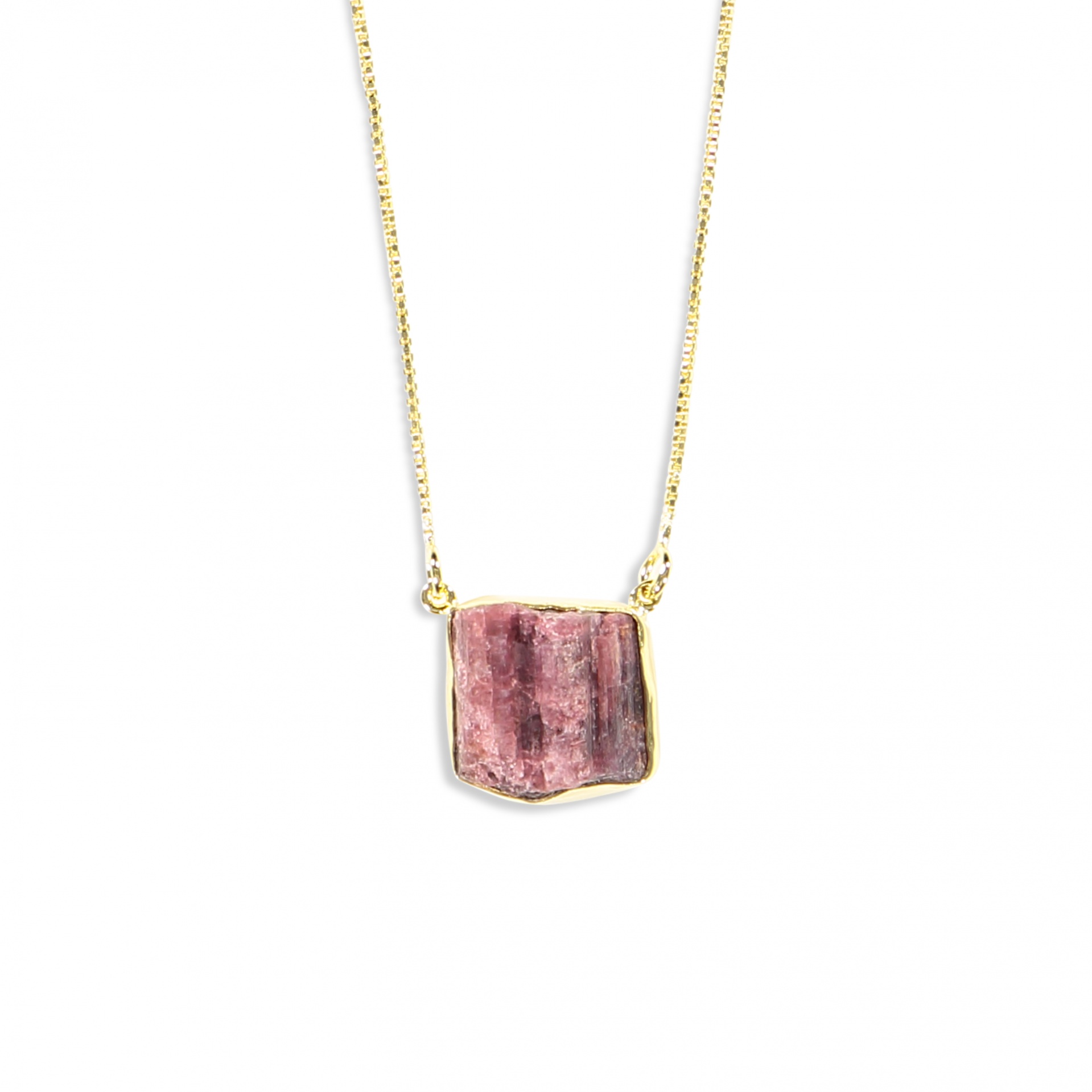 Colar com pendente em pedra rosa-avermelhada e corrente dourada