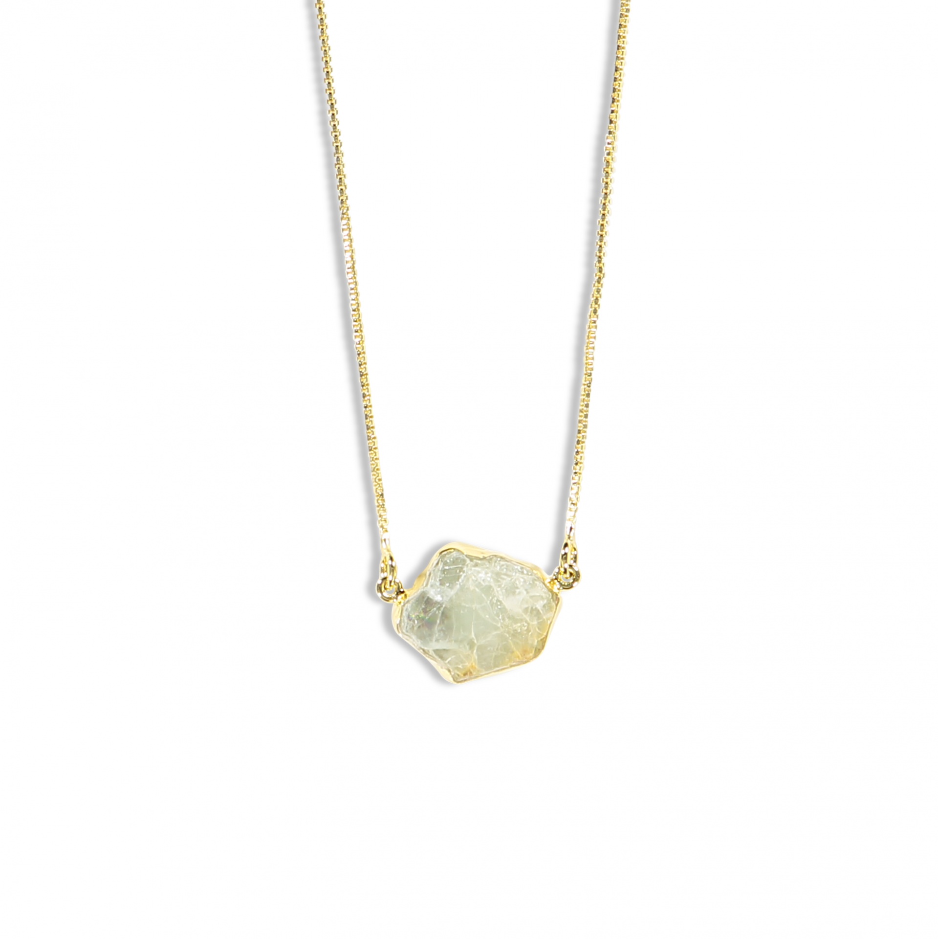 Colar com pedra bruta translúcida em corrente dourada
