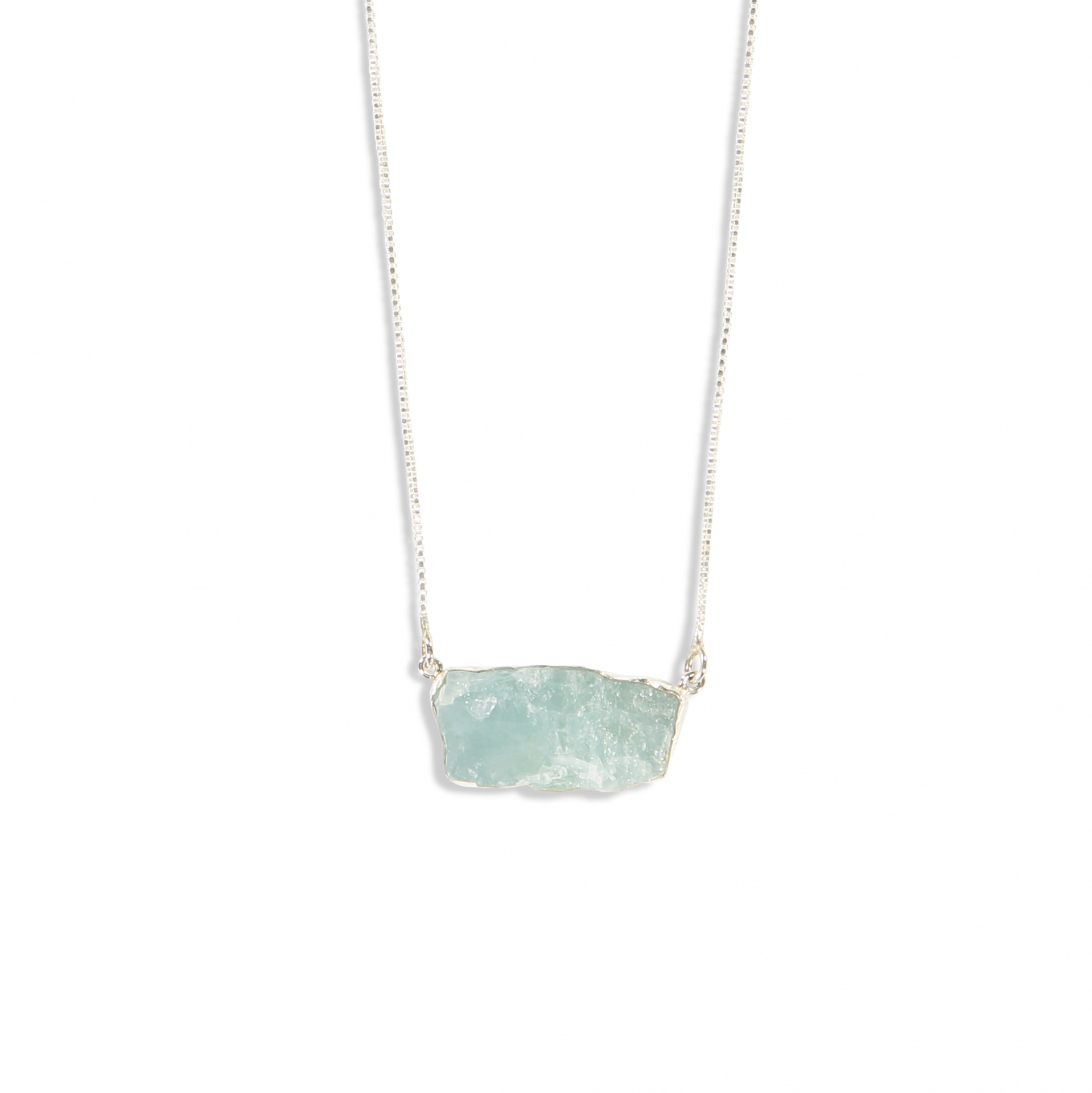 Colar com pedra bruta verde-água e corrente prateada