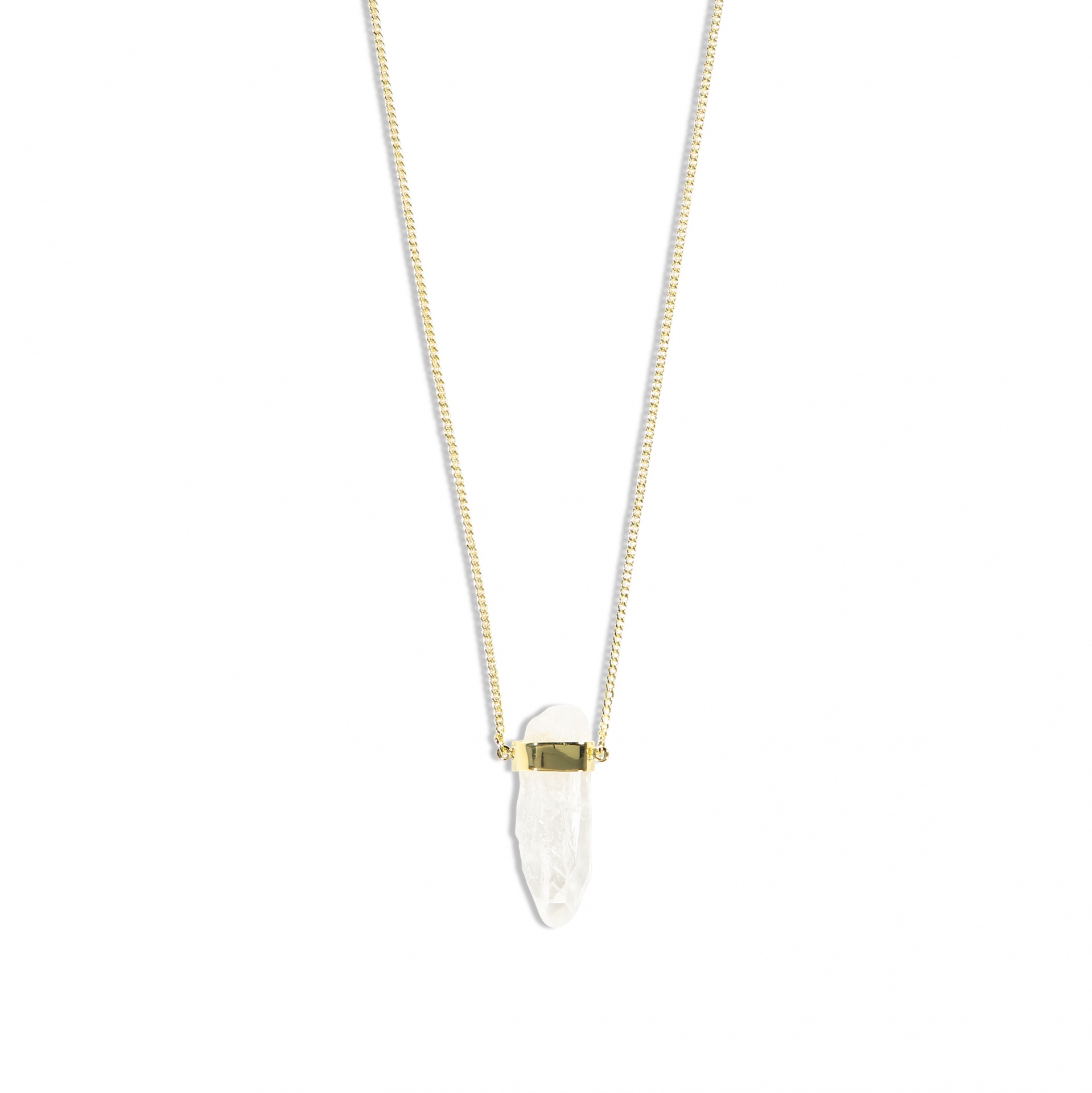 Colar dourado com pendente de cristal translúcido